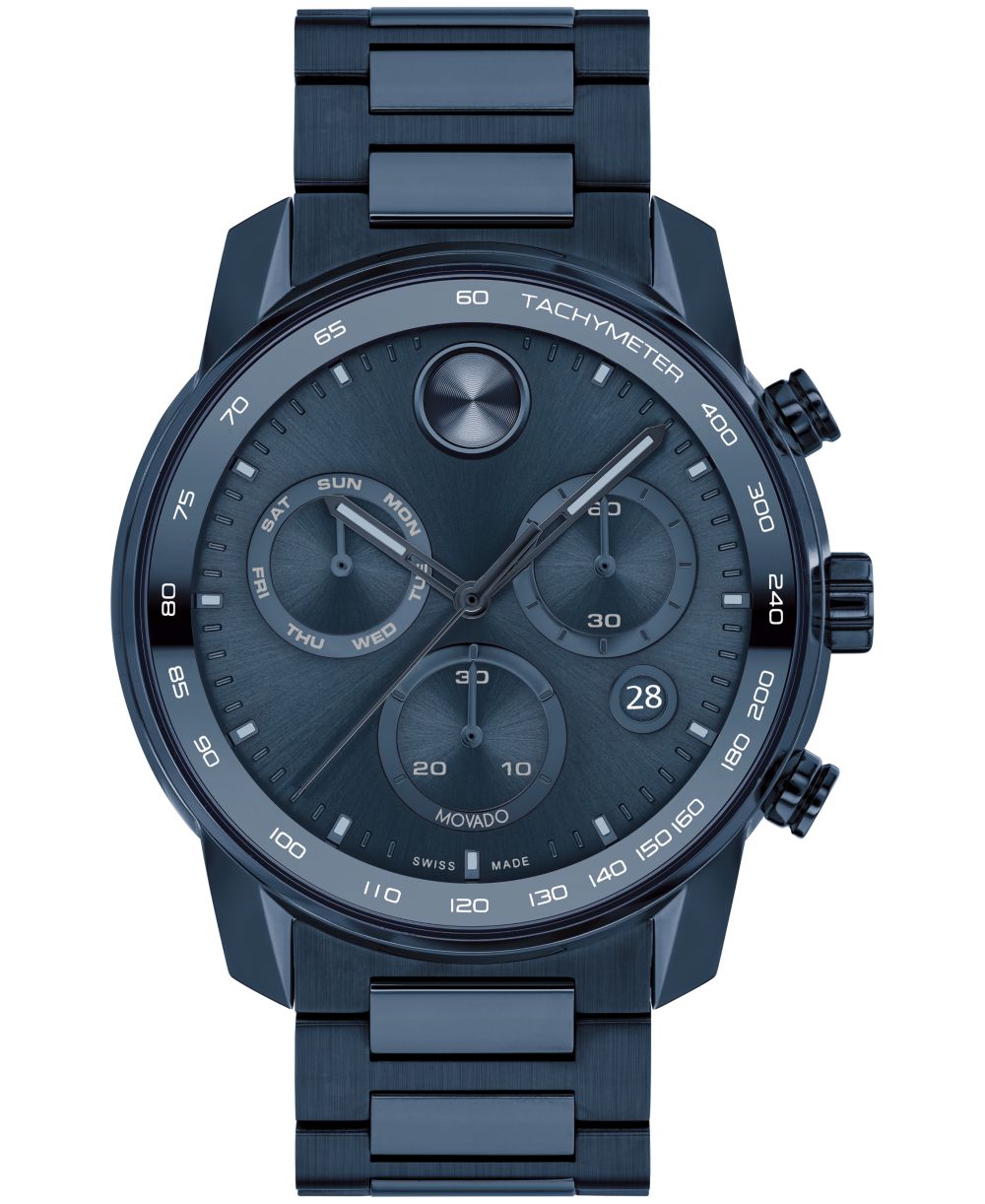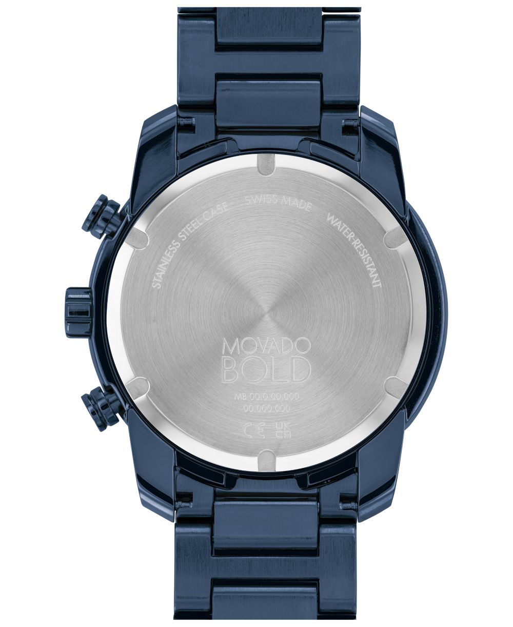 Movado Mens Bold Verso Dark Blue Ionic Plated Steel Bracelet Watch 44mm