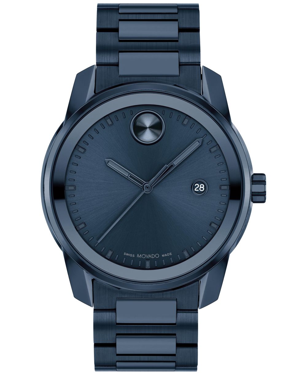 Movado Mens Swiss Bold Verso Blue Ion Plated Steel Bracelet Watch 42mm