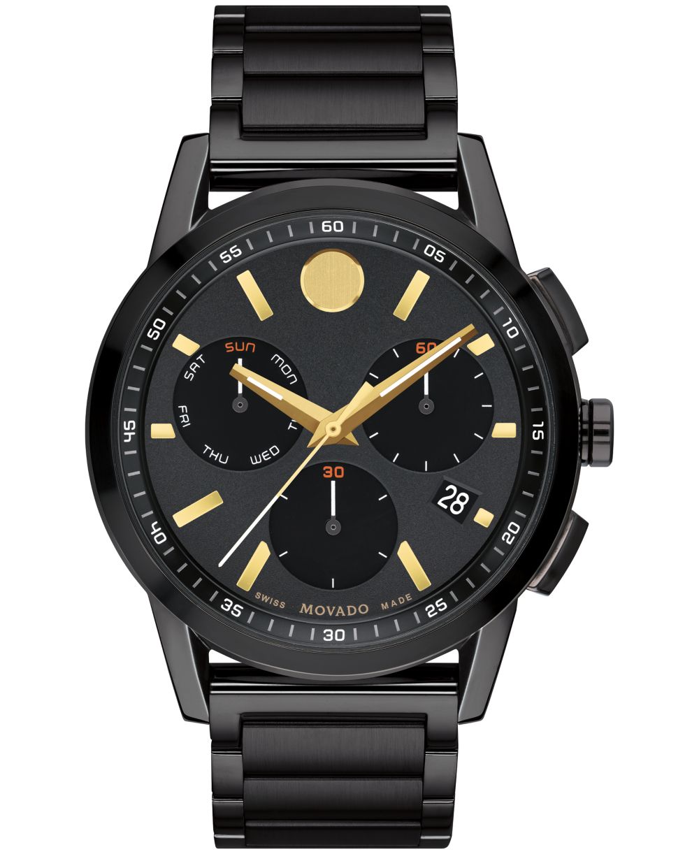 Movado Mens Museum Sport Swiss Quartz Chronograph Black PVD Watch 43mm