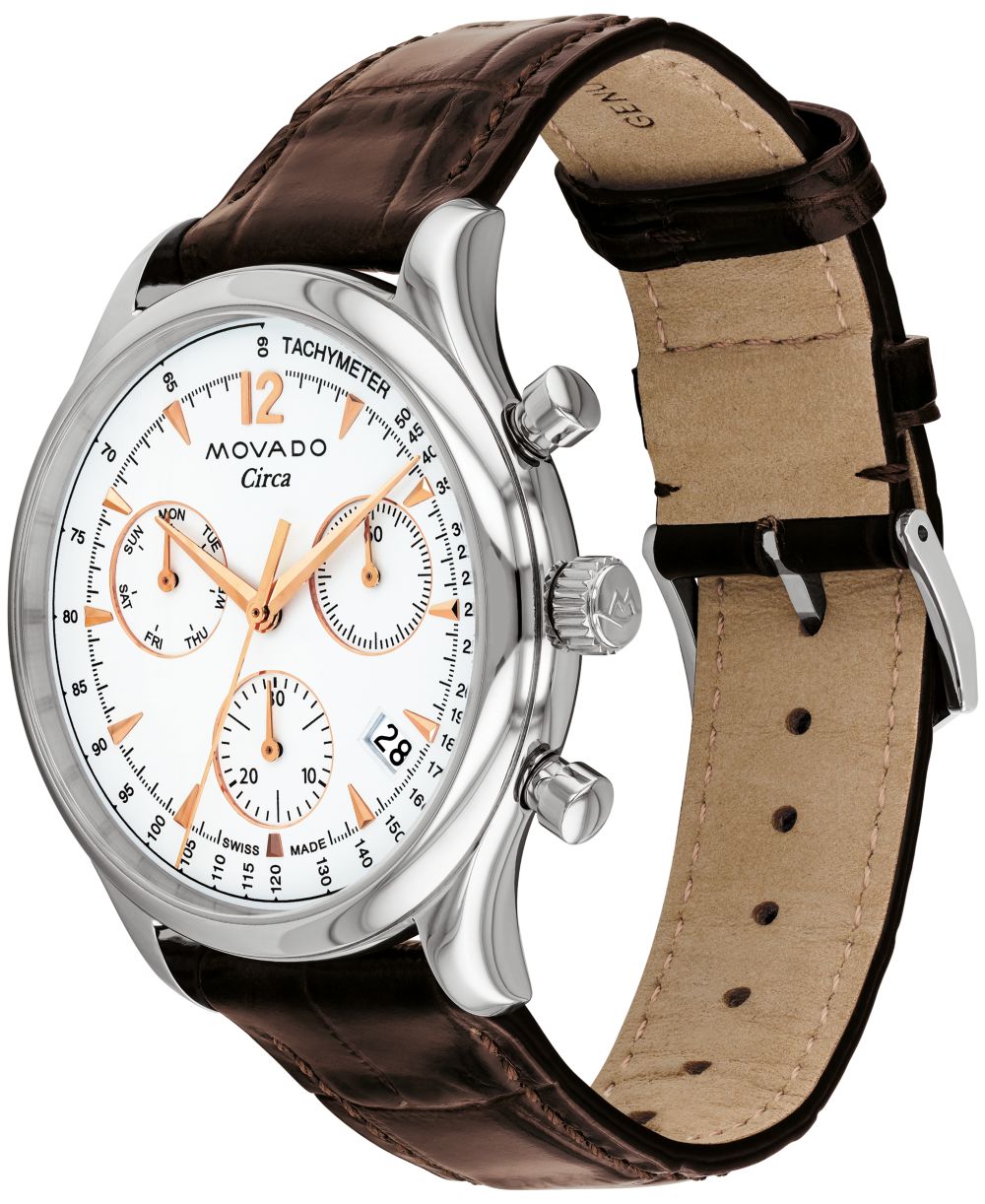 Movado Mens Heritage Brown Genuine Leather Strap Watch 43mm