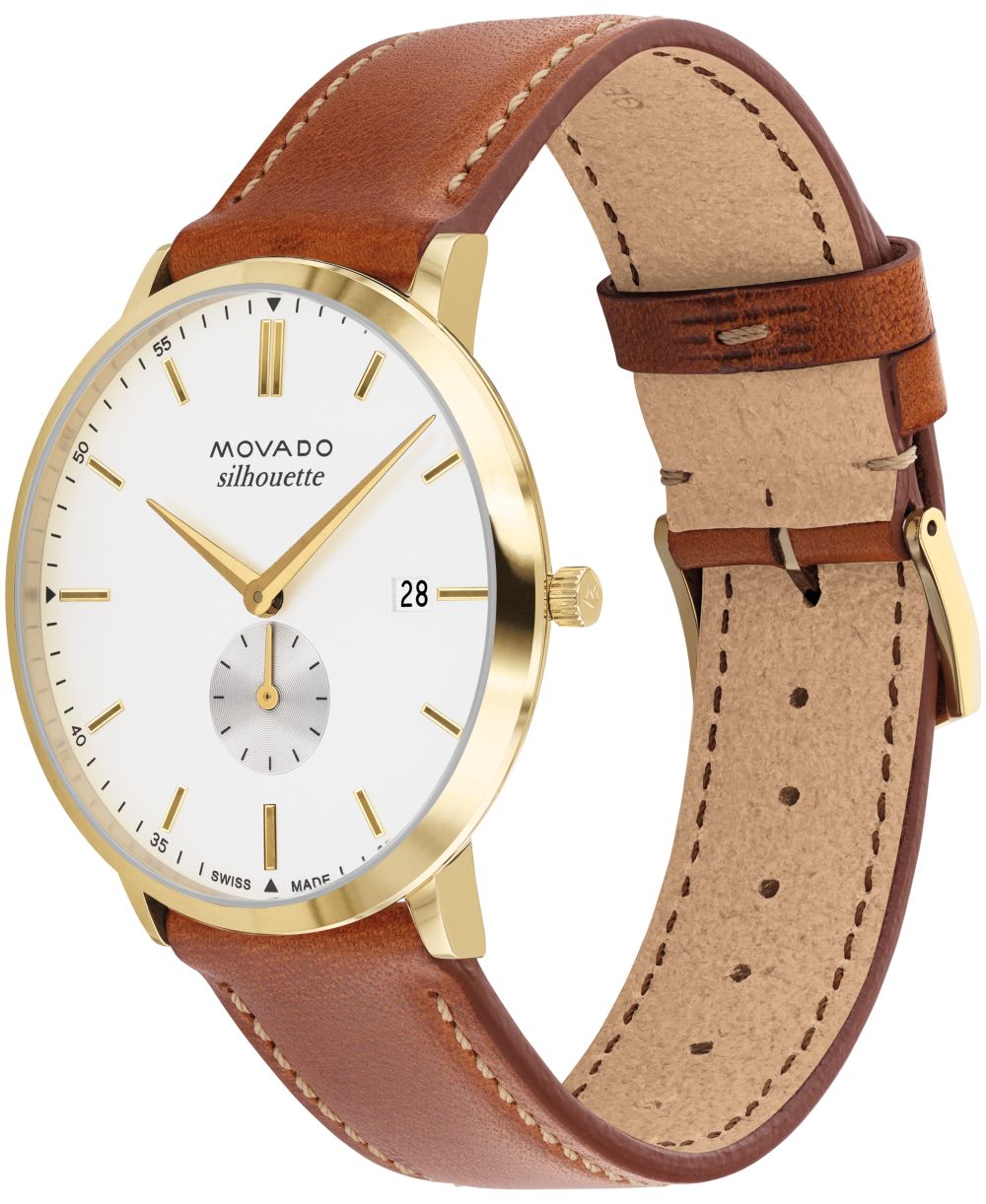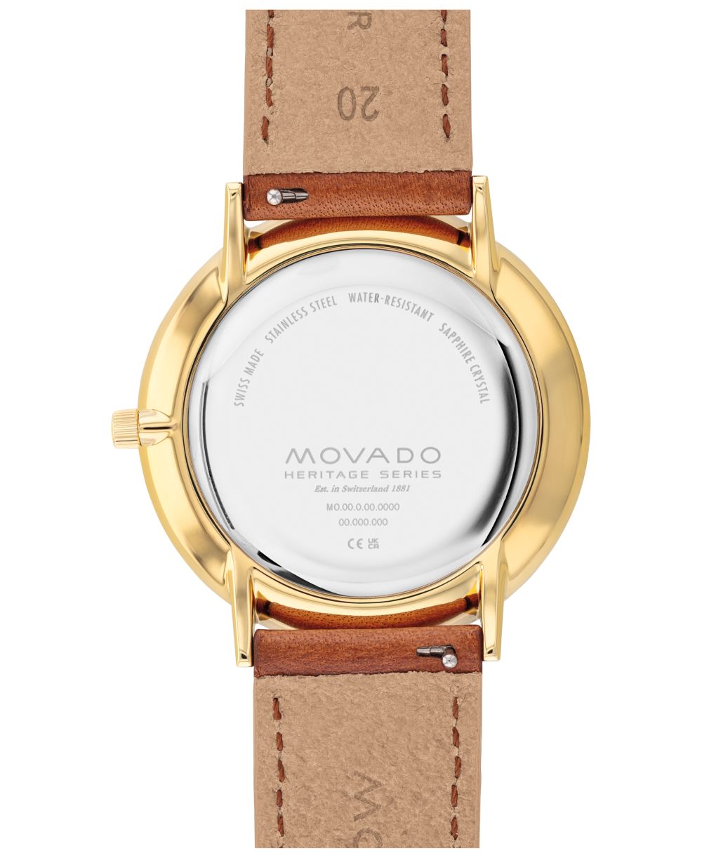 Movado Mens Heritage Silhouette Swiss Quartz Cognac Genuine Leather Strap Watch 40mm