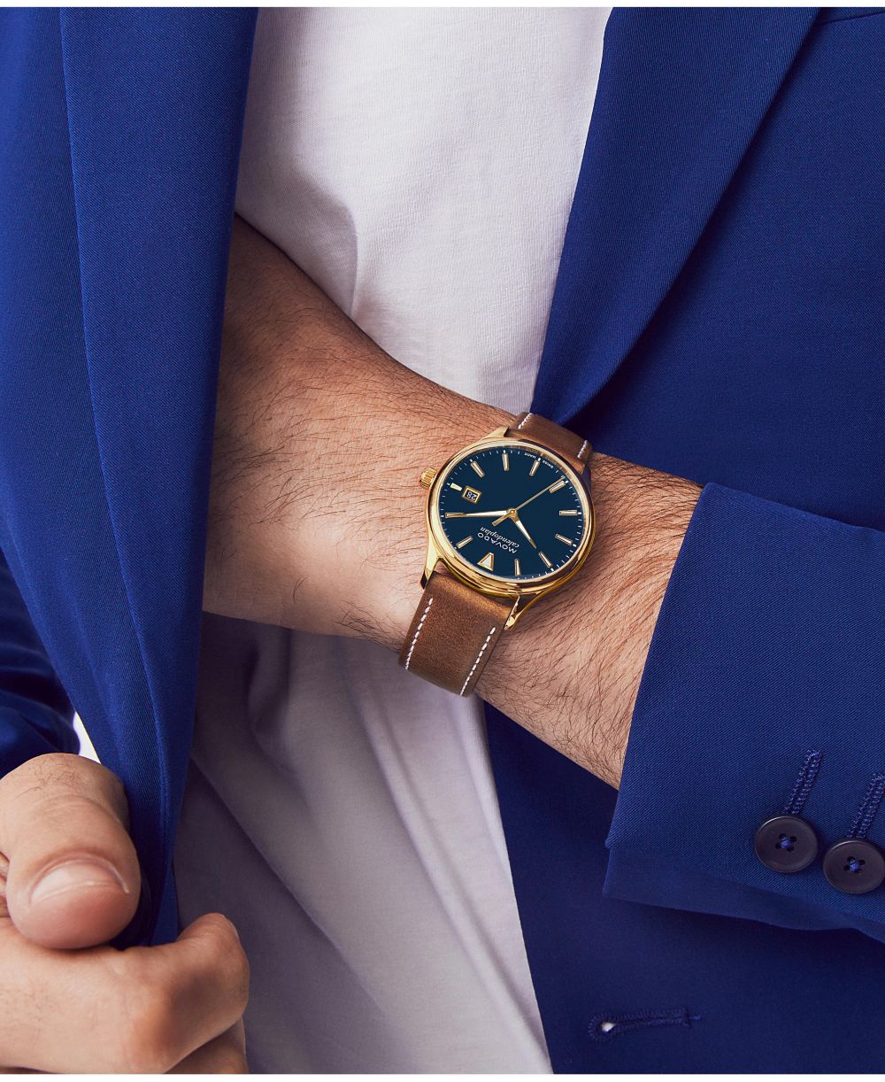 Movado Mens Swiss Heritage Brown Leather Strap Watch 40mm