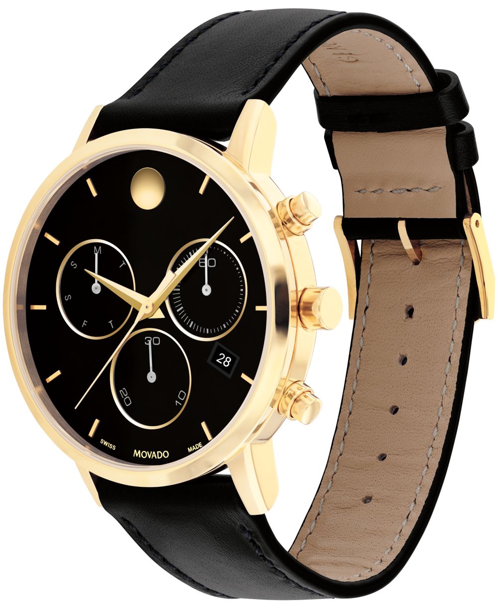 Movado Mens Museum Classic Swiss Quartz Chronograph Black Leather Watch 42mm