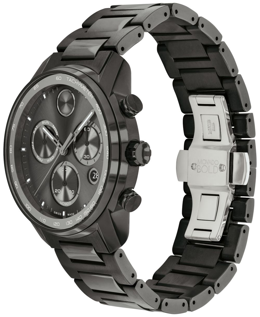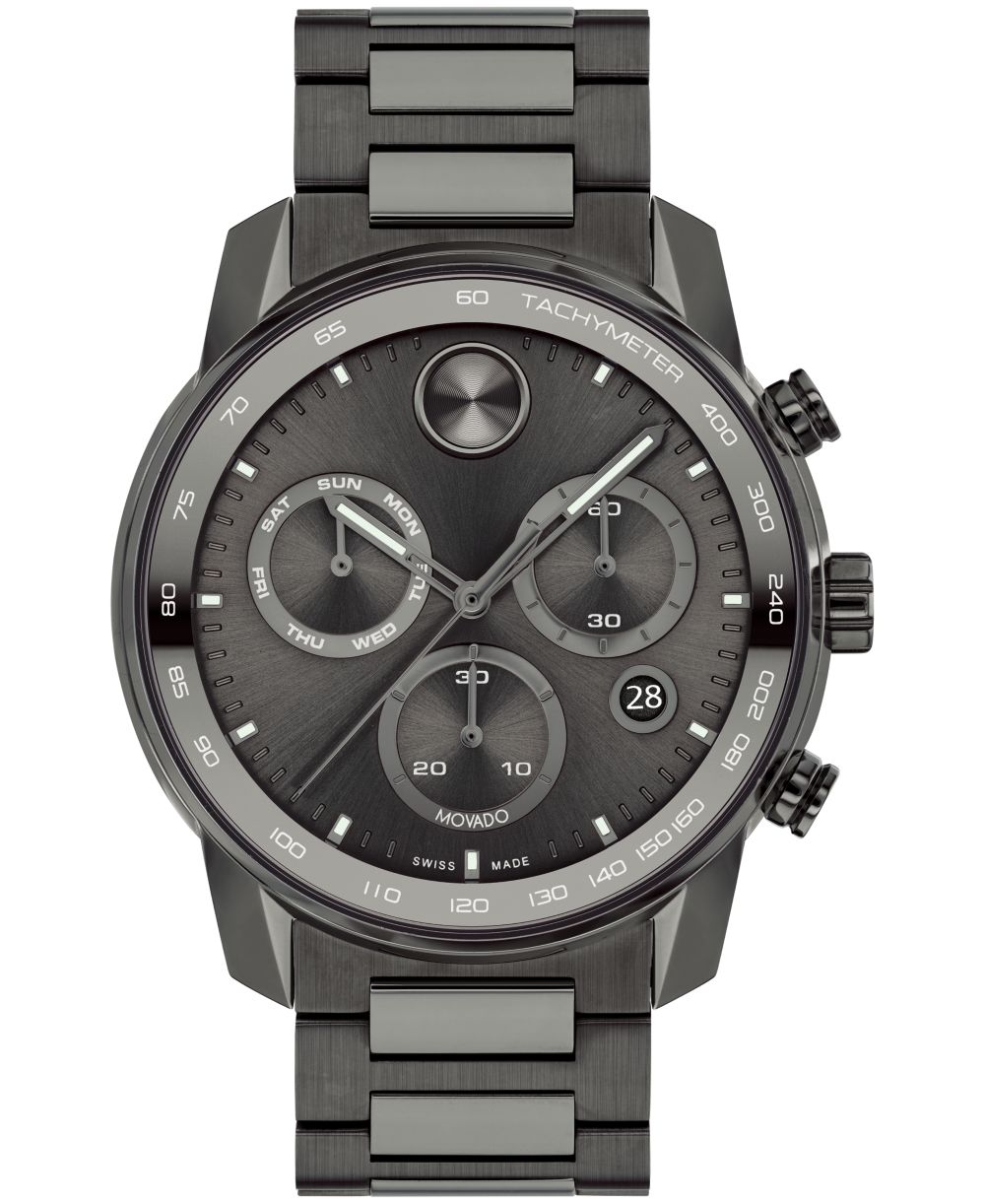 Movado Mens Bold Verso Gunmetal Ionic Plated Steel Bracelet Watch 44mm