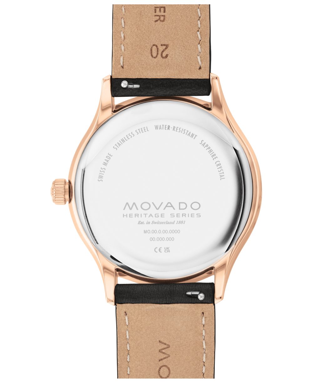 Movado Mens Heritage Calendoplan Swiss Quartz Black Genuine Leather Strap Watch 40mm