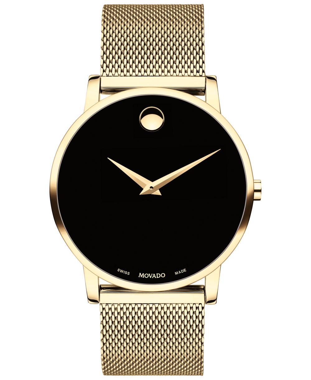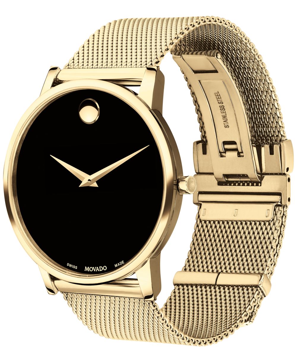 Movado Mens Swiss Museum Gold Tone PVD Stainless Steel Mesh Bracelet Watch 40mm