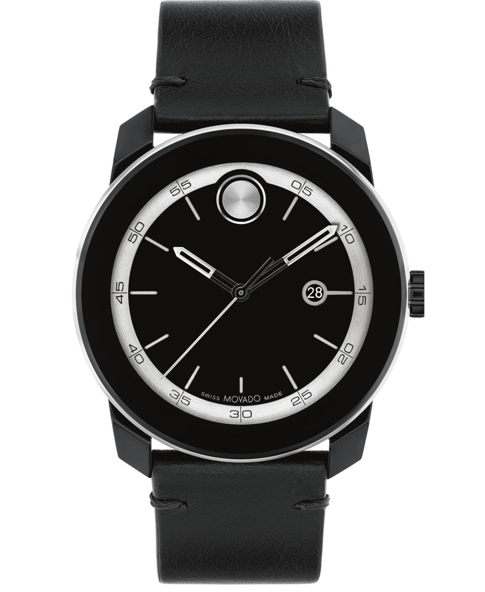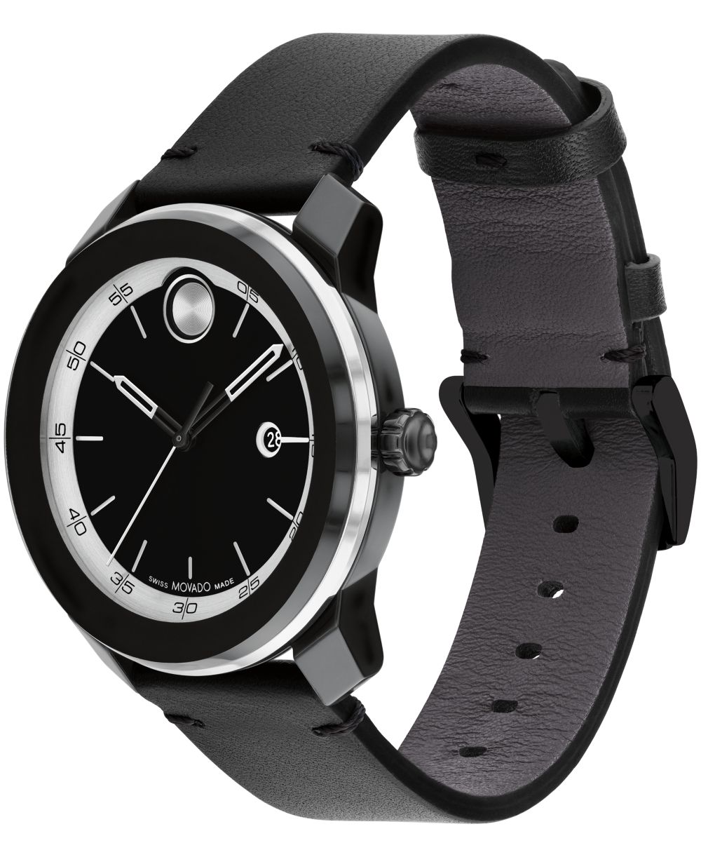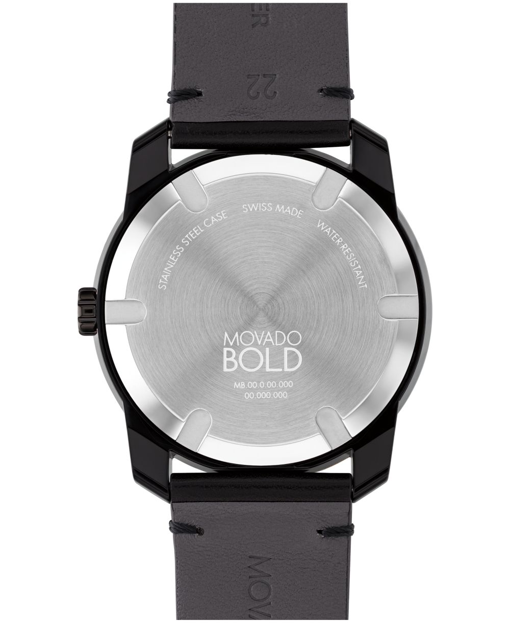 Movado Mens Bold TR90 Swiss Quartz Black Leather Watch 42mm
