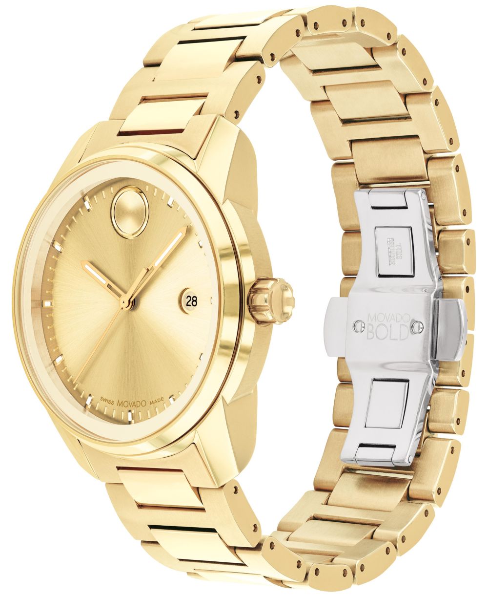 Movado Mens Swiss Bold Verso Gold Ion Plated Steel Bracelet Watch 42mm