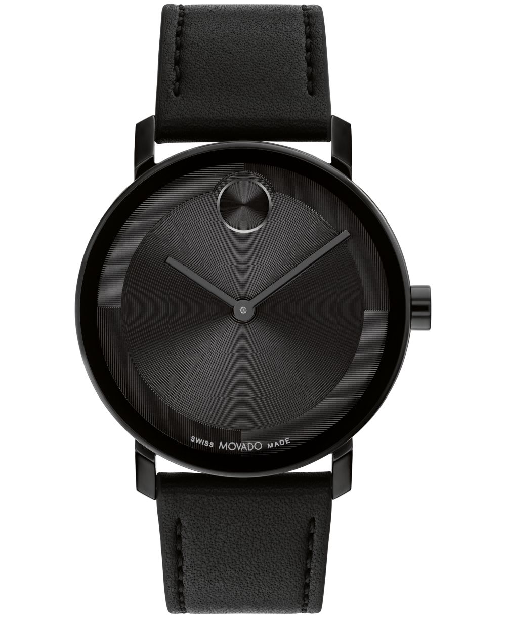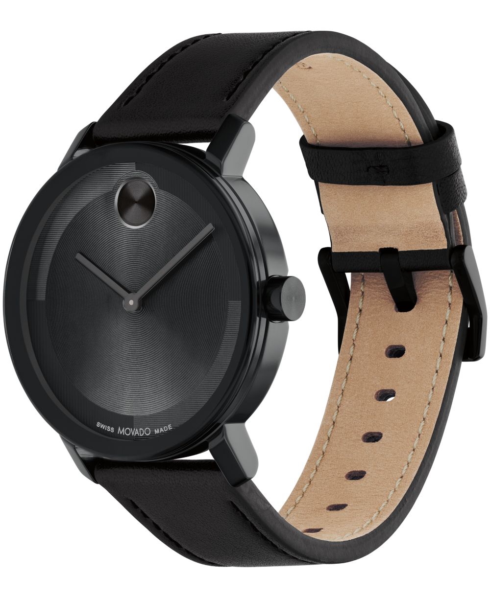 Movado Mens Bold Evolution 2.0 Swiss Quartz Black Leather Watch 40mm