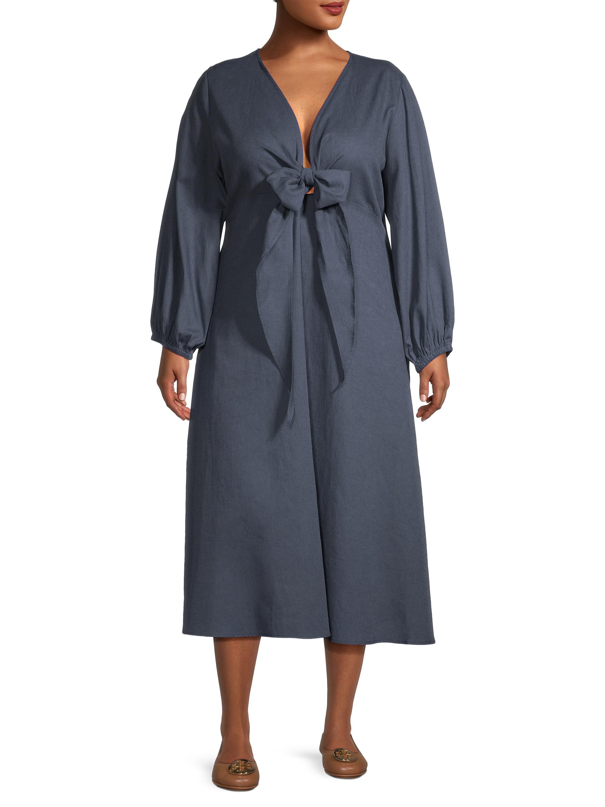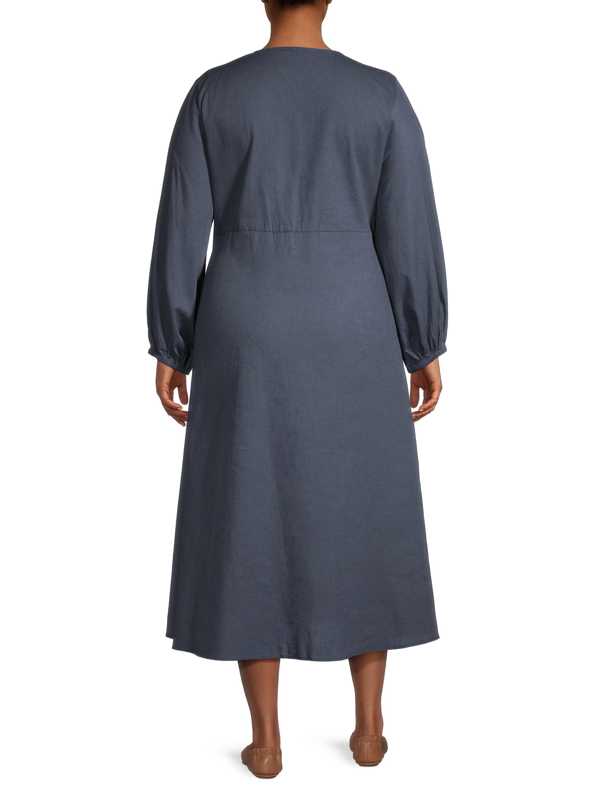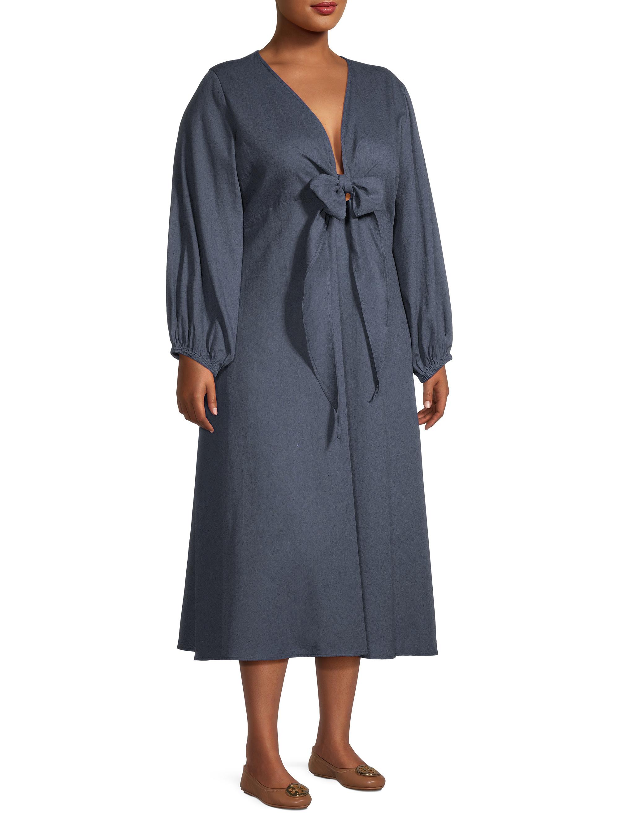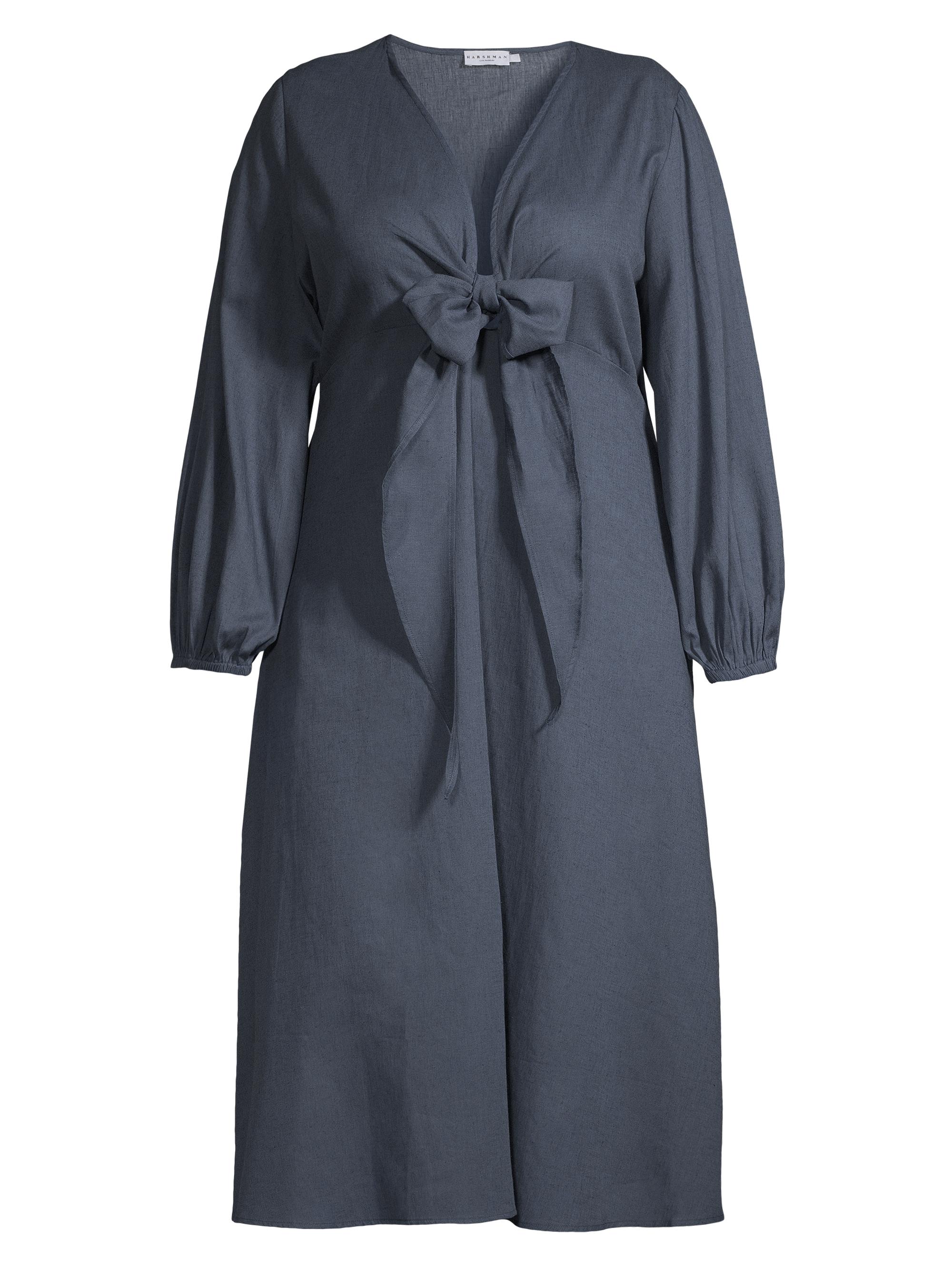 Harshman Plus Novella Cotton-Linen Tie-Waist Midi-Dress