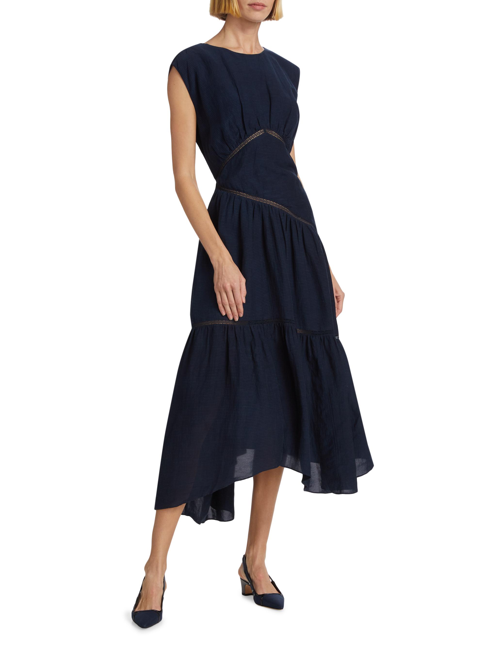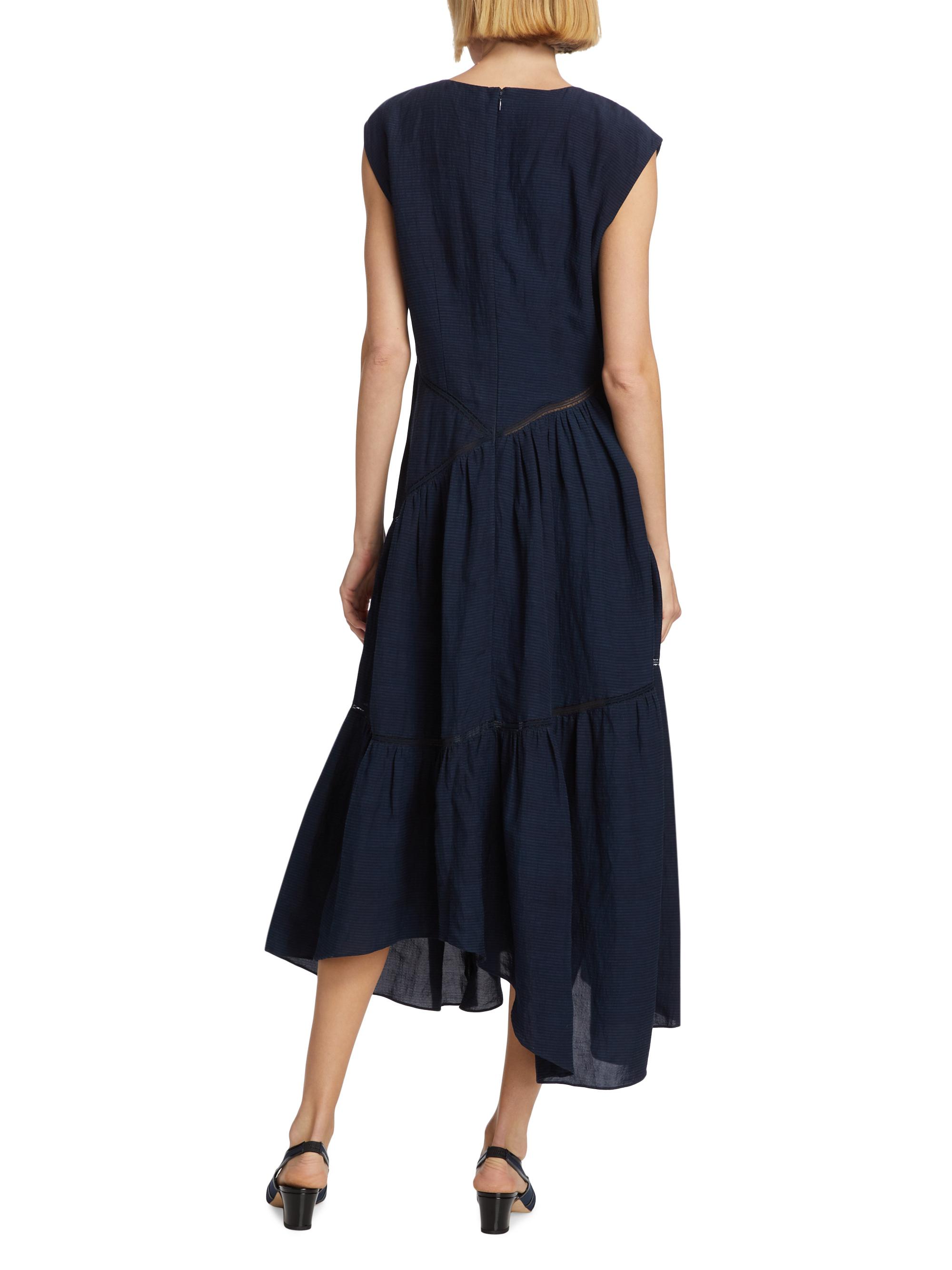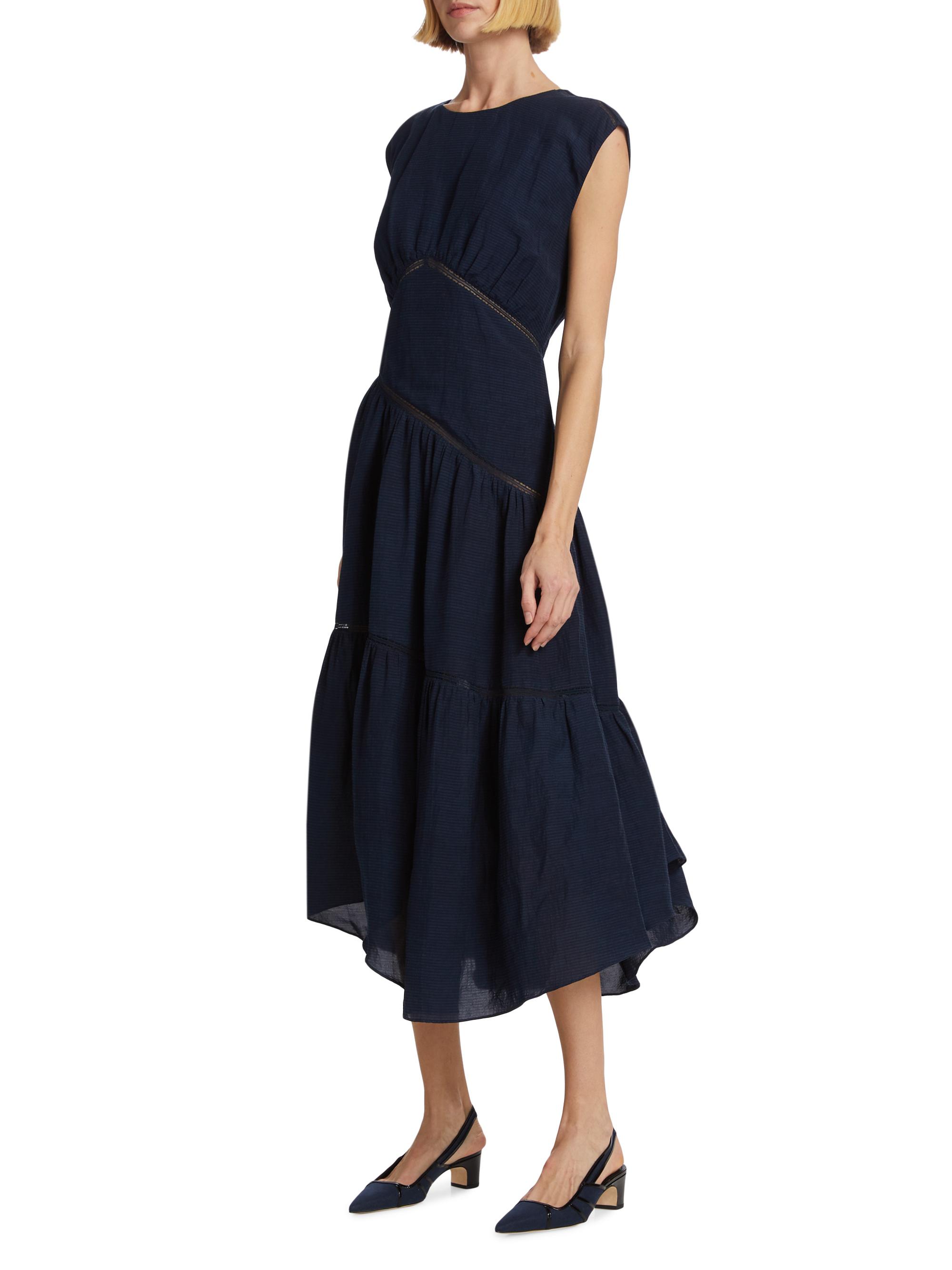 Frame Gathered Linen-Blend Handkerchief Midi-Dress NAVY