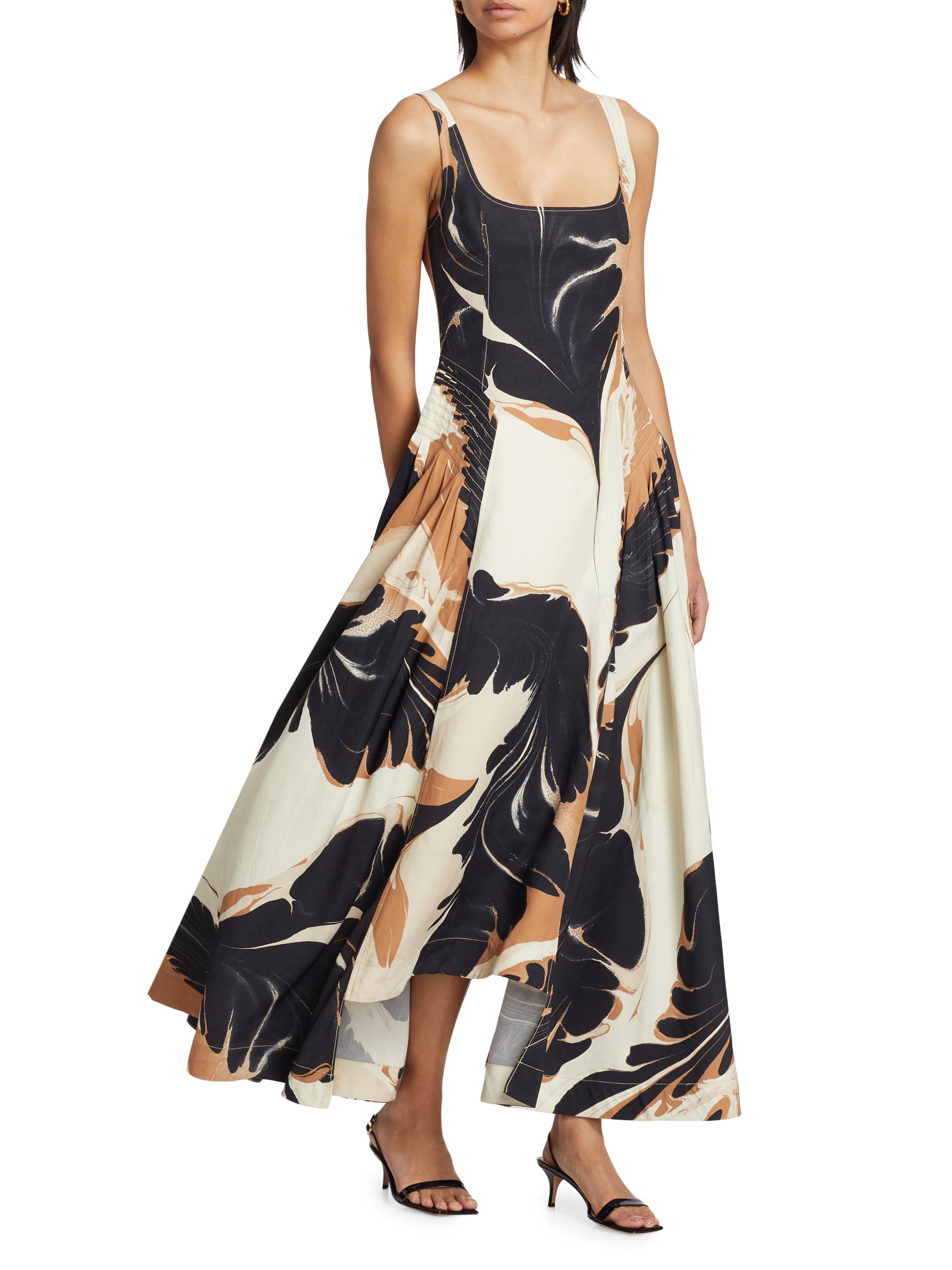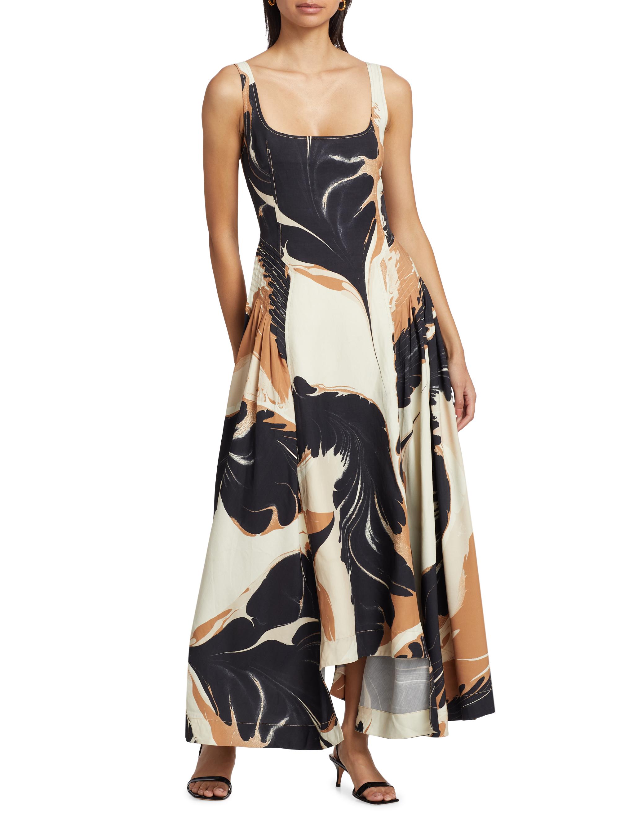 SIMKHAI Paola Linen-Blend Abstract Maxi-Dress