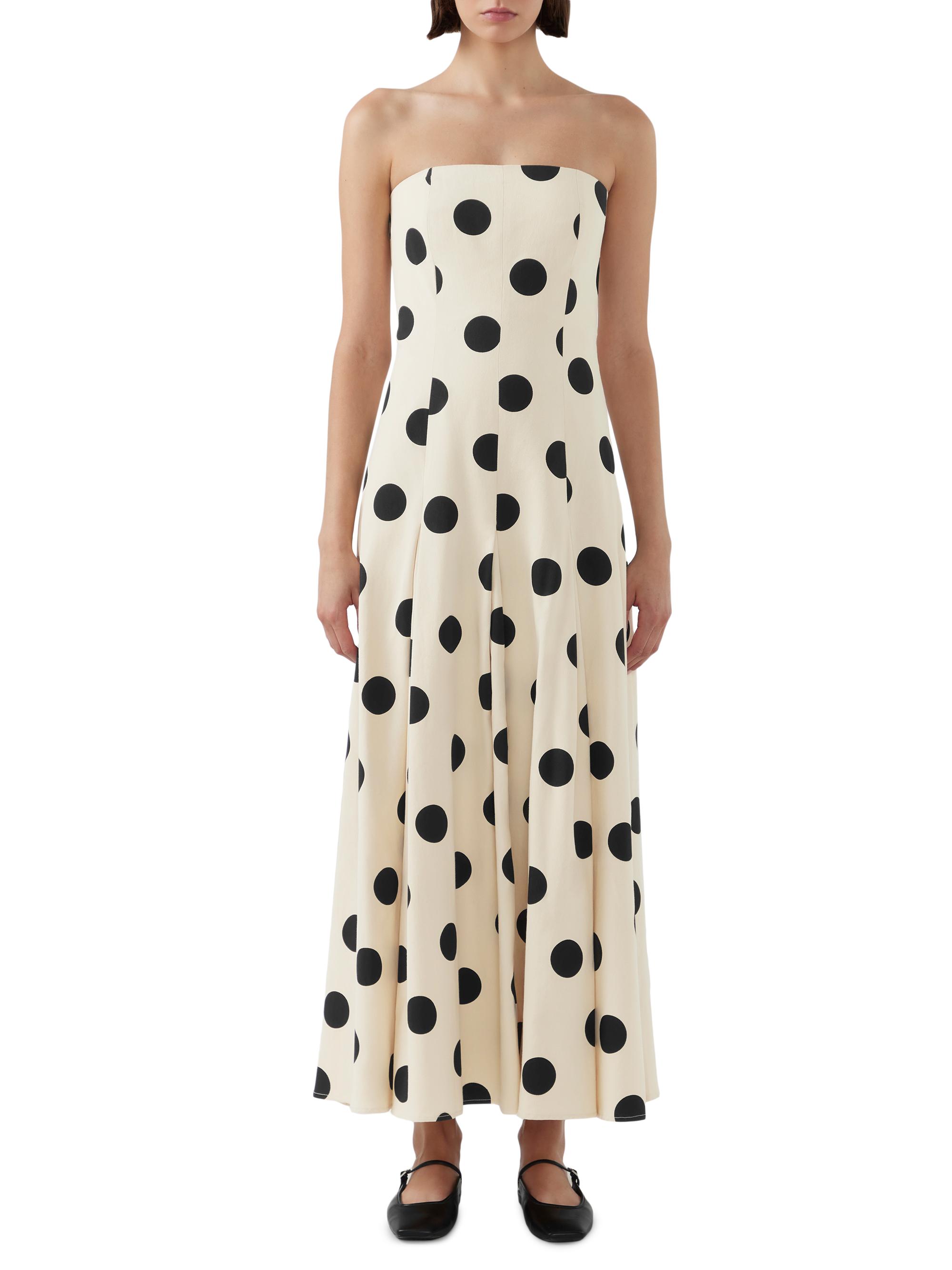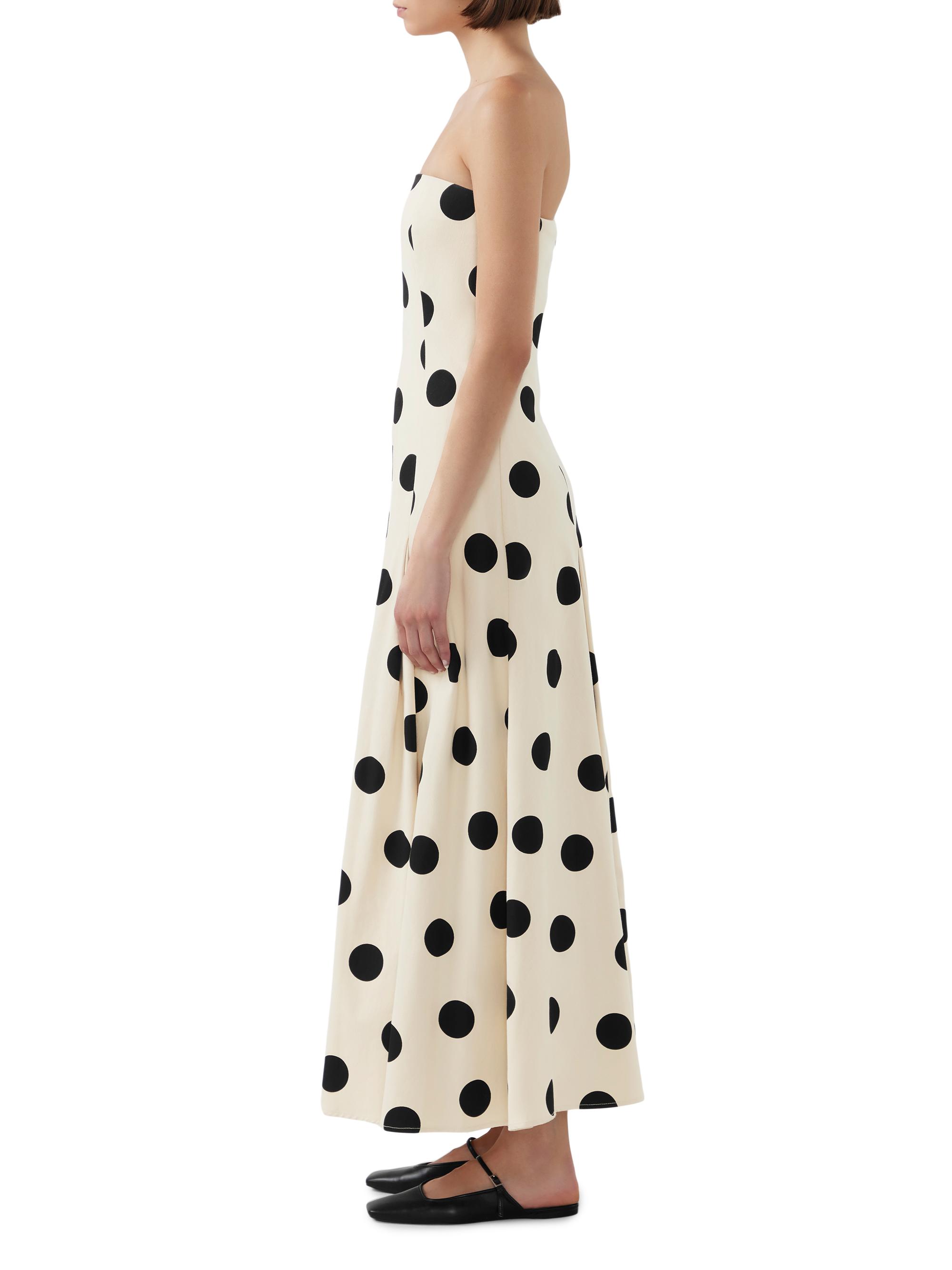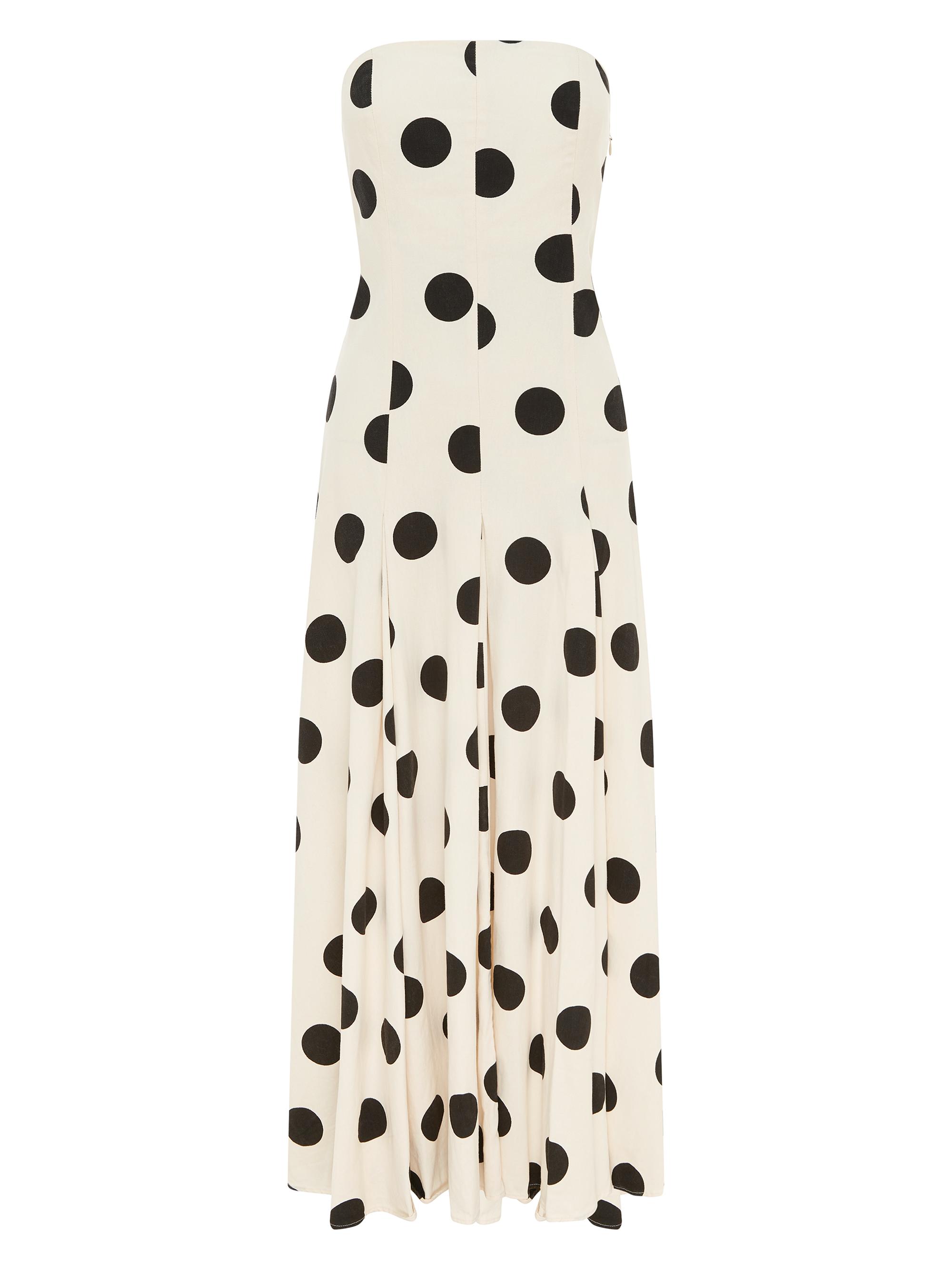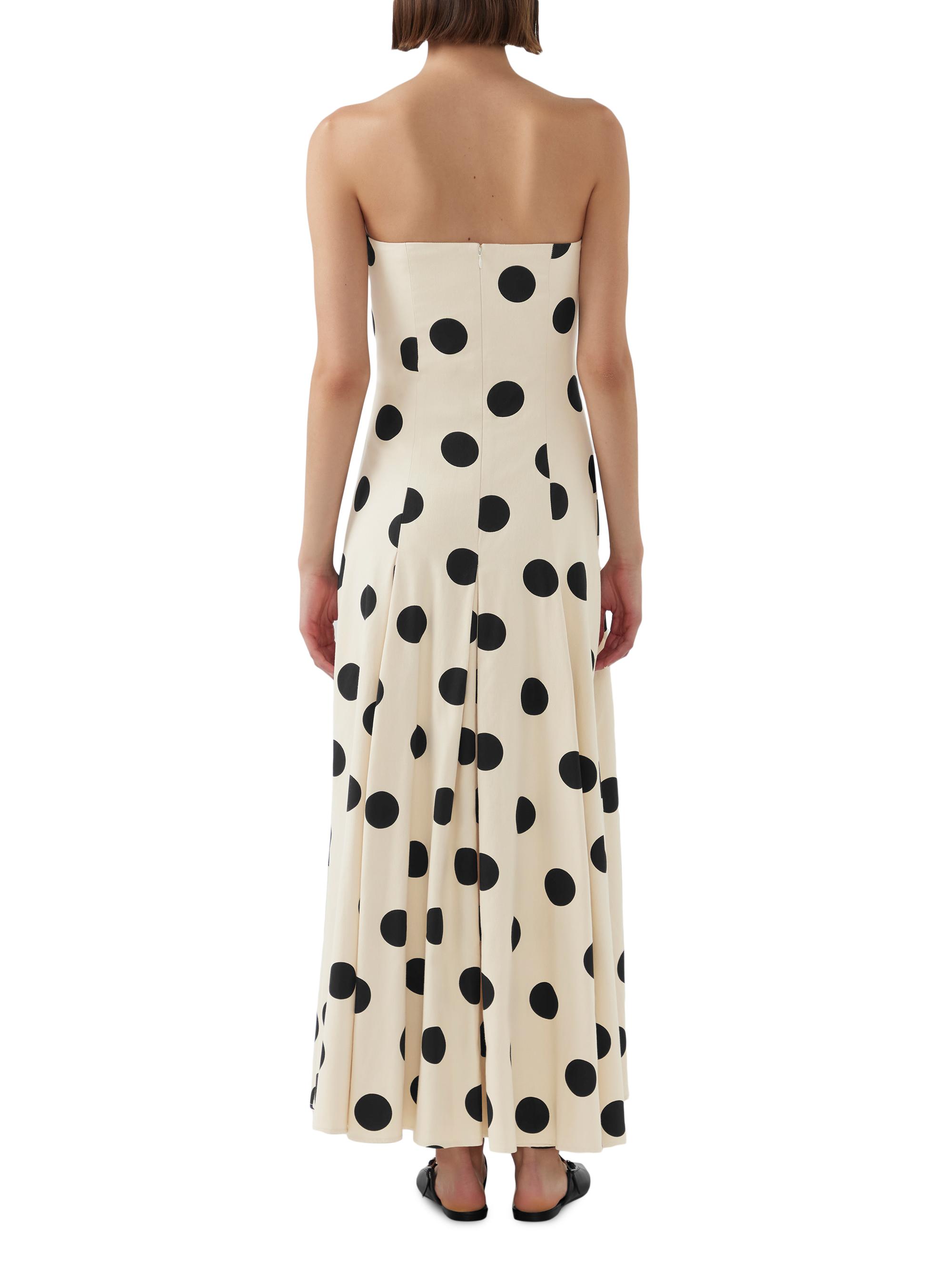 Bird & Knoll Marcello Polka Dot Cotton Twill Strapless Maxi Dress