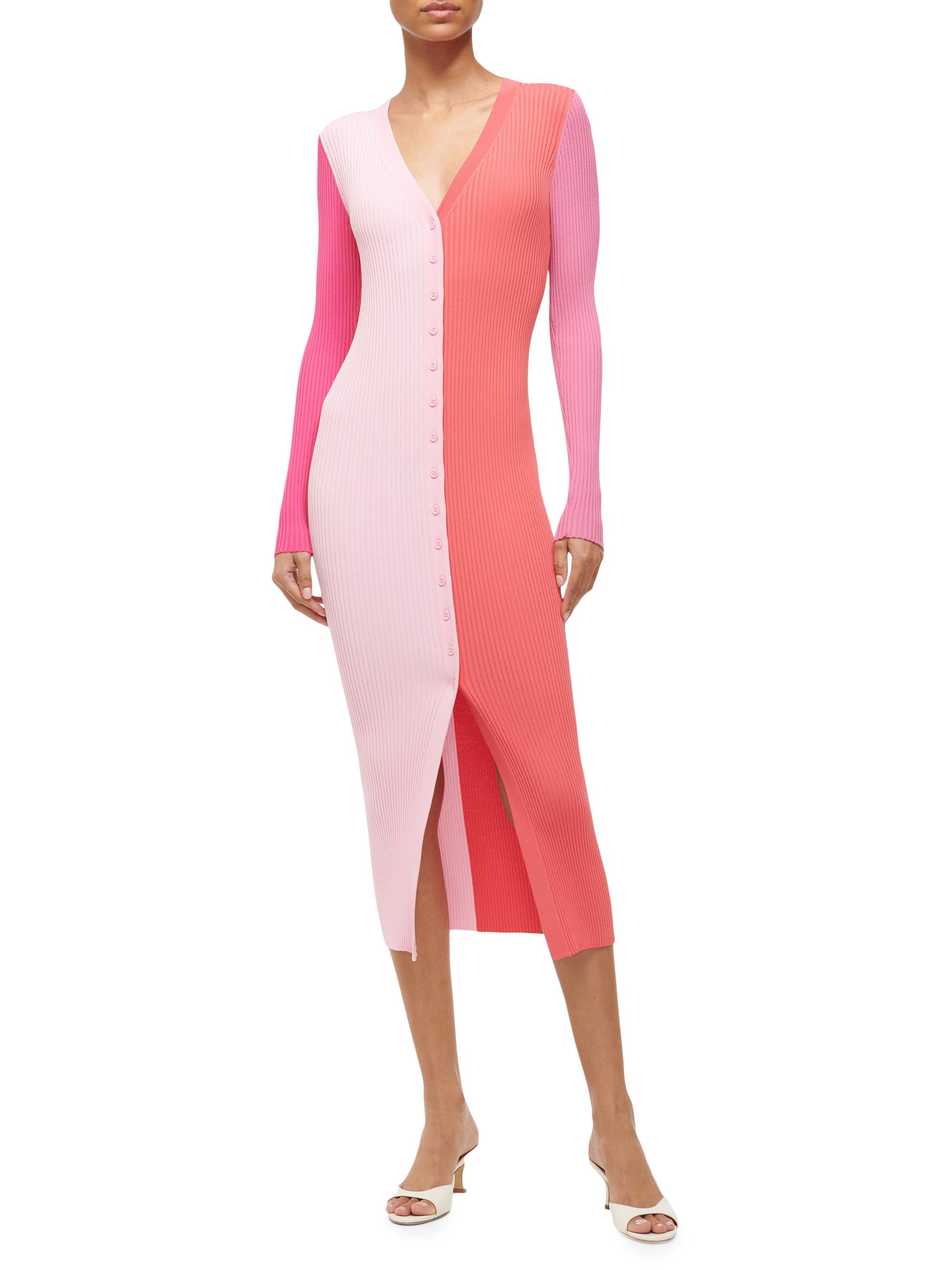 Staud Shoko Colorblocked Rib-Knit Midi-Dress