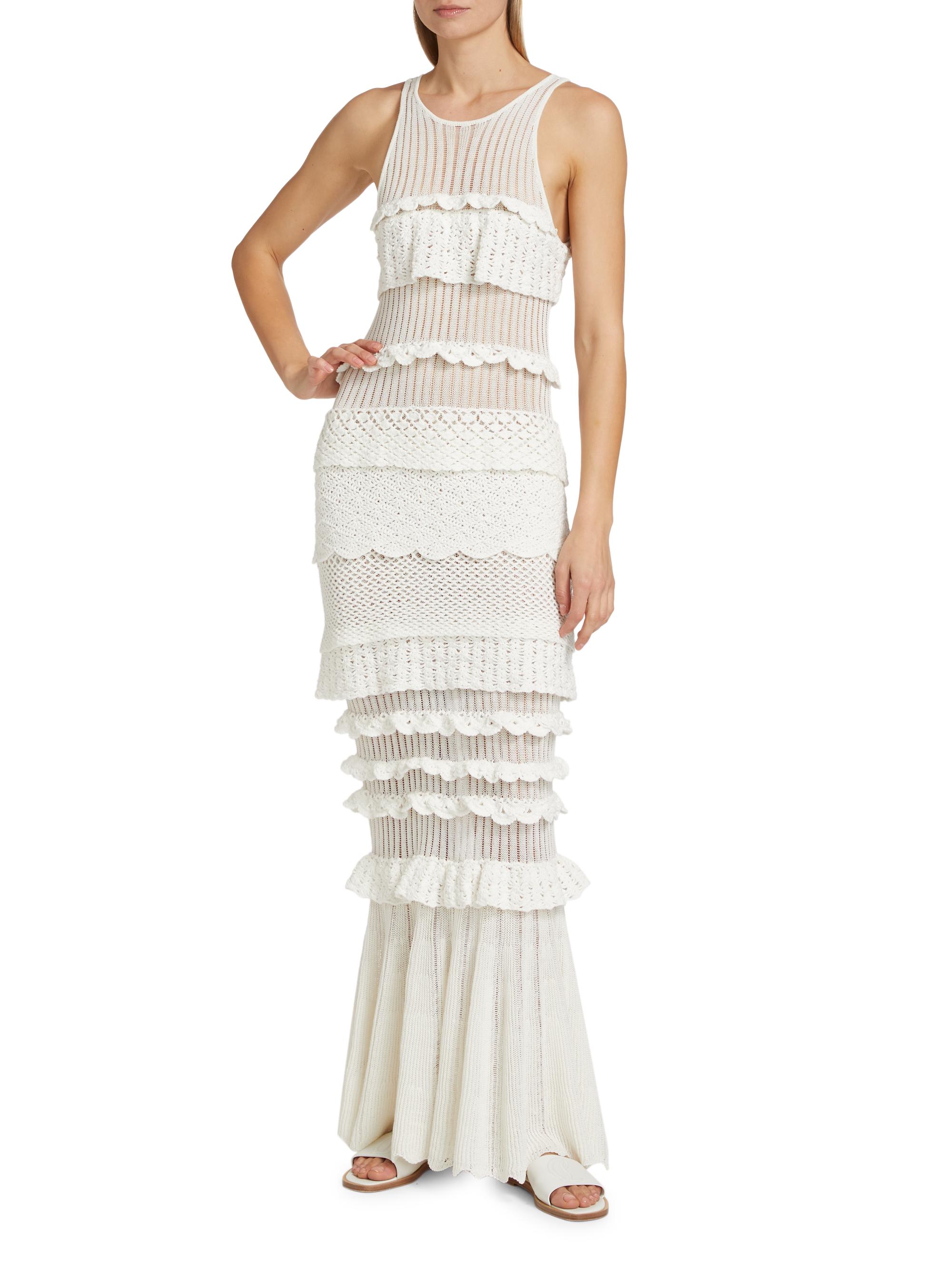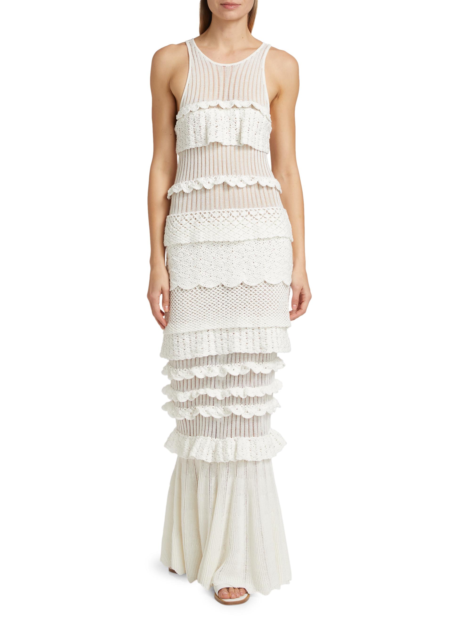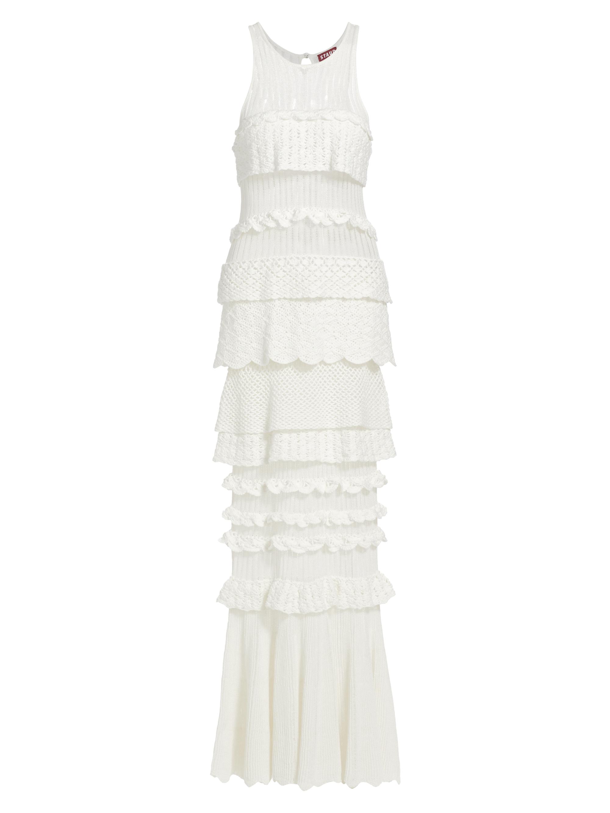 Staud Sorrento Cotton-Blend Ruffle Maxi Dress