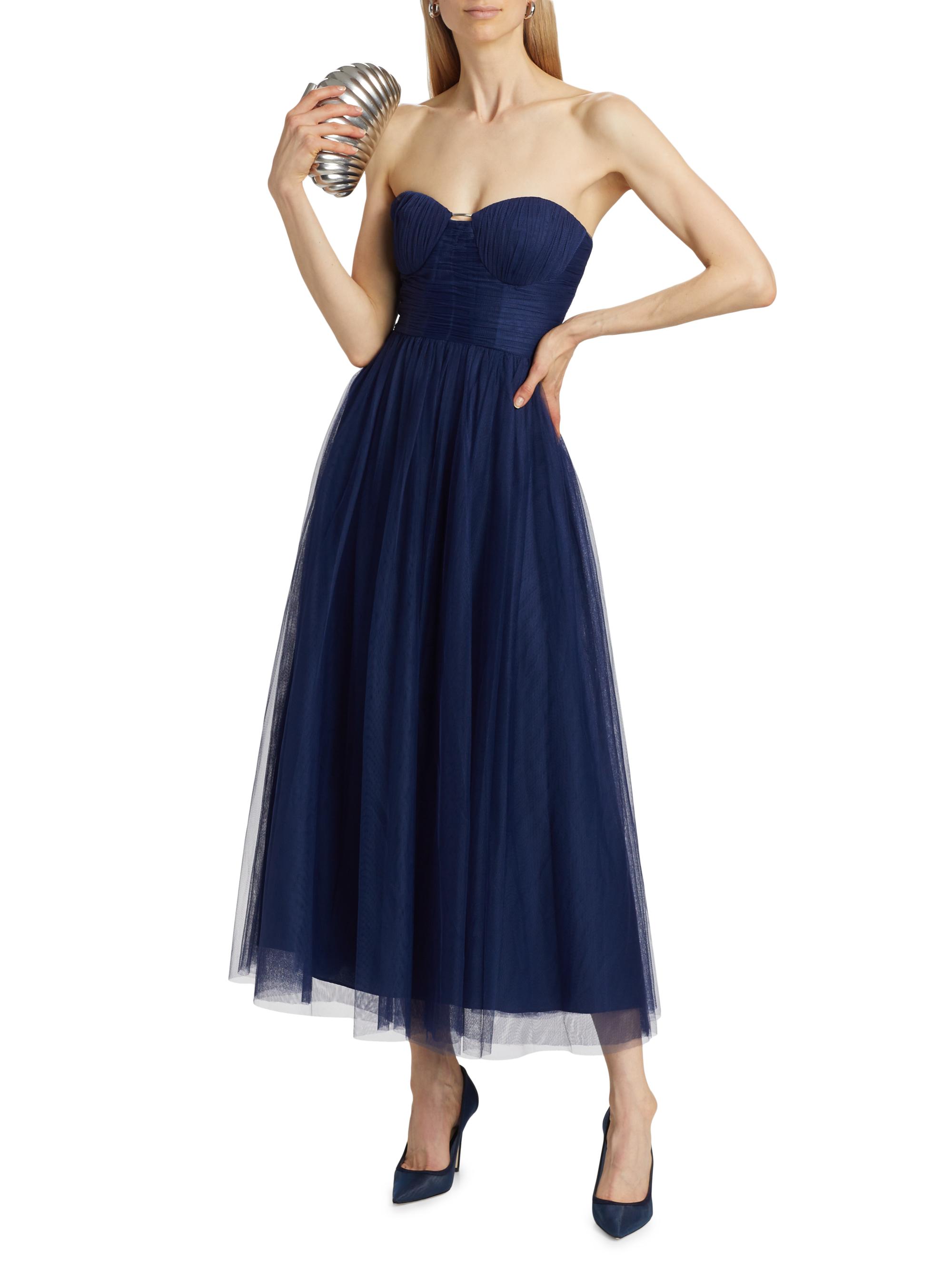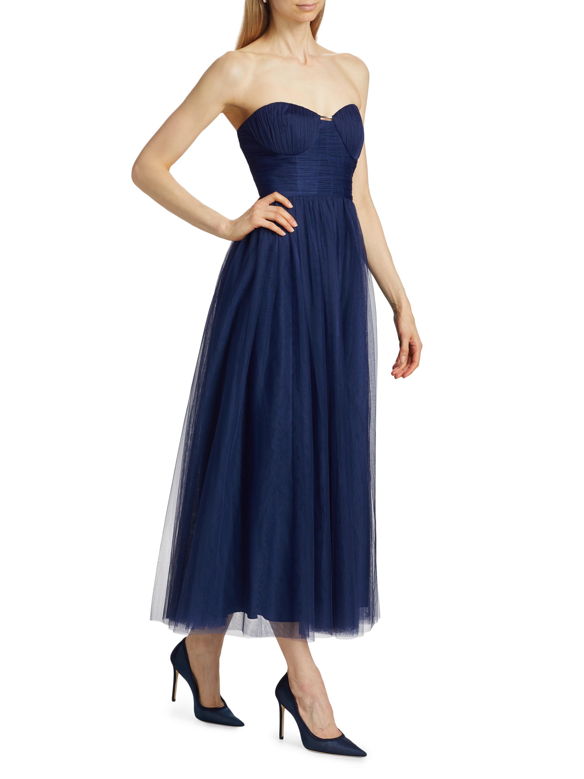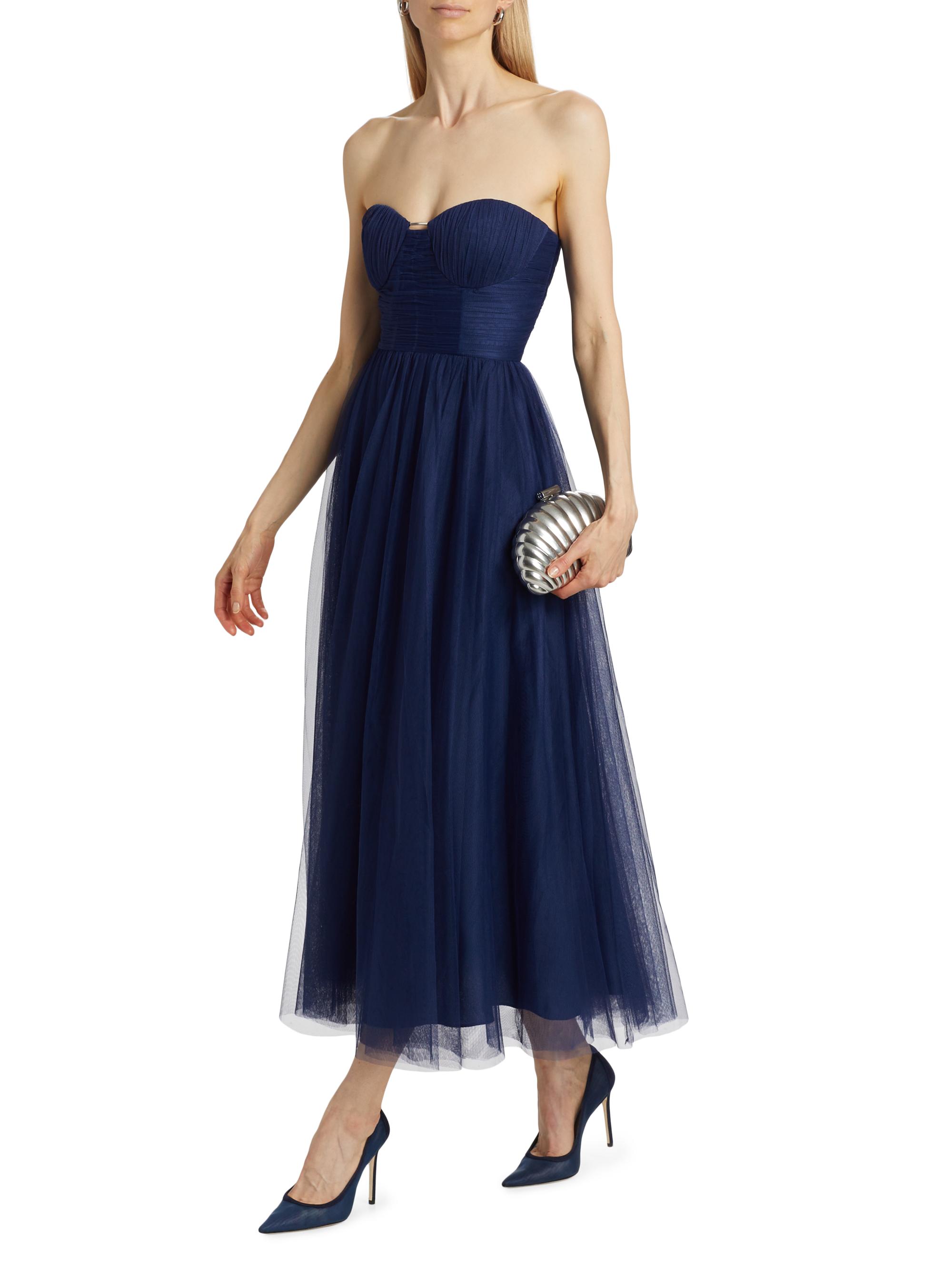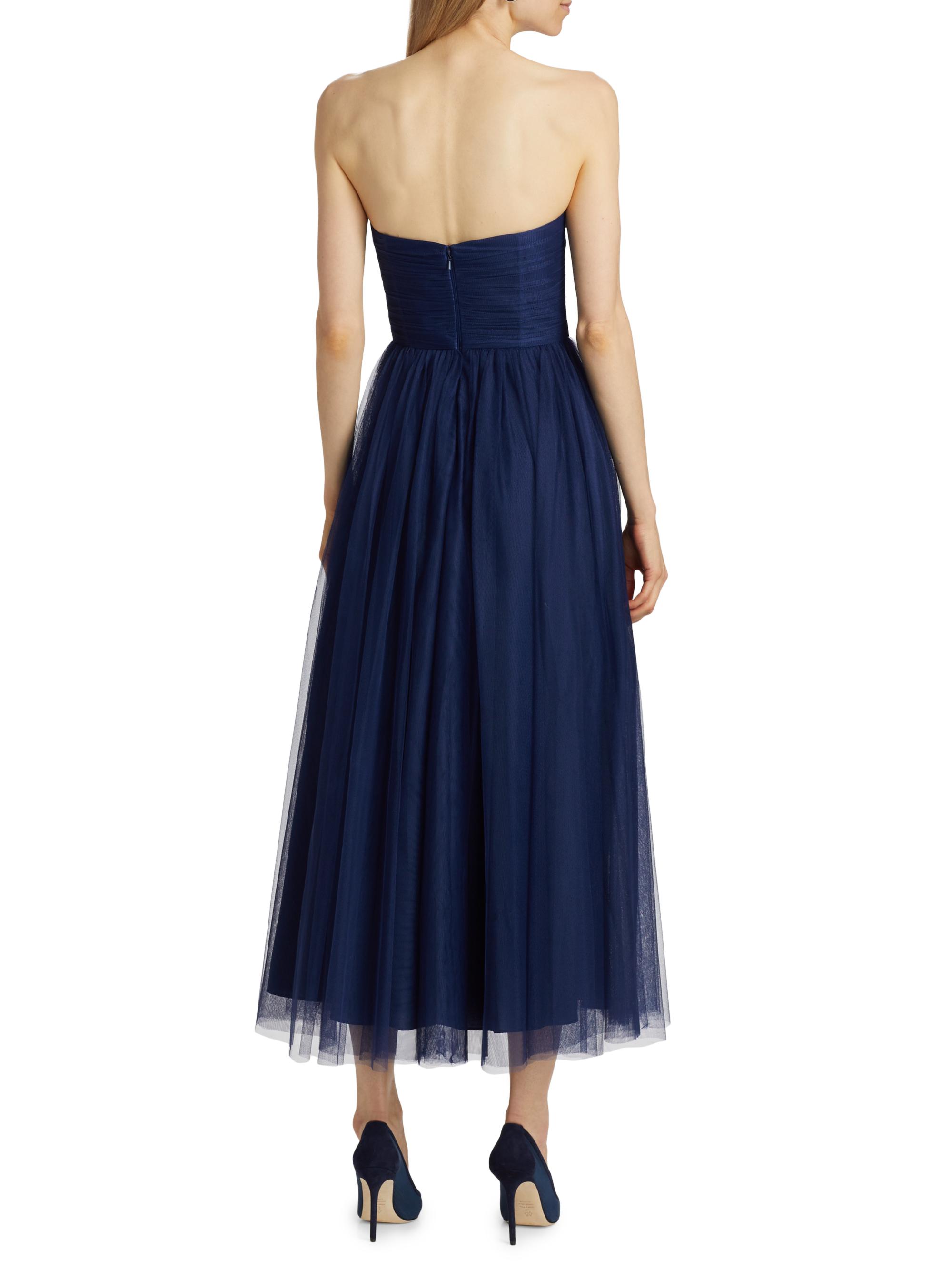 ML Monique Lhuillier Liane Tulle Strapless Cocktail Dress
