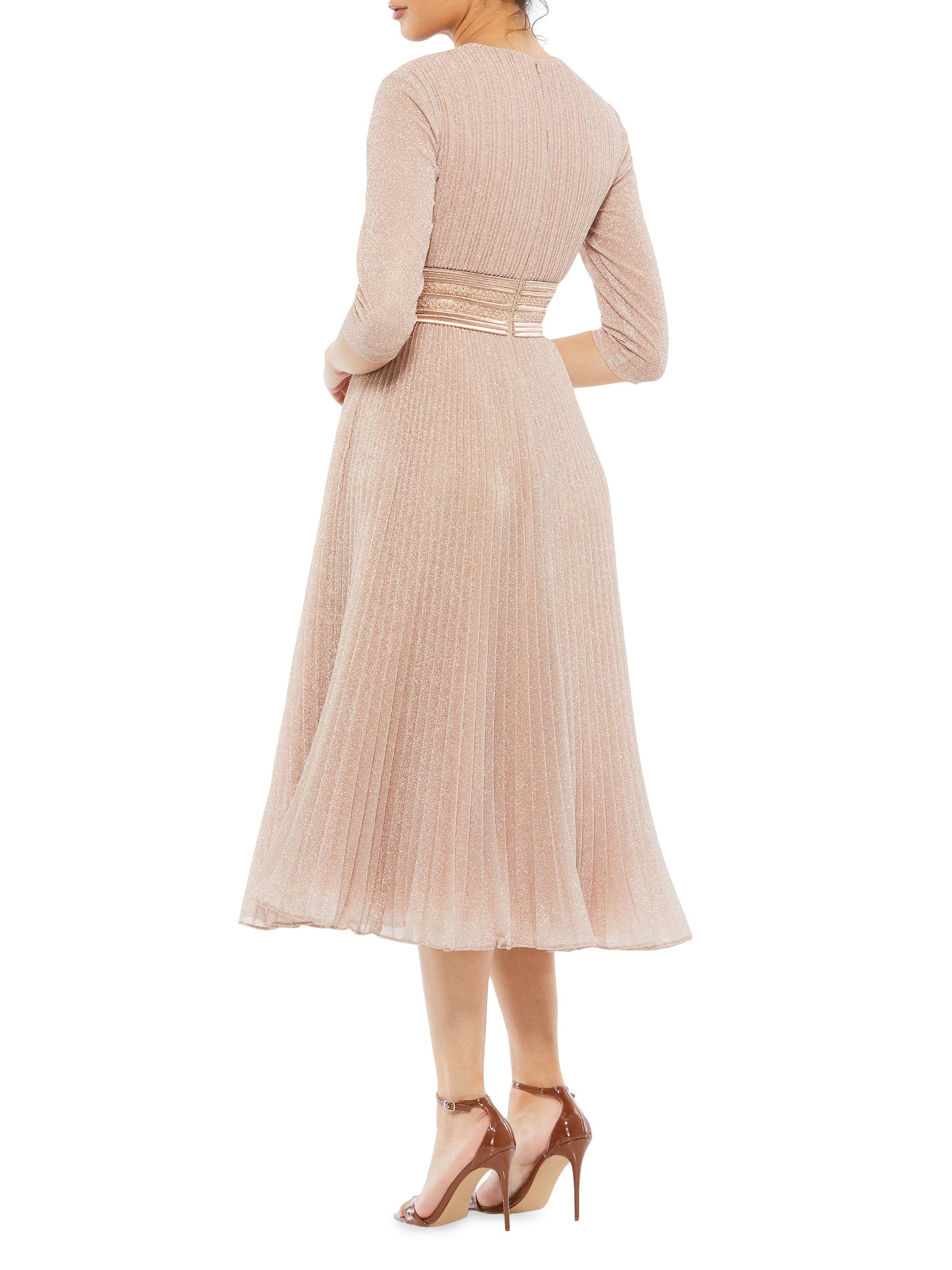 Mac Duggal Pleated Belted Cocktail Dress ROSE GOLD
