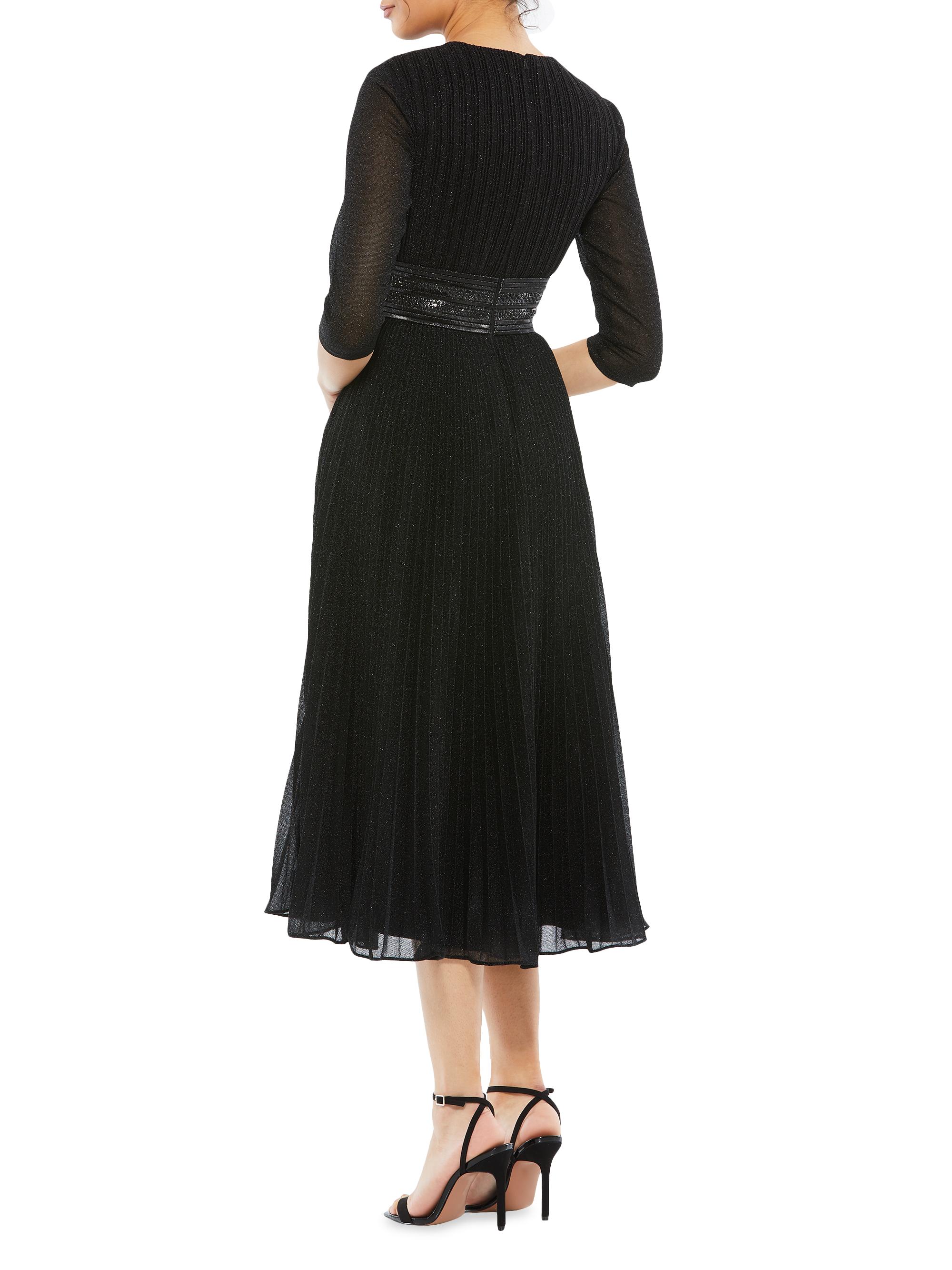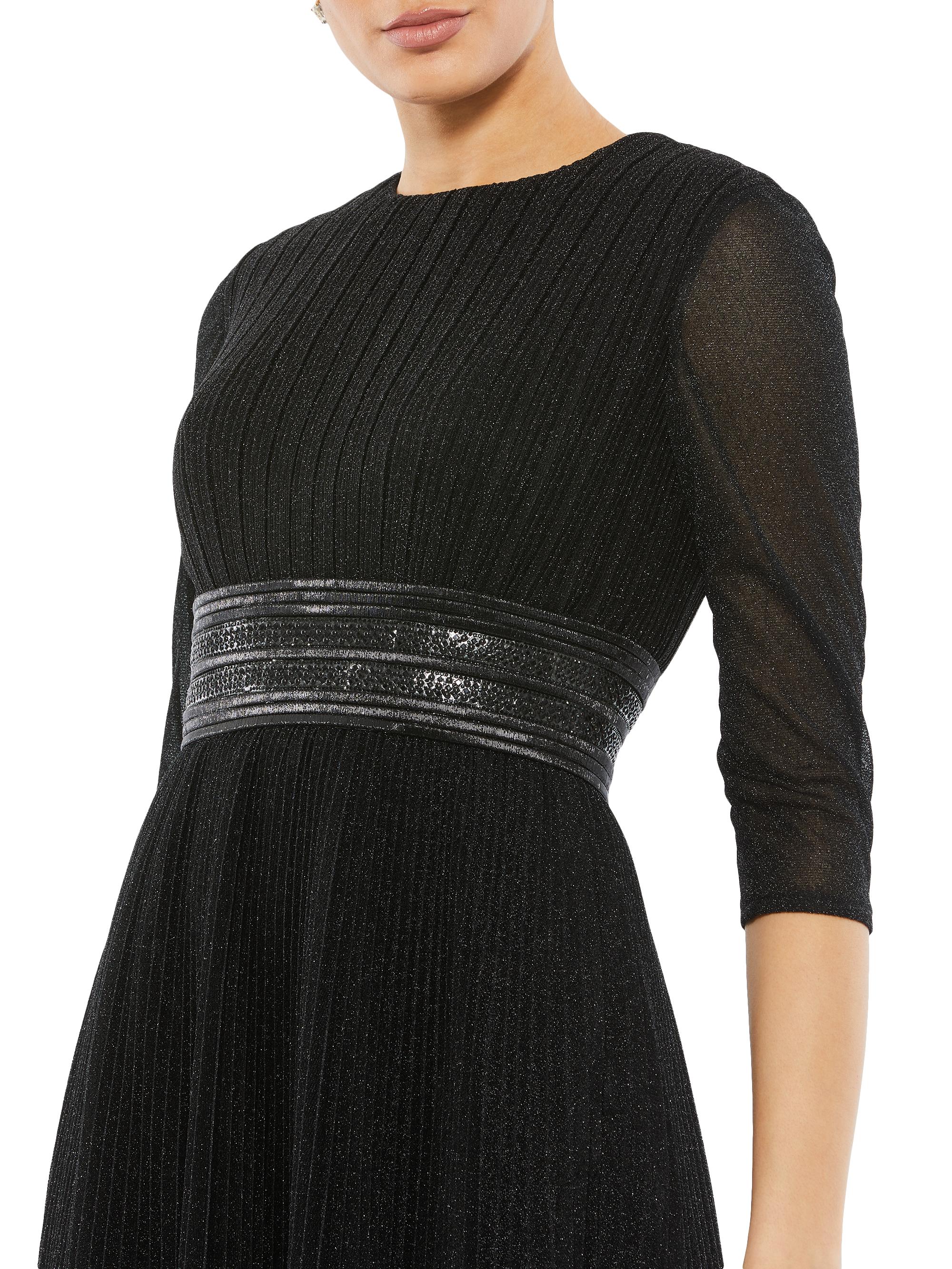 Mac Duggal Pleated Belted Cocktail Dress BLACK