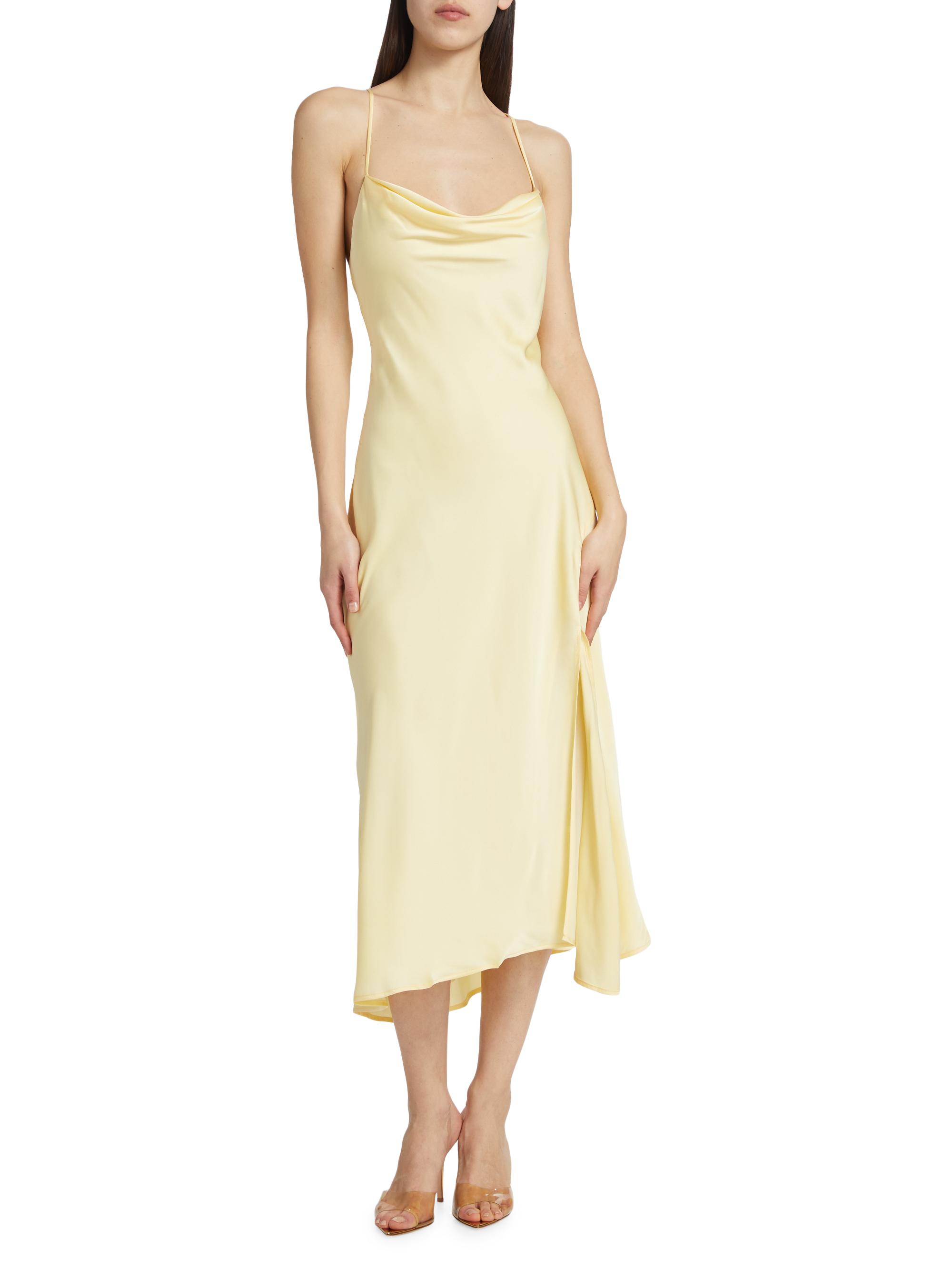 ASTR The Label Gaia Satin Draped Midi-Dress BUTTERCUP