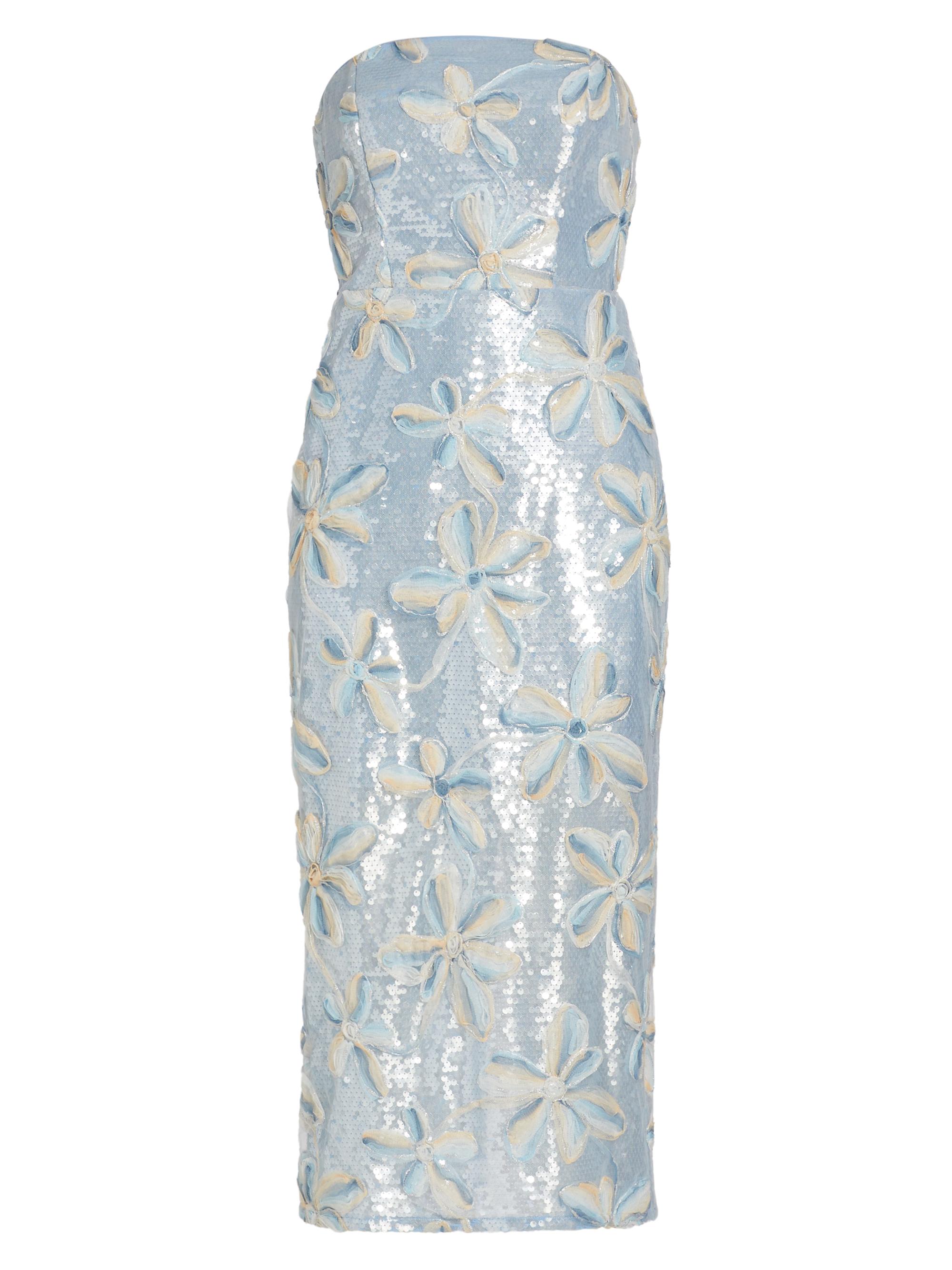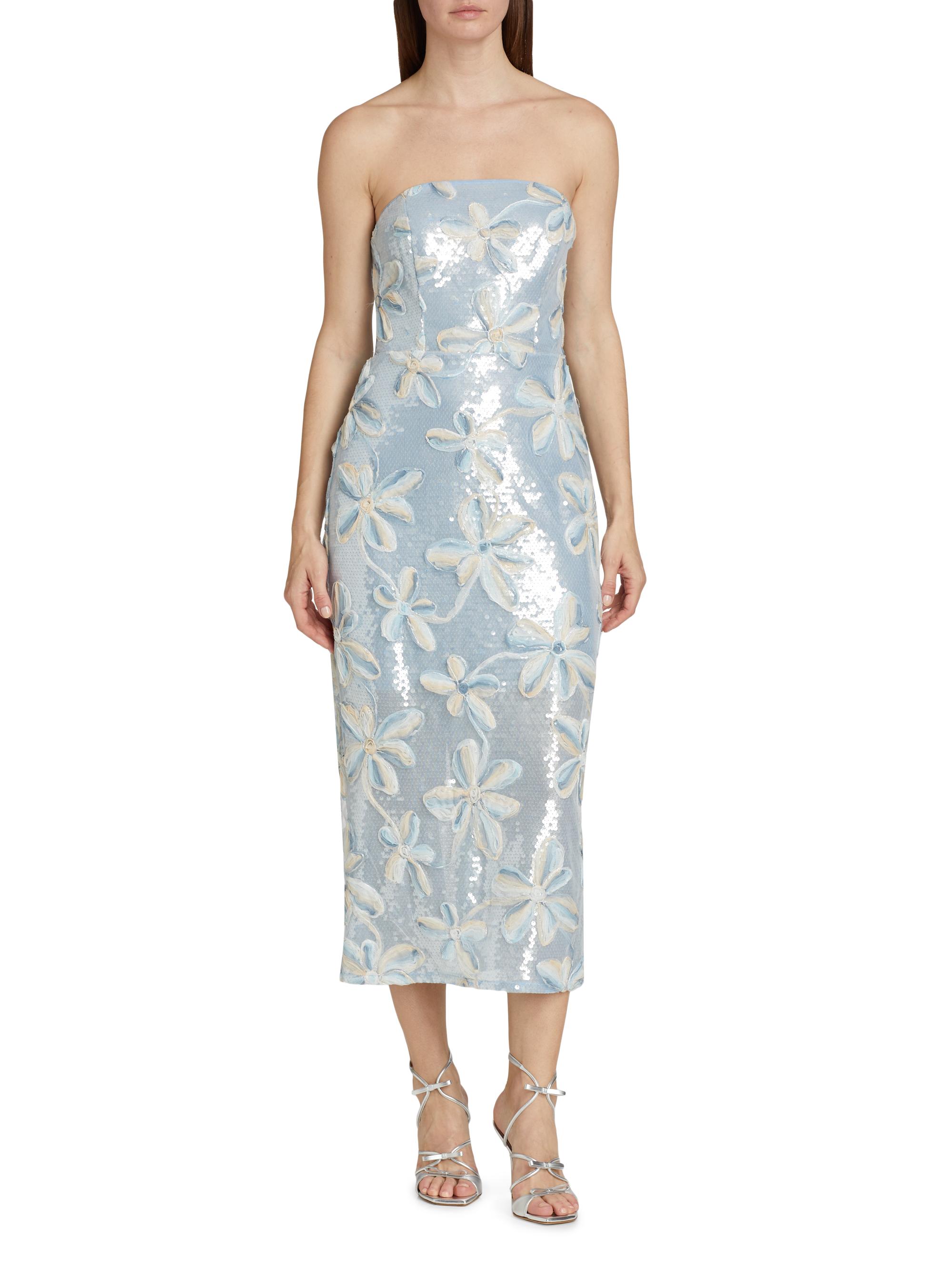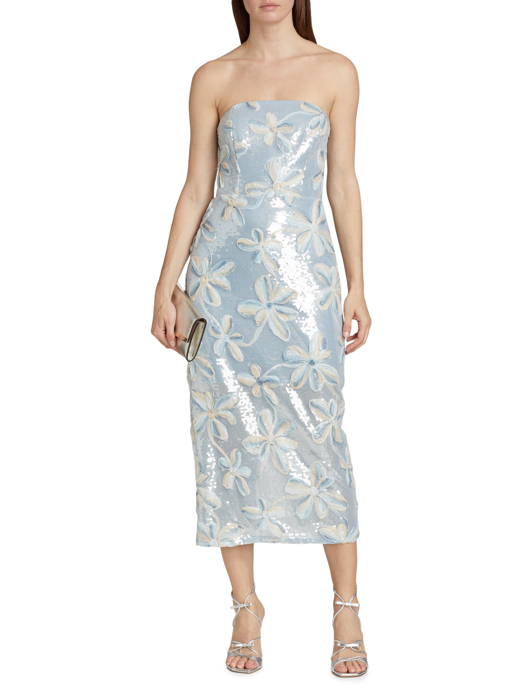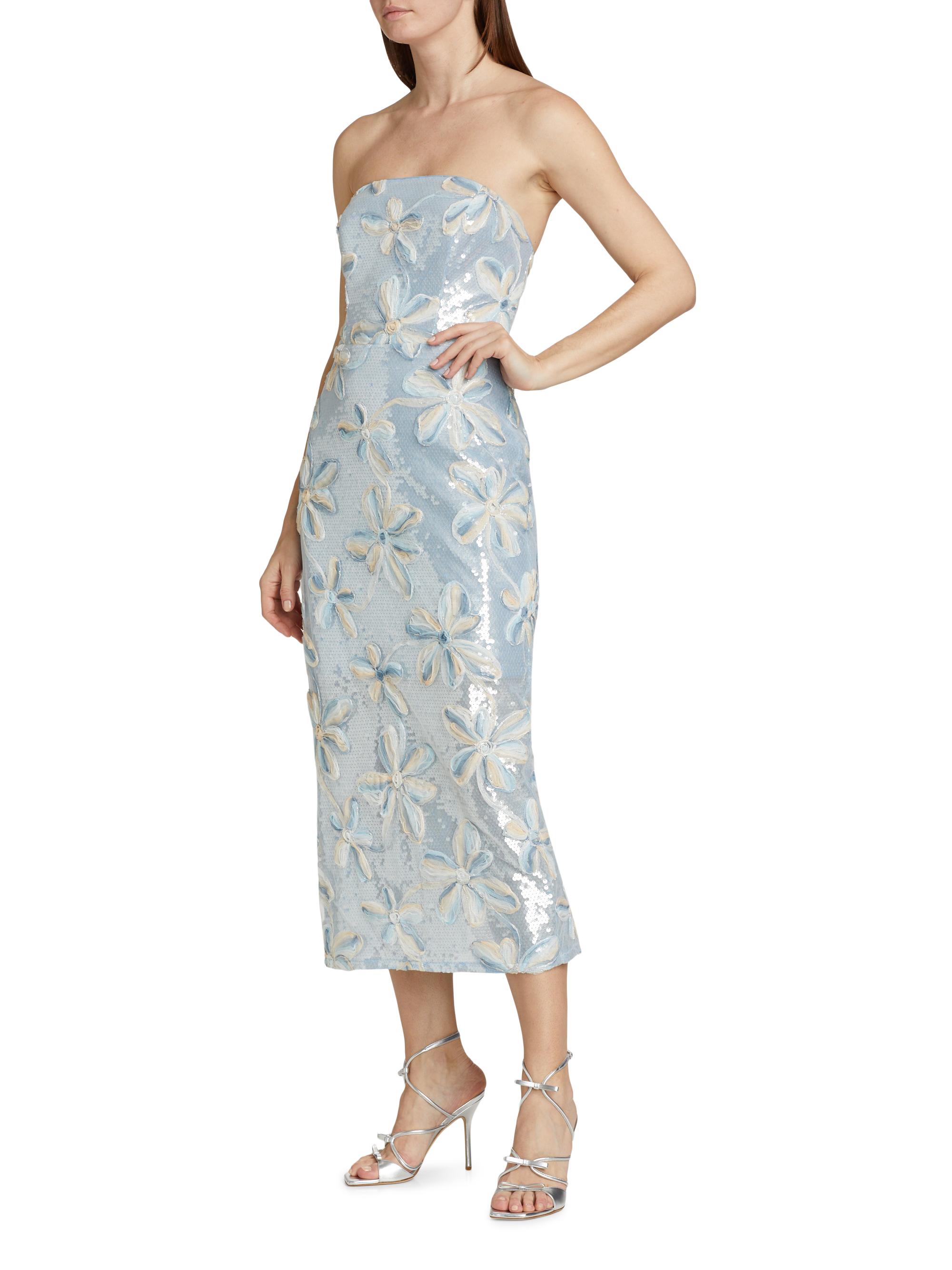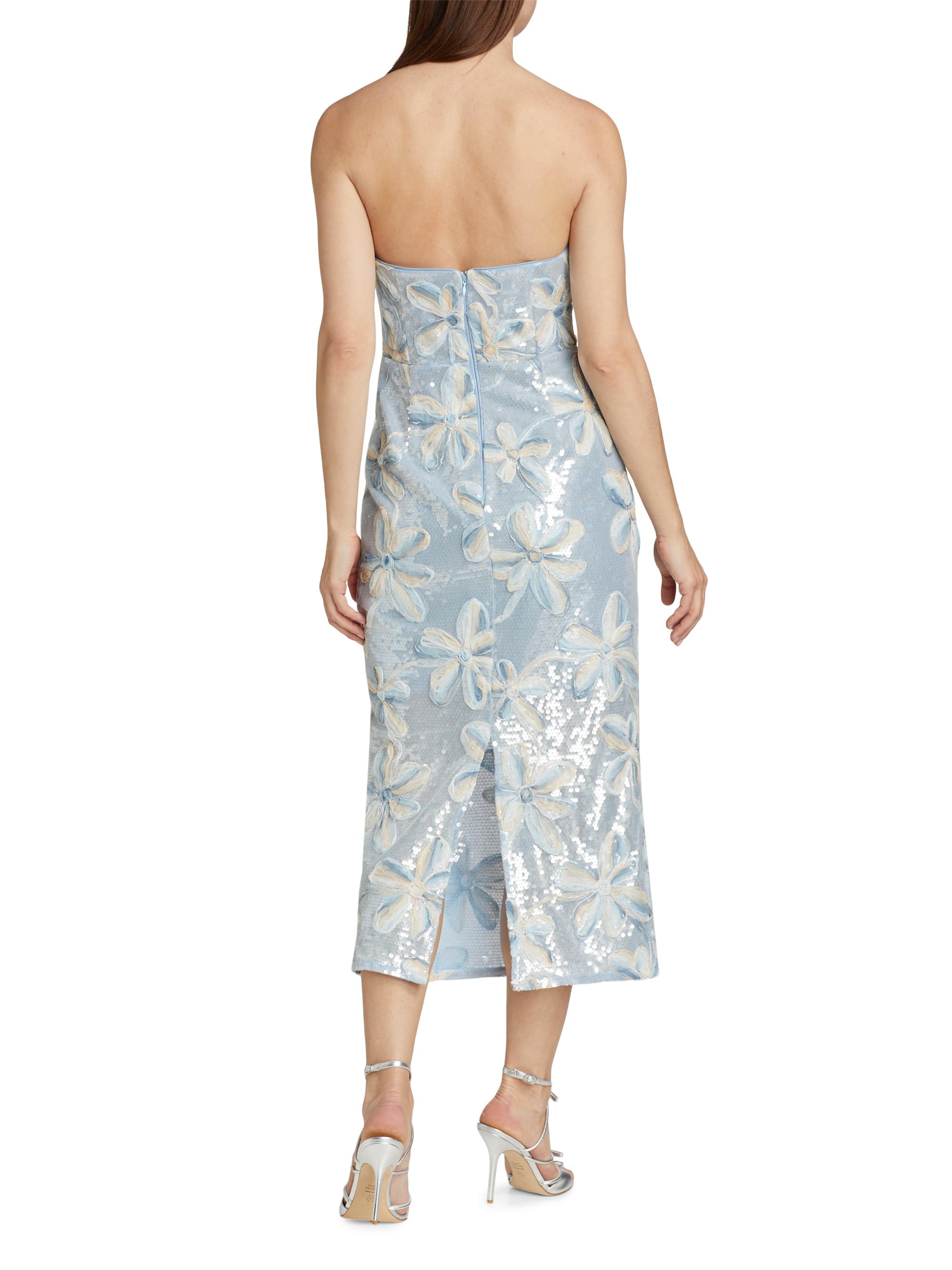 Milly Floral Embroidered Sequin Strapless Dress