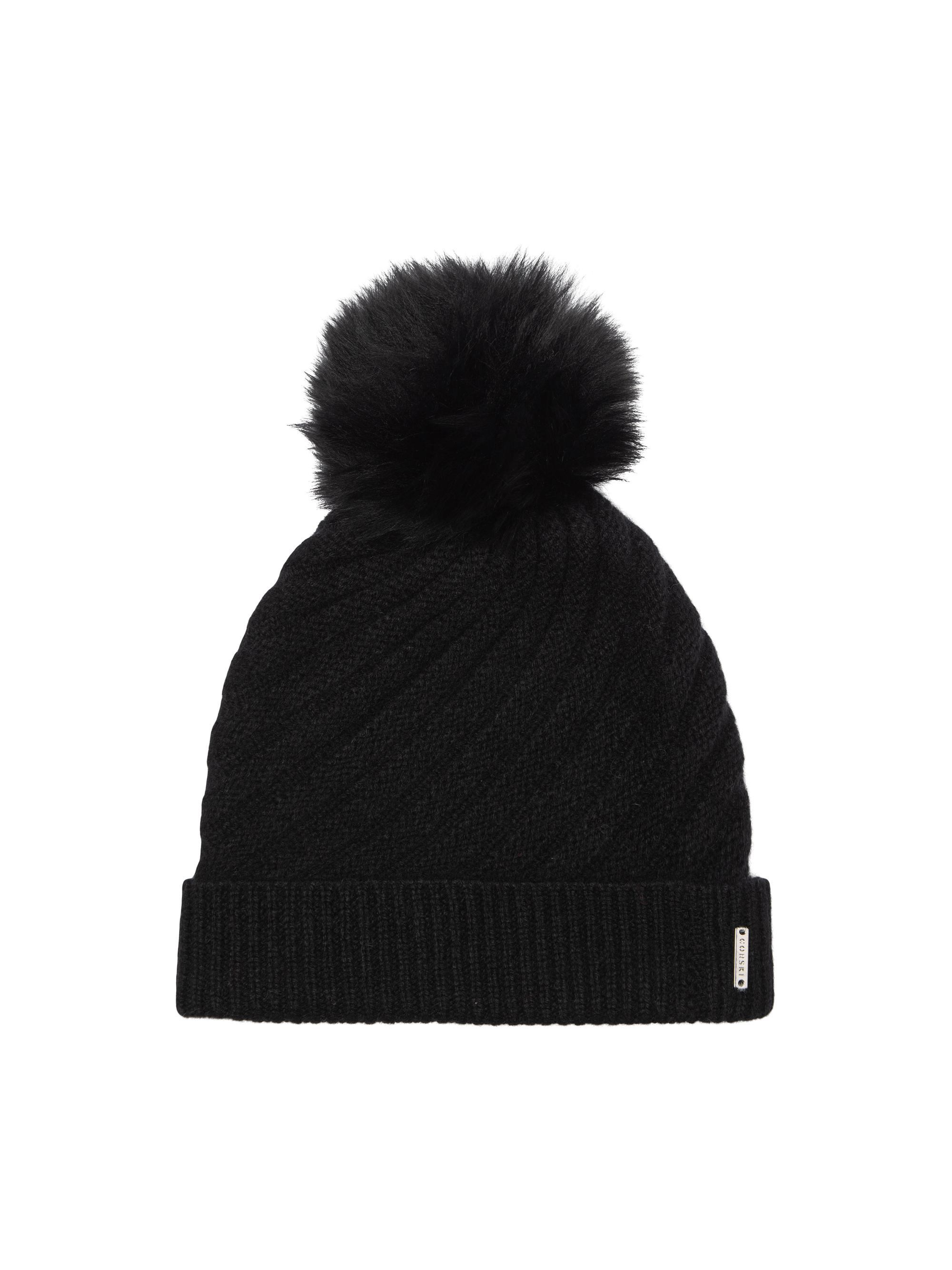 Gorski Cashmere Knit Hat with Toscana Lamb Pompom BLACK