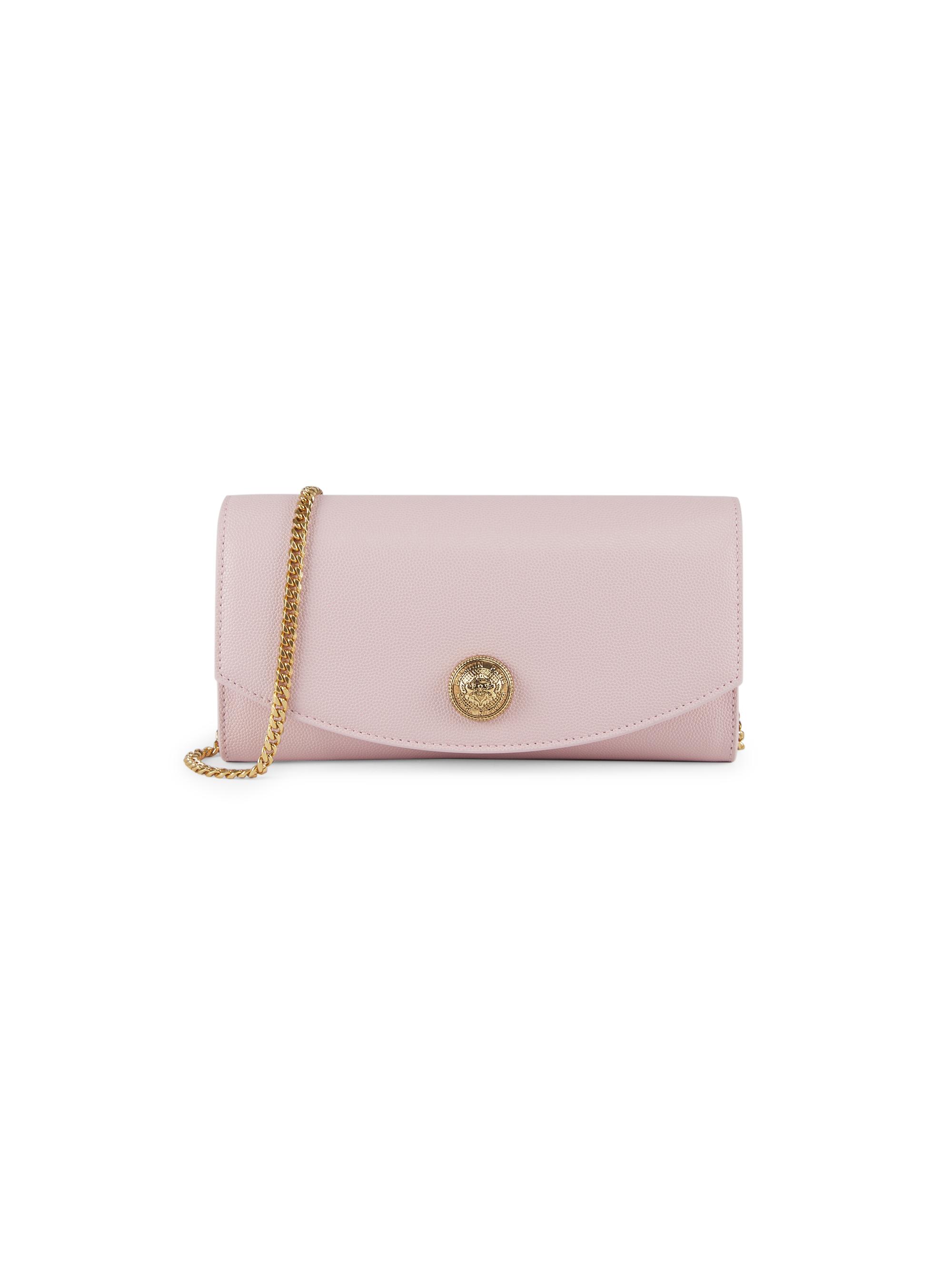 Balmain Embleme Grained Leather Clutch ROSE CLAIR