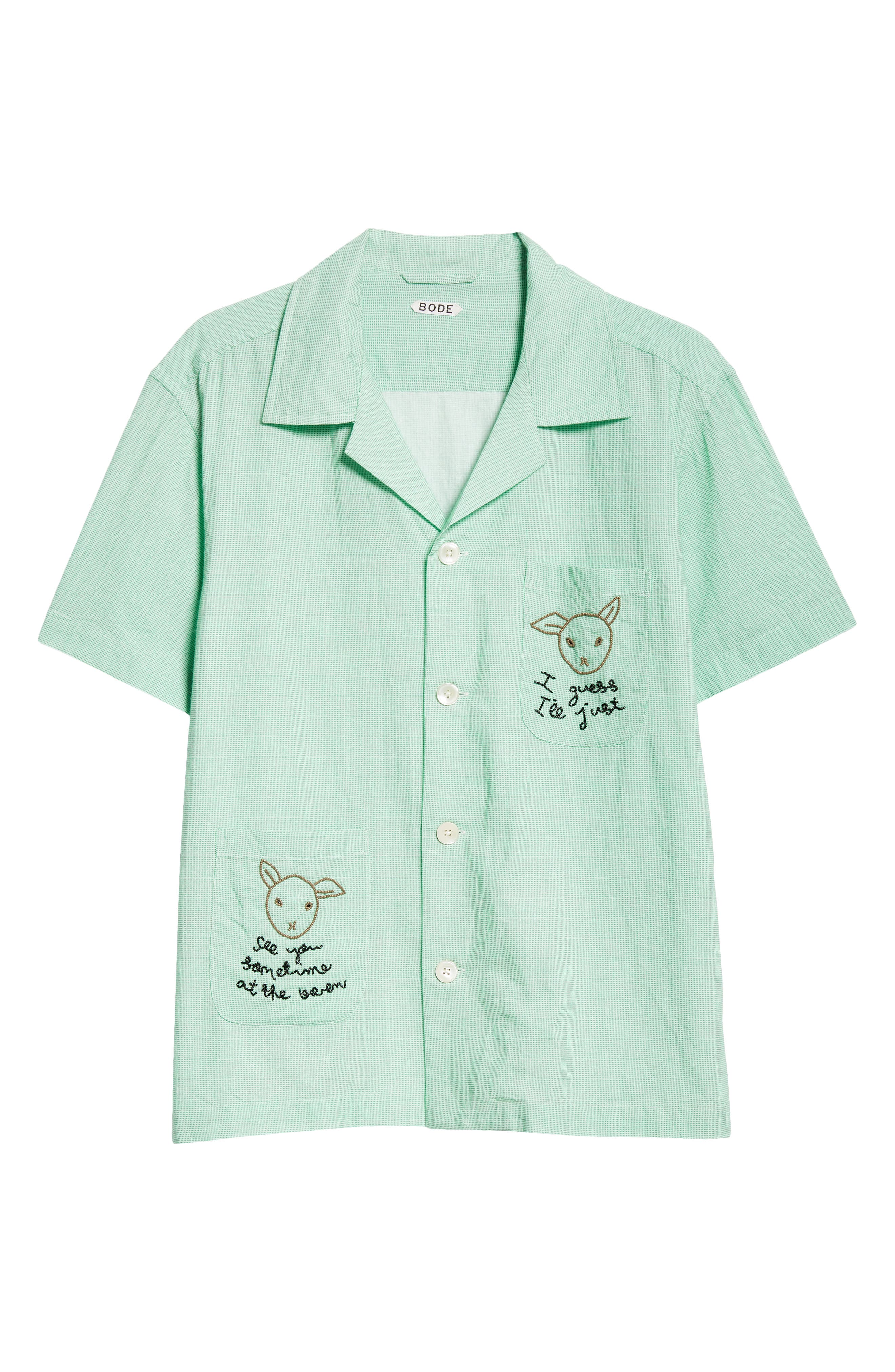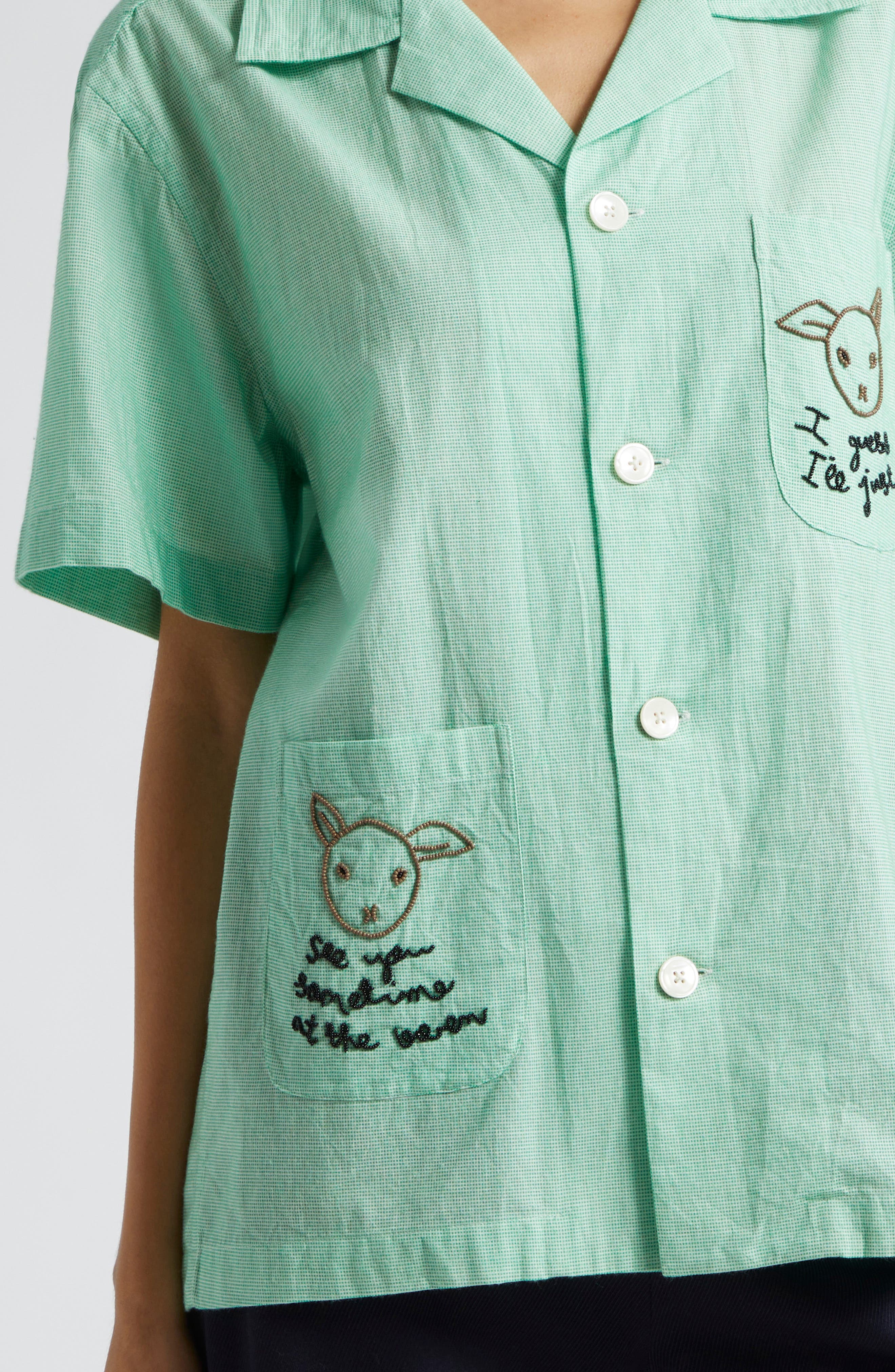 Bode See You at the Barn Embroidered Cotton Button-Up Shirt_White Green