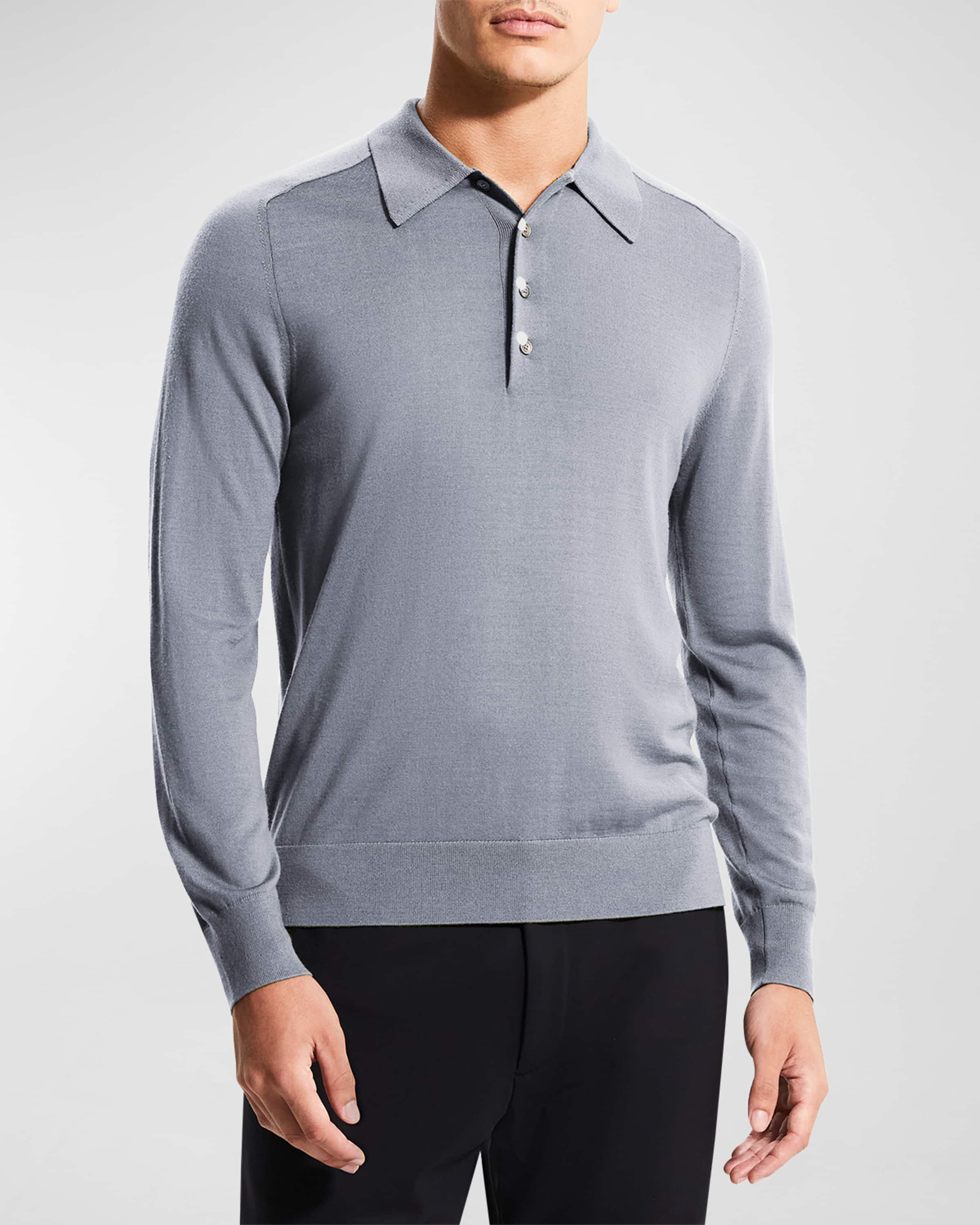 Theory Mens Regal Wool Long-Sleeve Polo Shirt