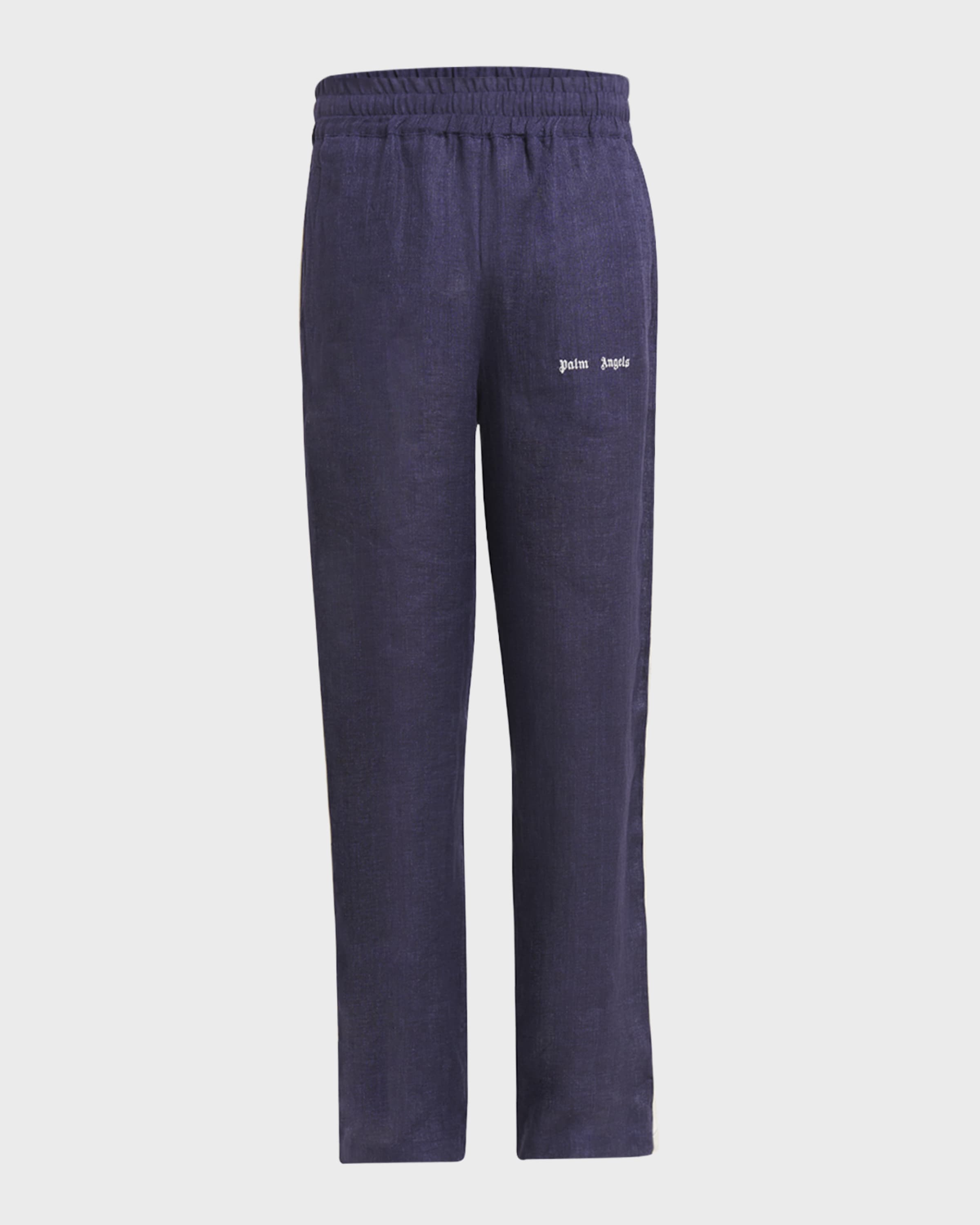 Palm Angels Mens Classic Logo Linen-Blend Track Pants