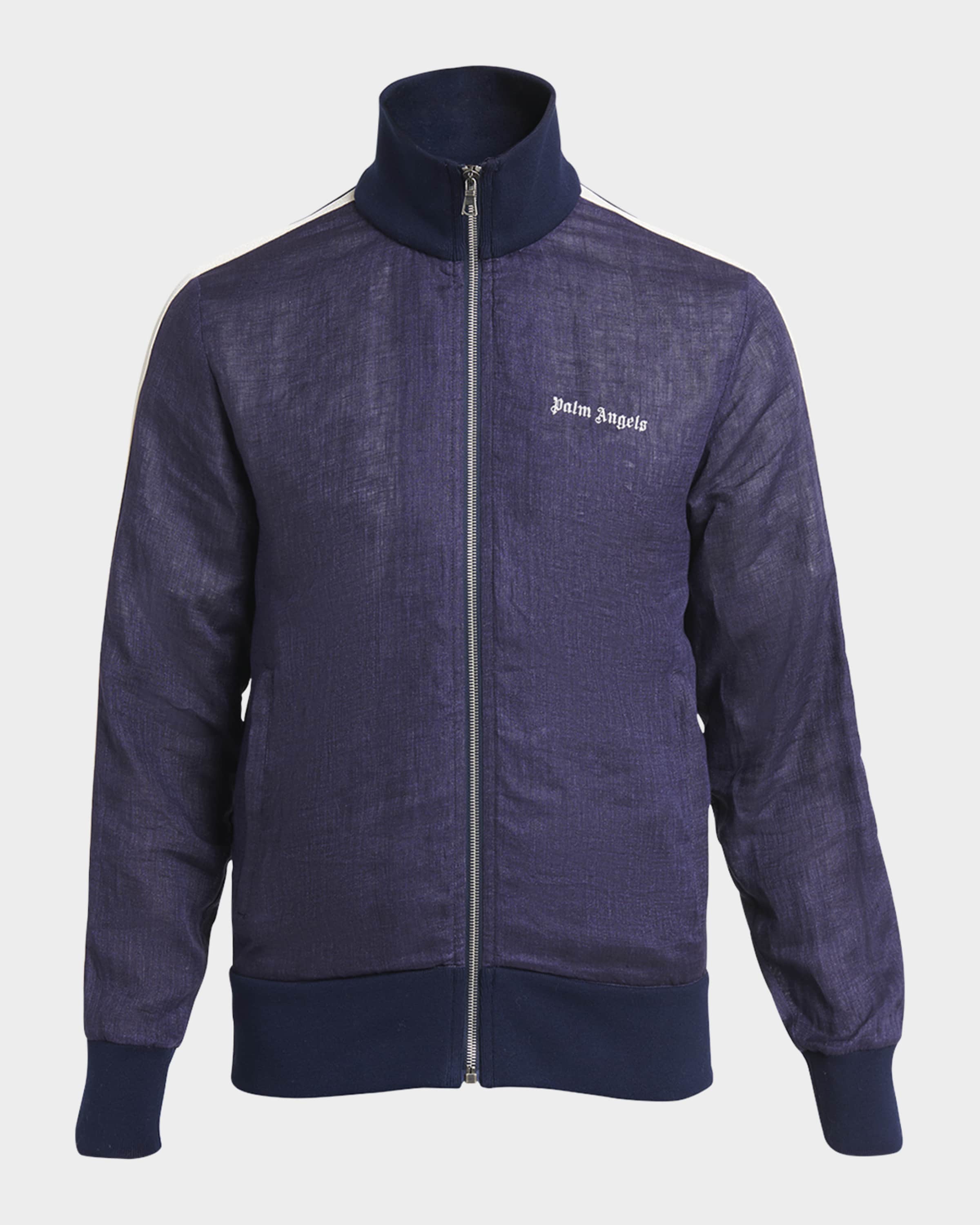 Palm Angels Mens Classic Logo Linen-Blend Track Jacket