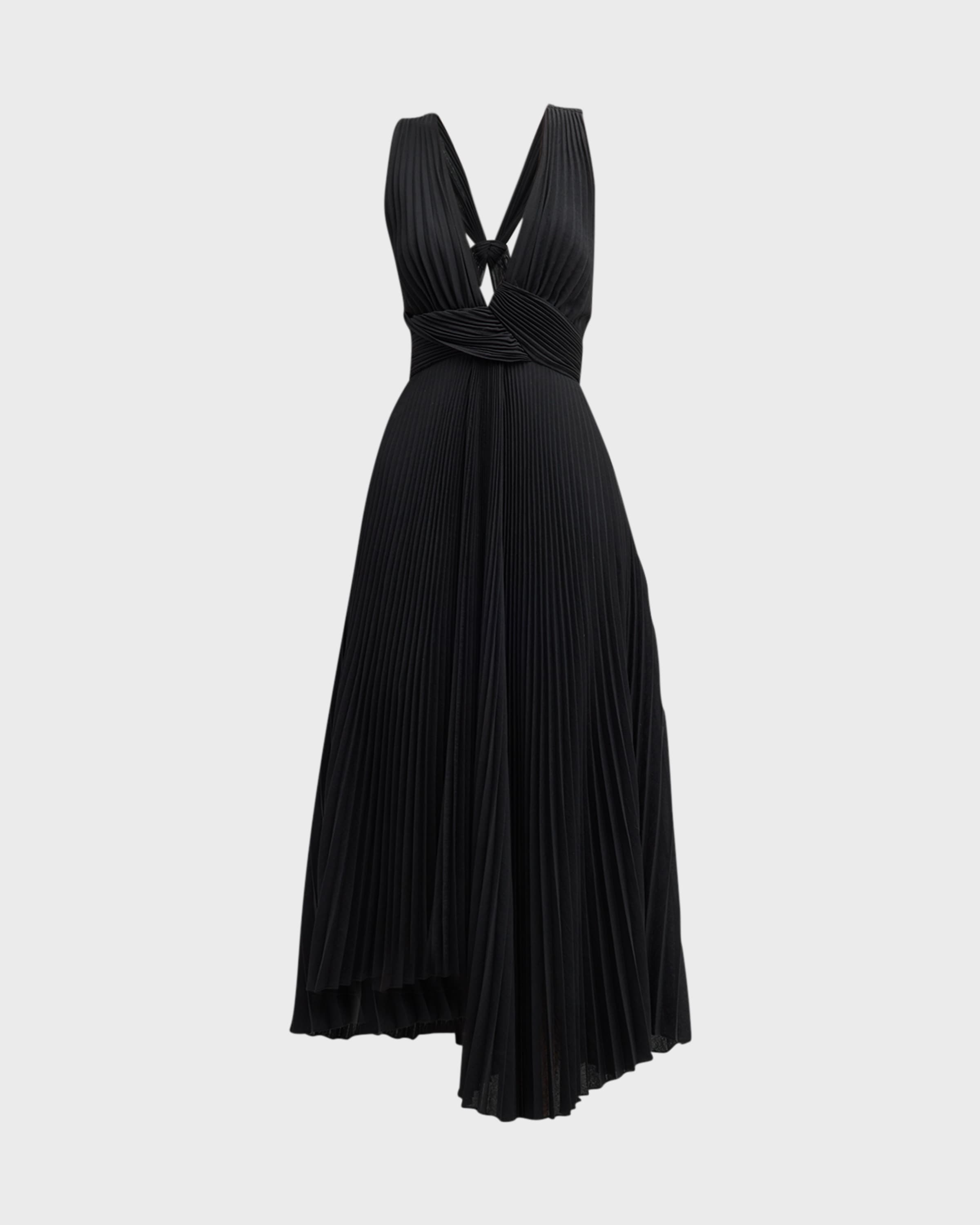 A.L.C. Everly Pleated Plunge-Neck Midi Dress