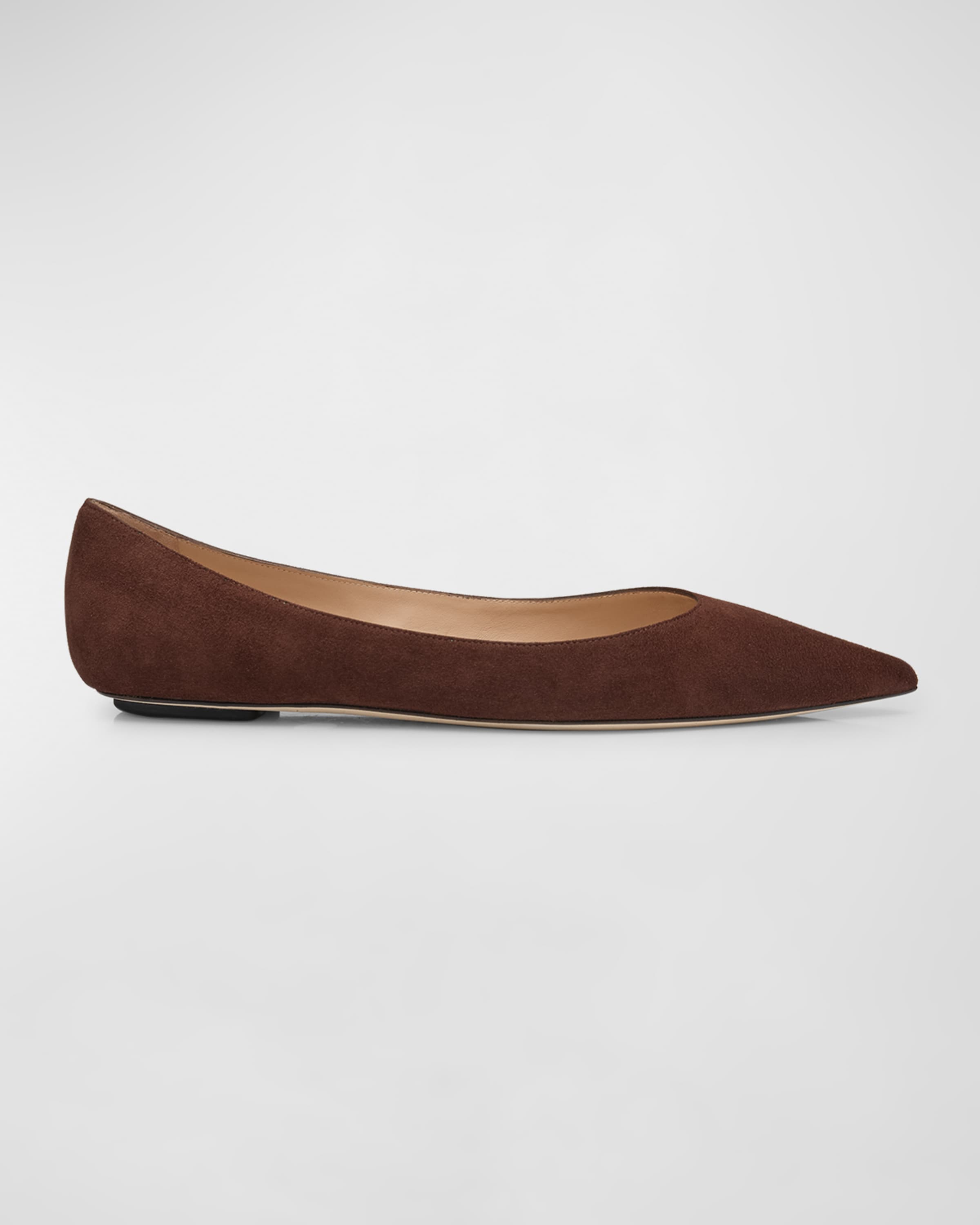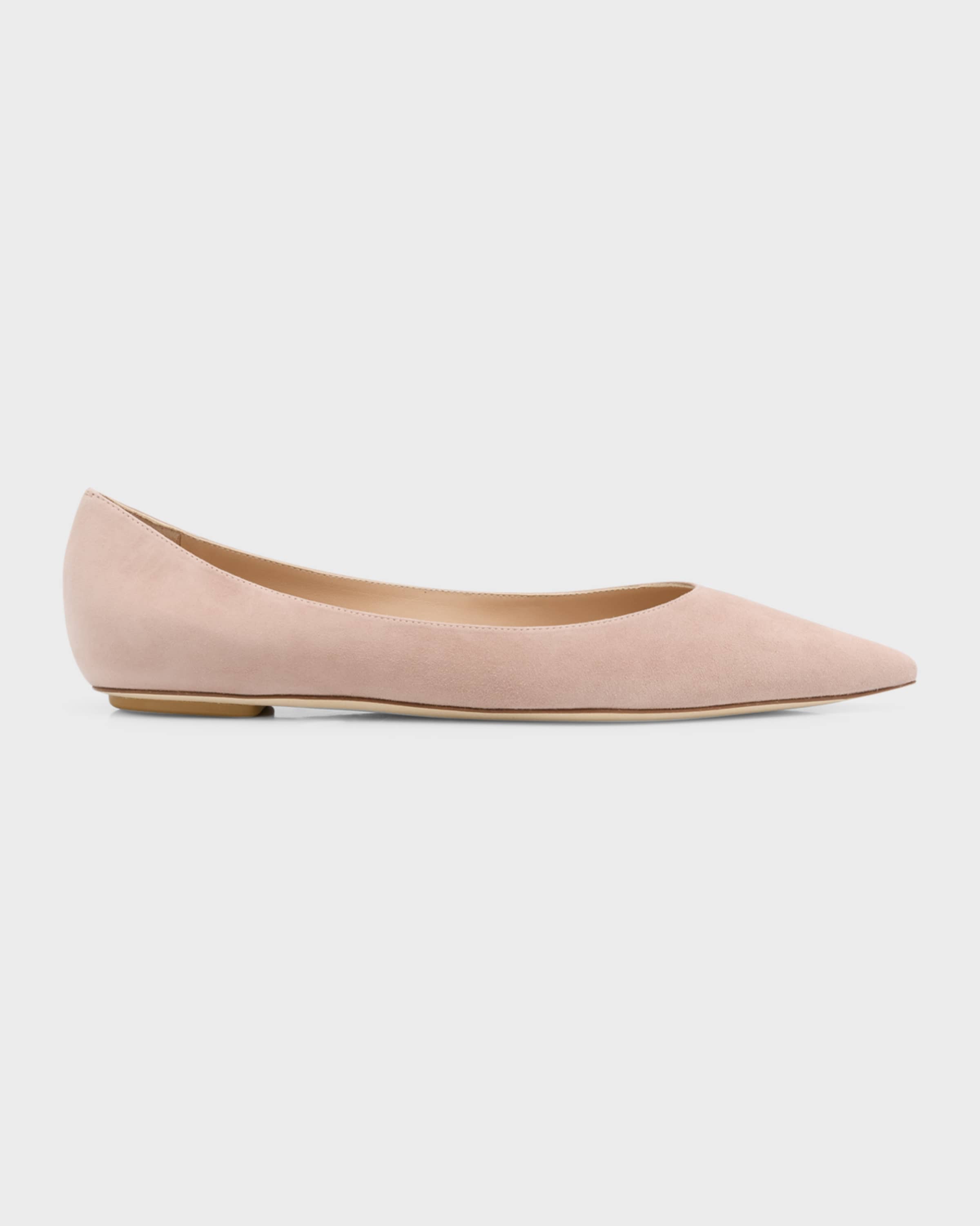 Stuart Weitzman Emilia Suede Point-Toe Ballerina Flats