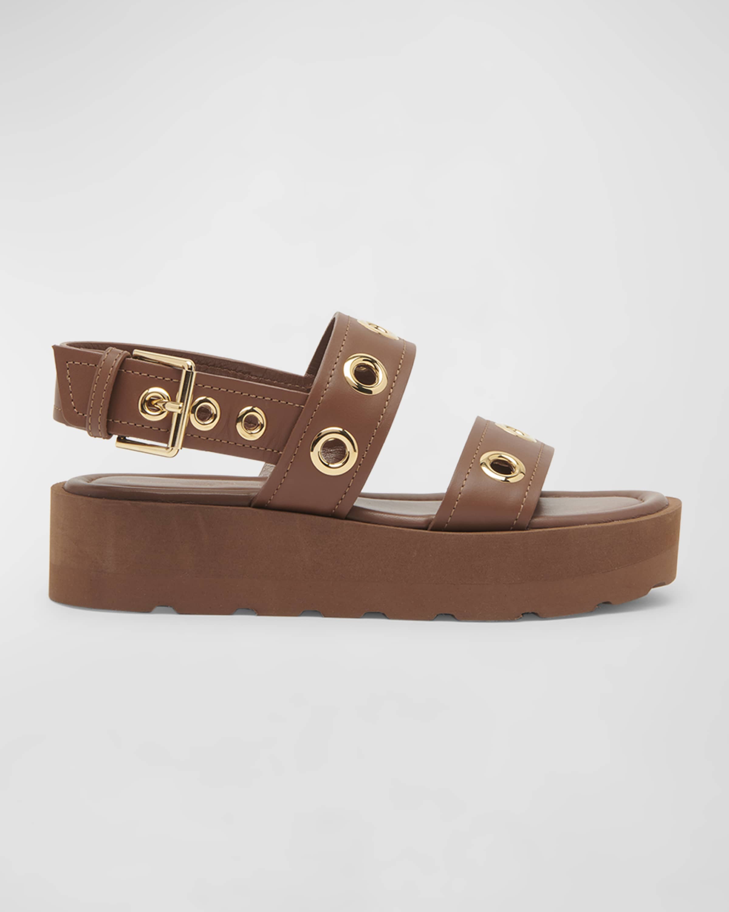 Gianvito Rossi Leather Grommet Slingback Flatform Sandals