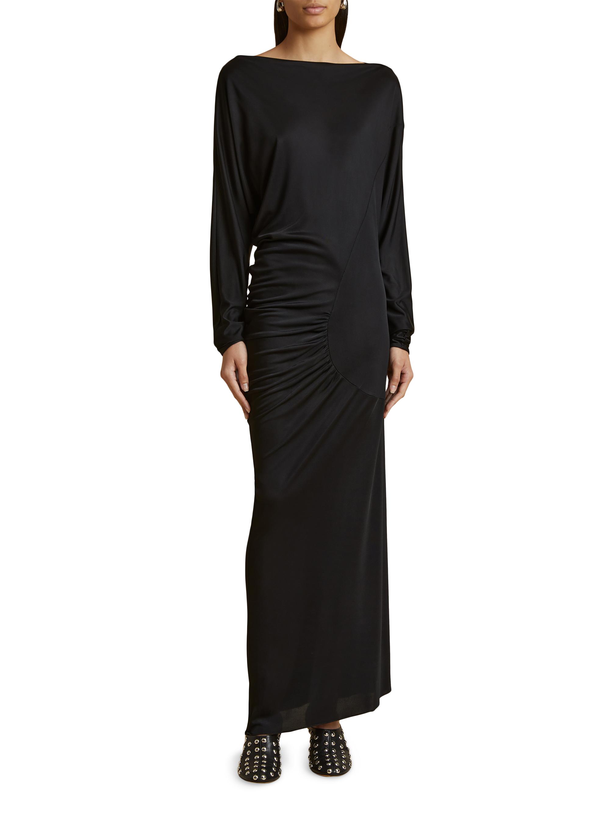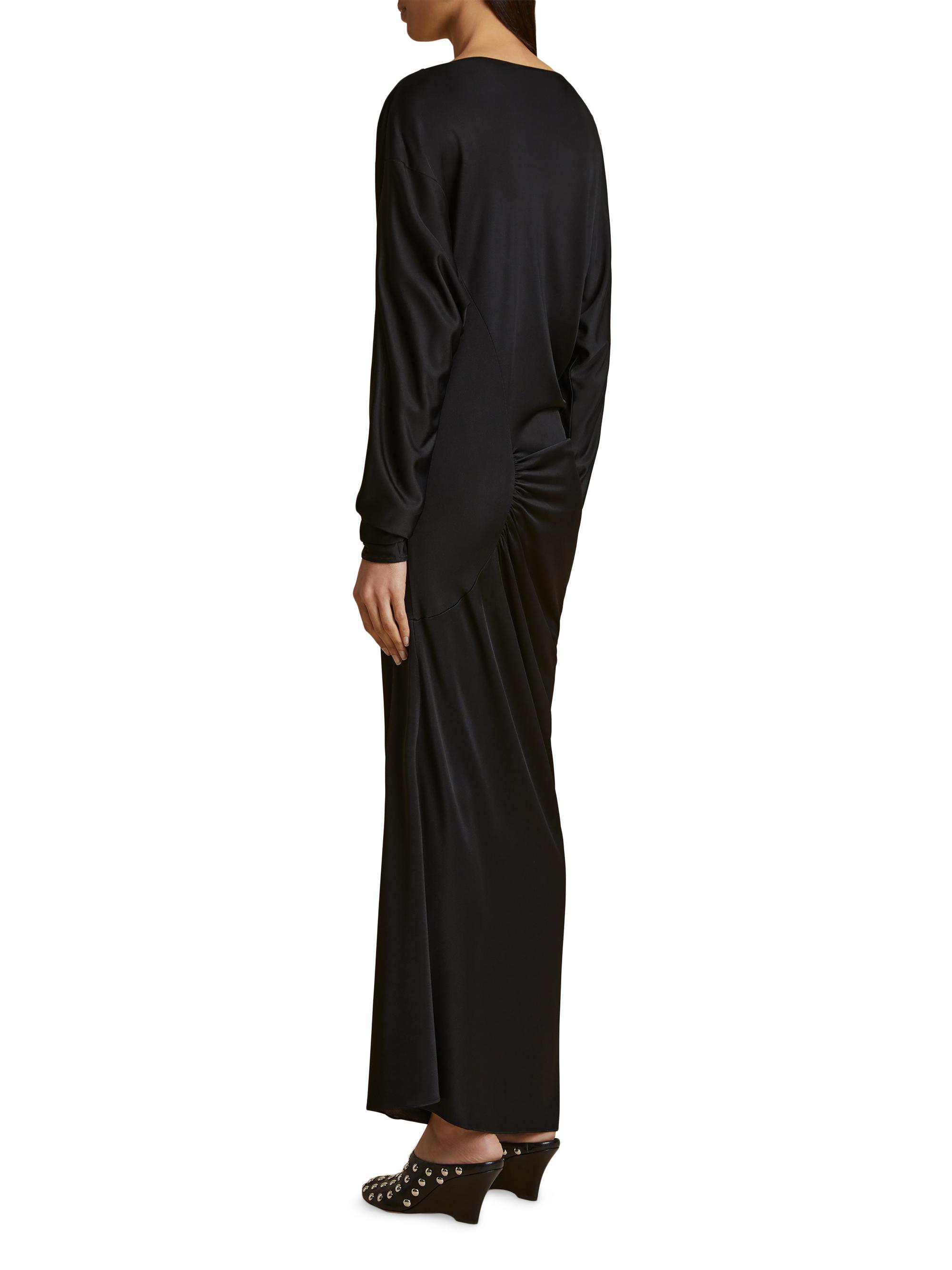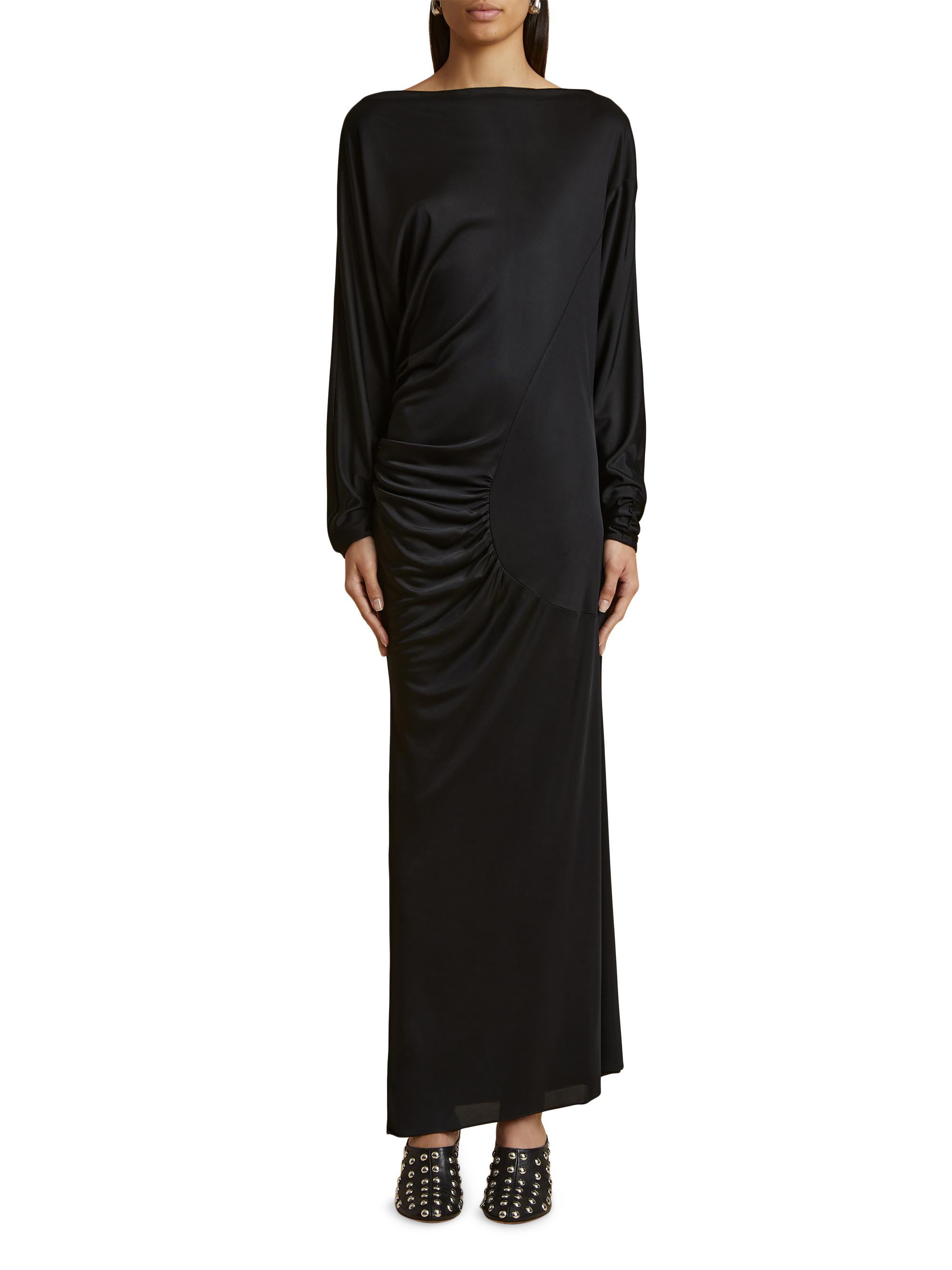 Khaite Oron Gathered Long-Sleeve Dress BLACK