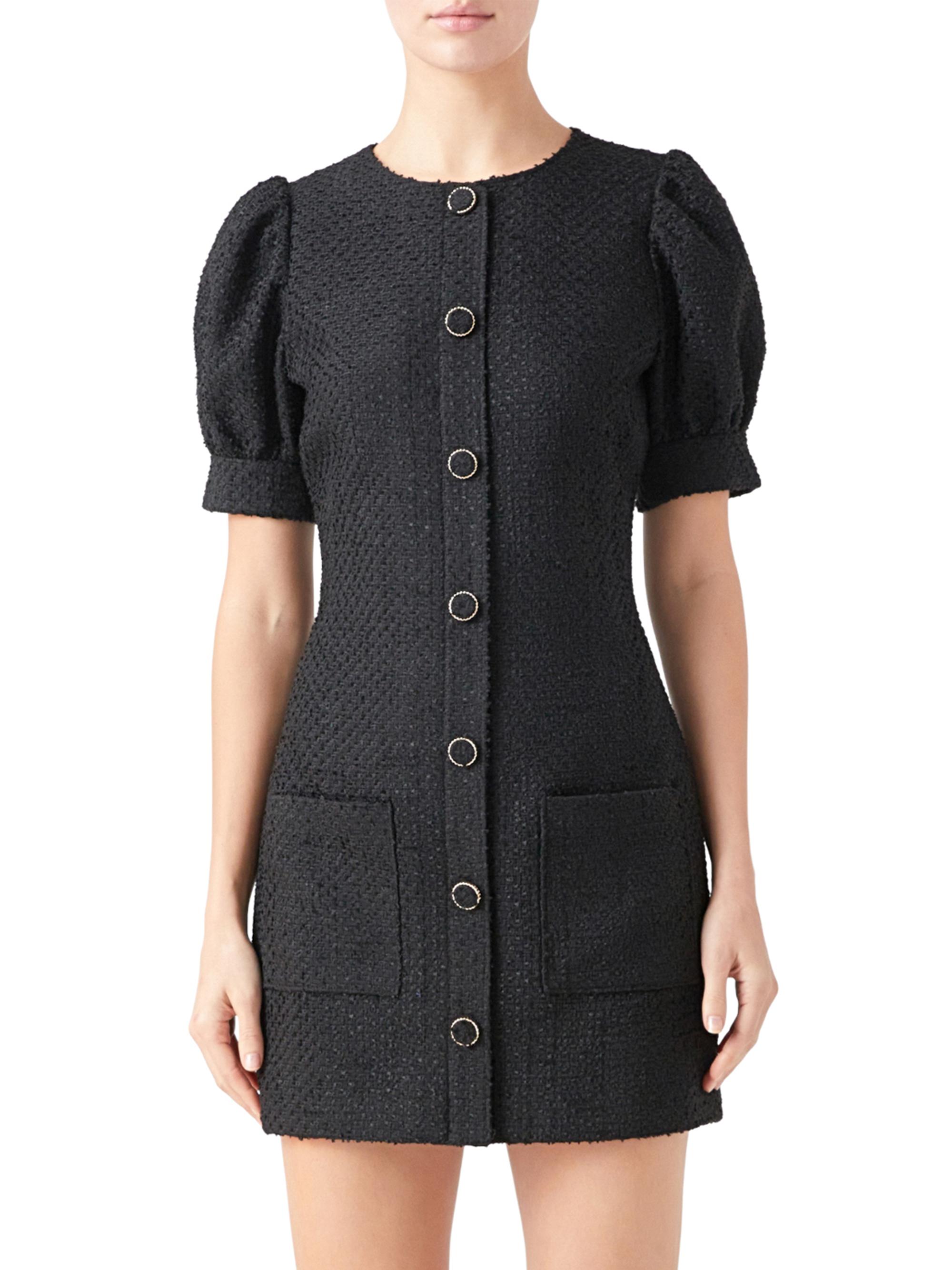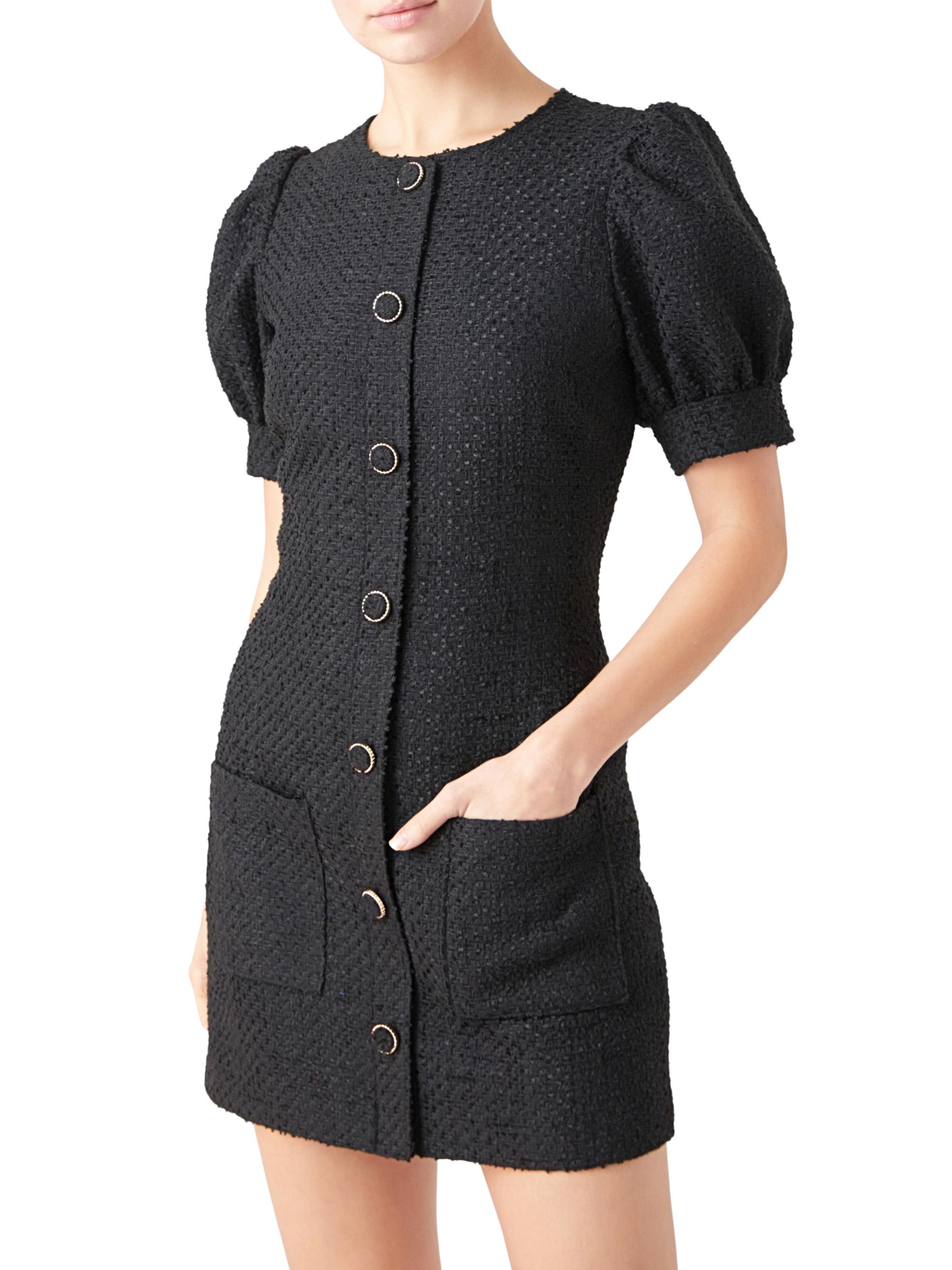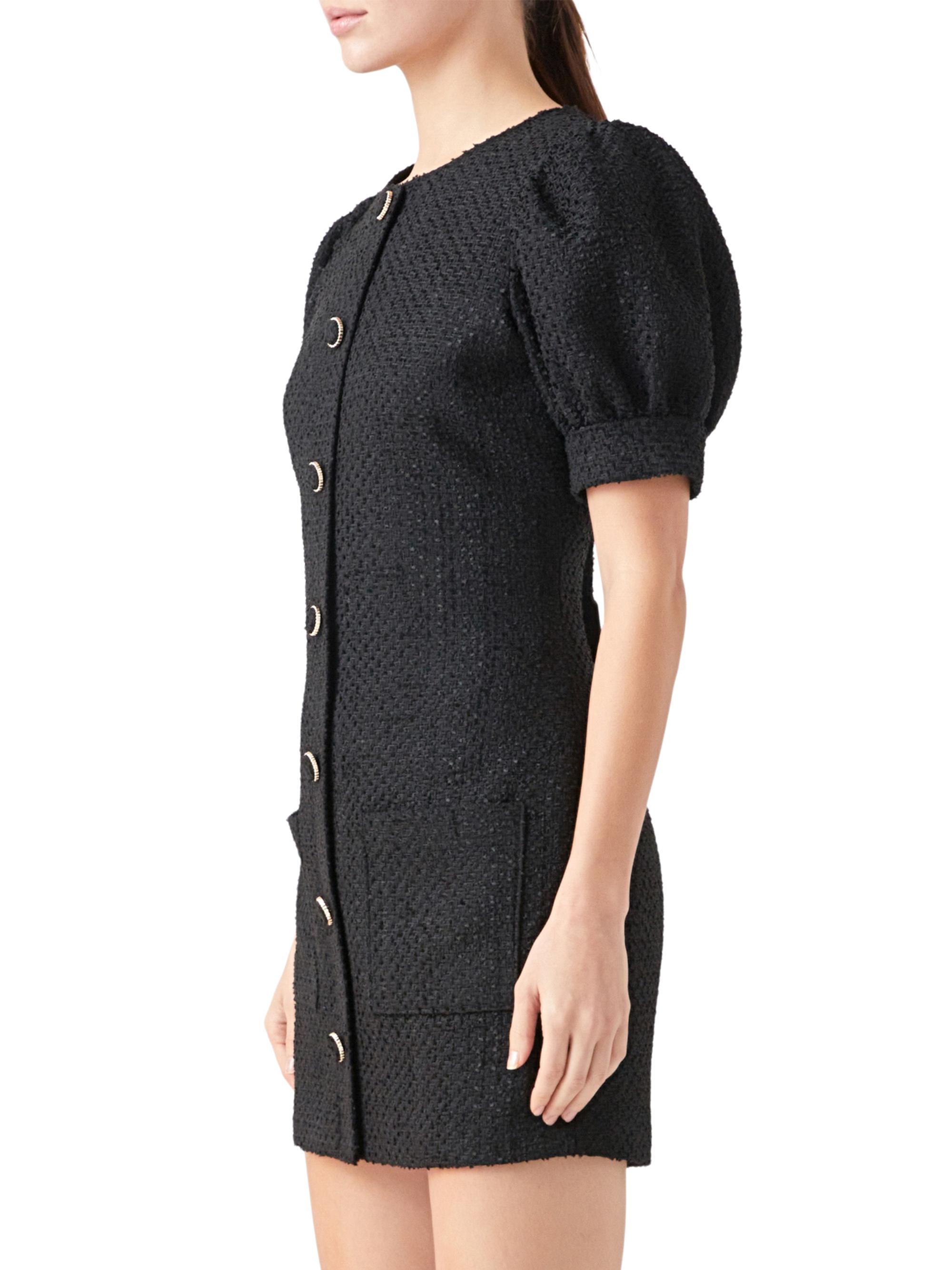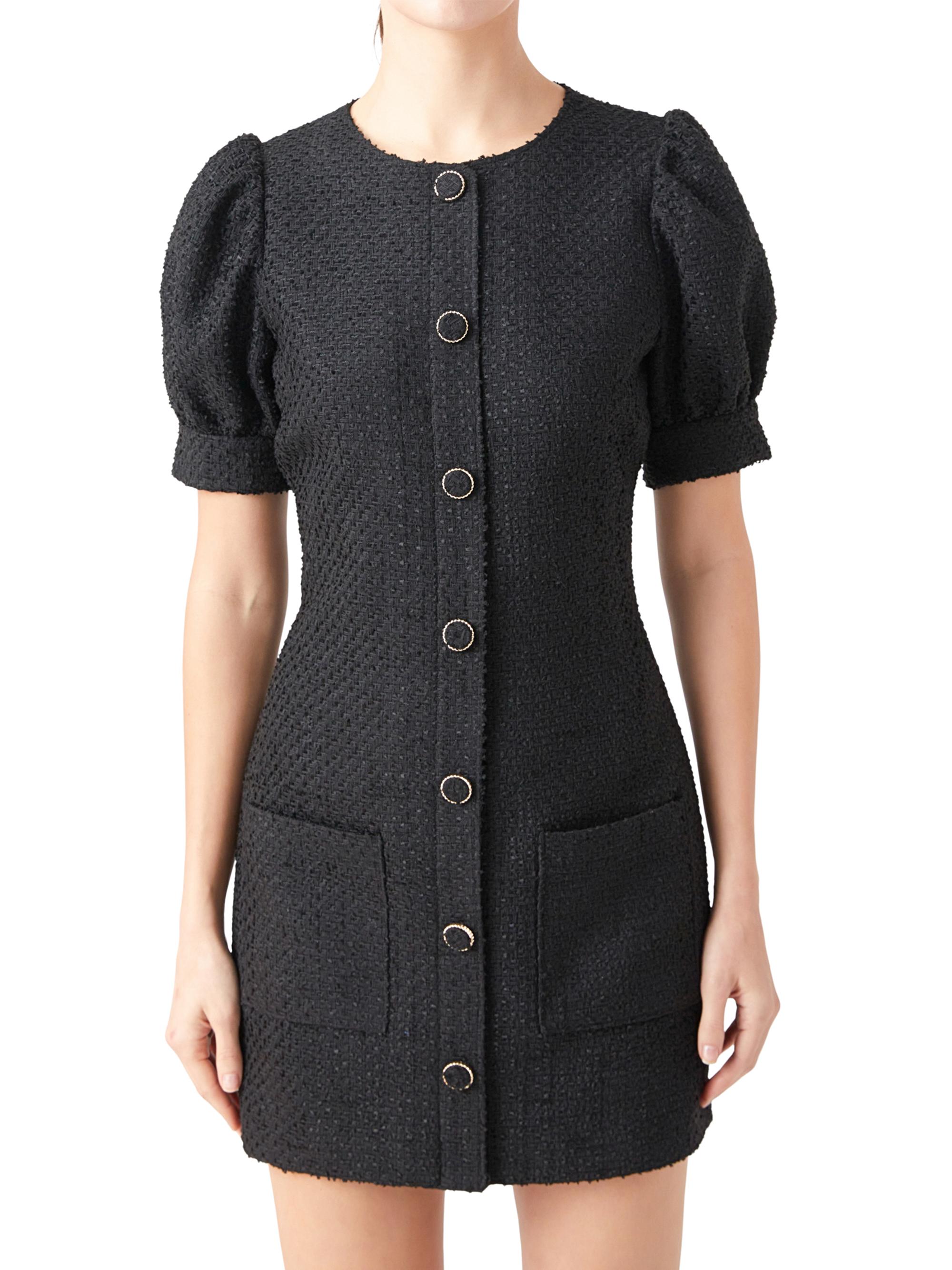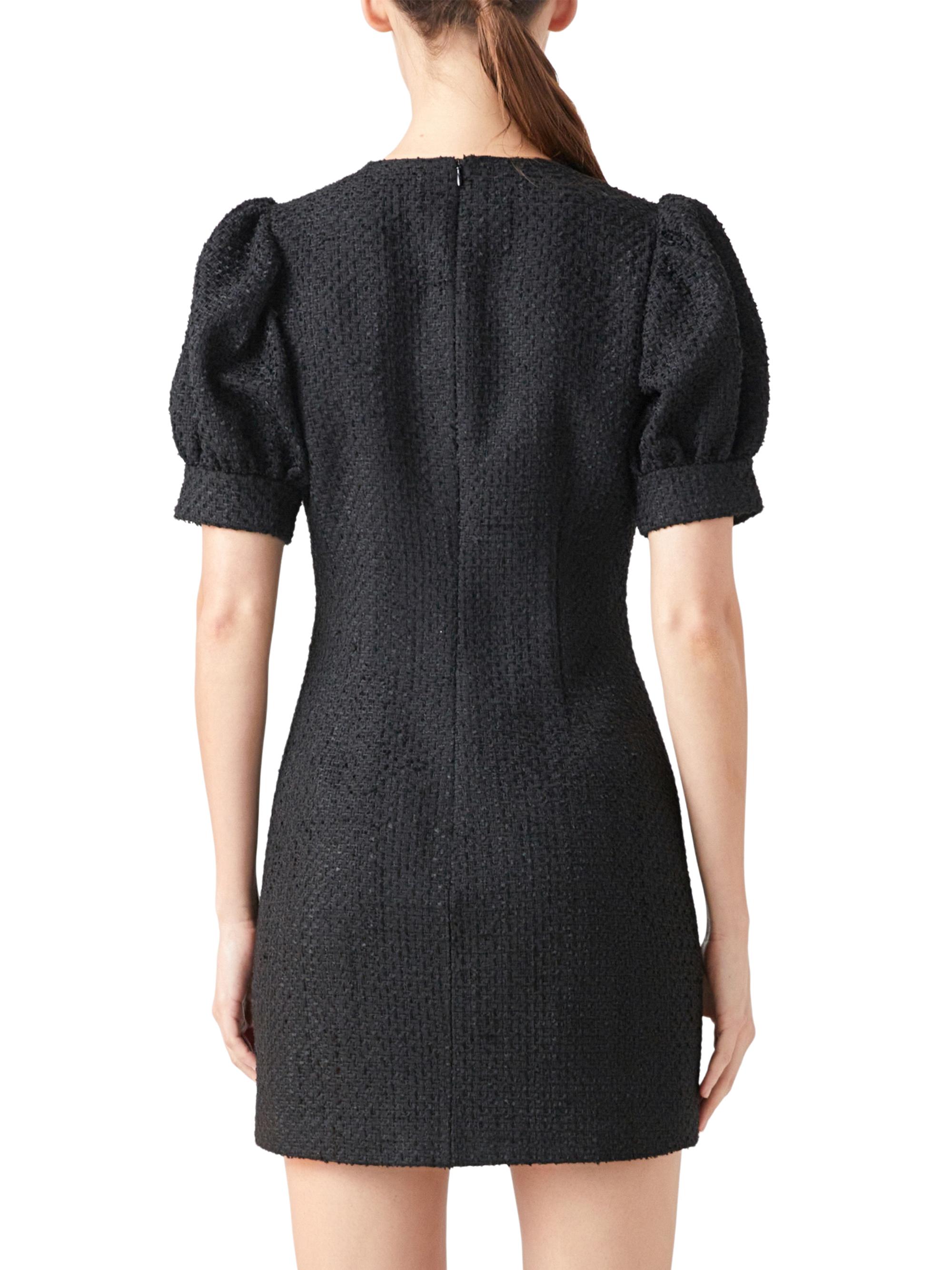 Endless Rose Puff Sleeve Tweed Mini Dress