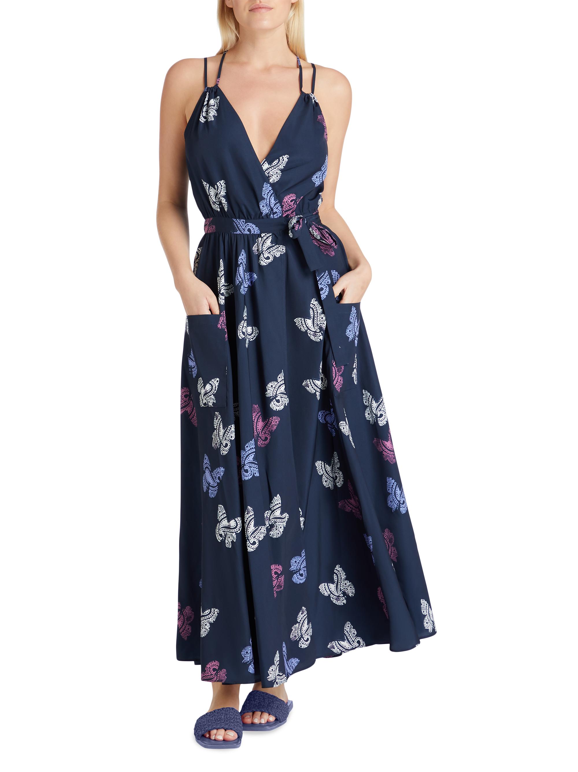 Valimare Amelia Paisley Butterfly Surplice Maxi Dress NAVY