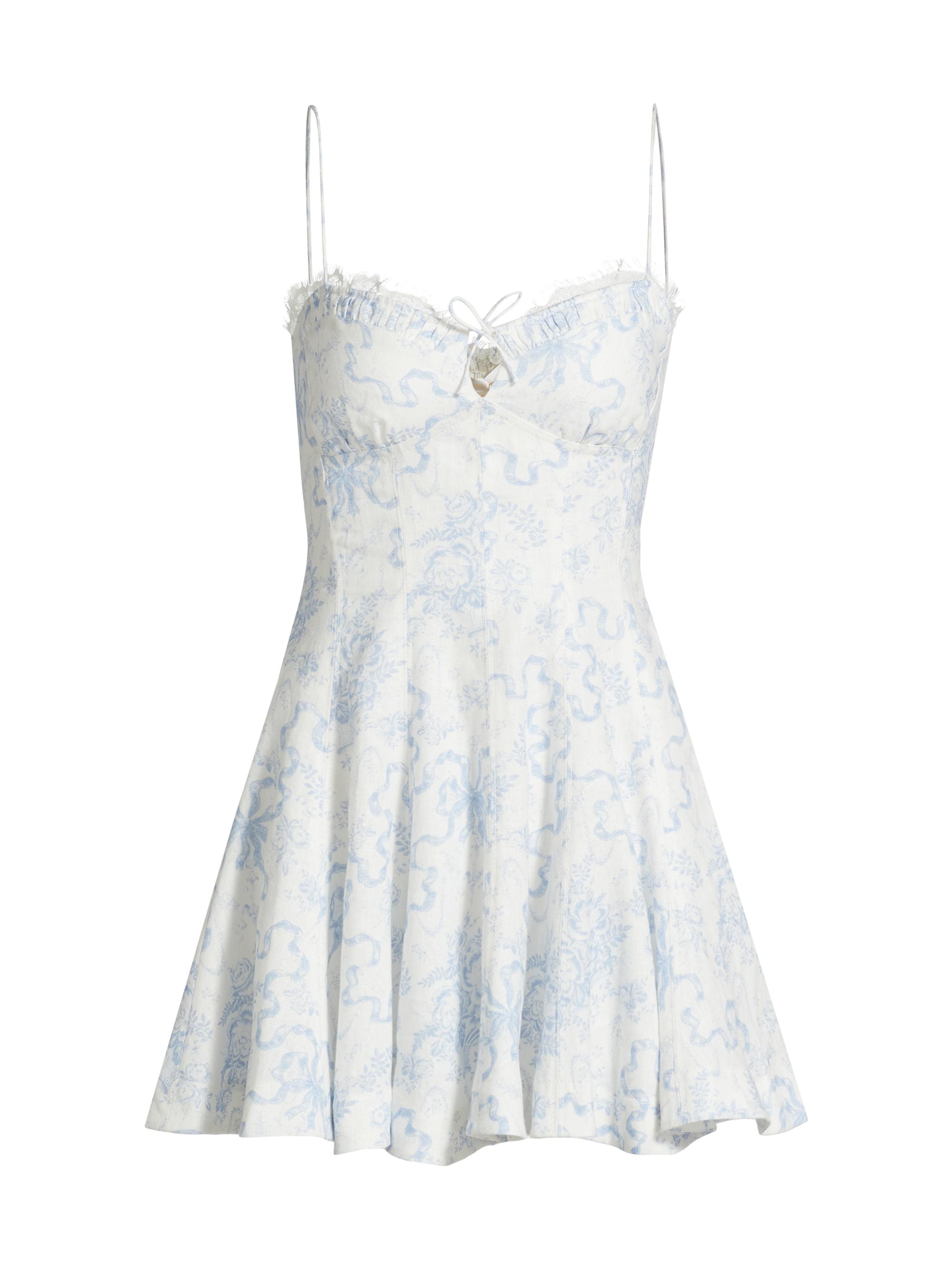 LoveShackFancy Fairytale Toile Linen Keyhole Minidress