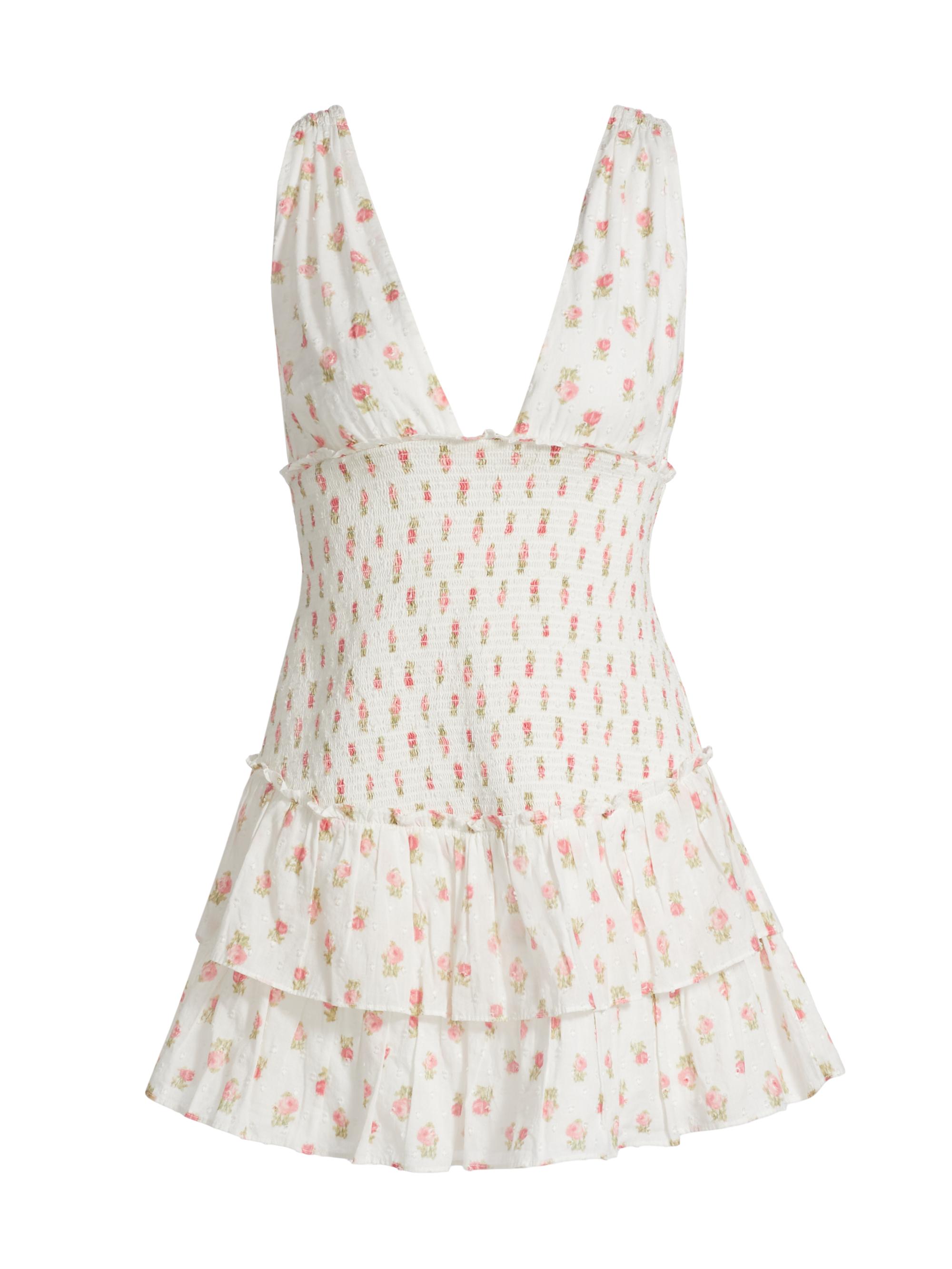 LoveShackFancy Rossi Floral Smocked Cotton Minidress