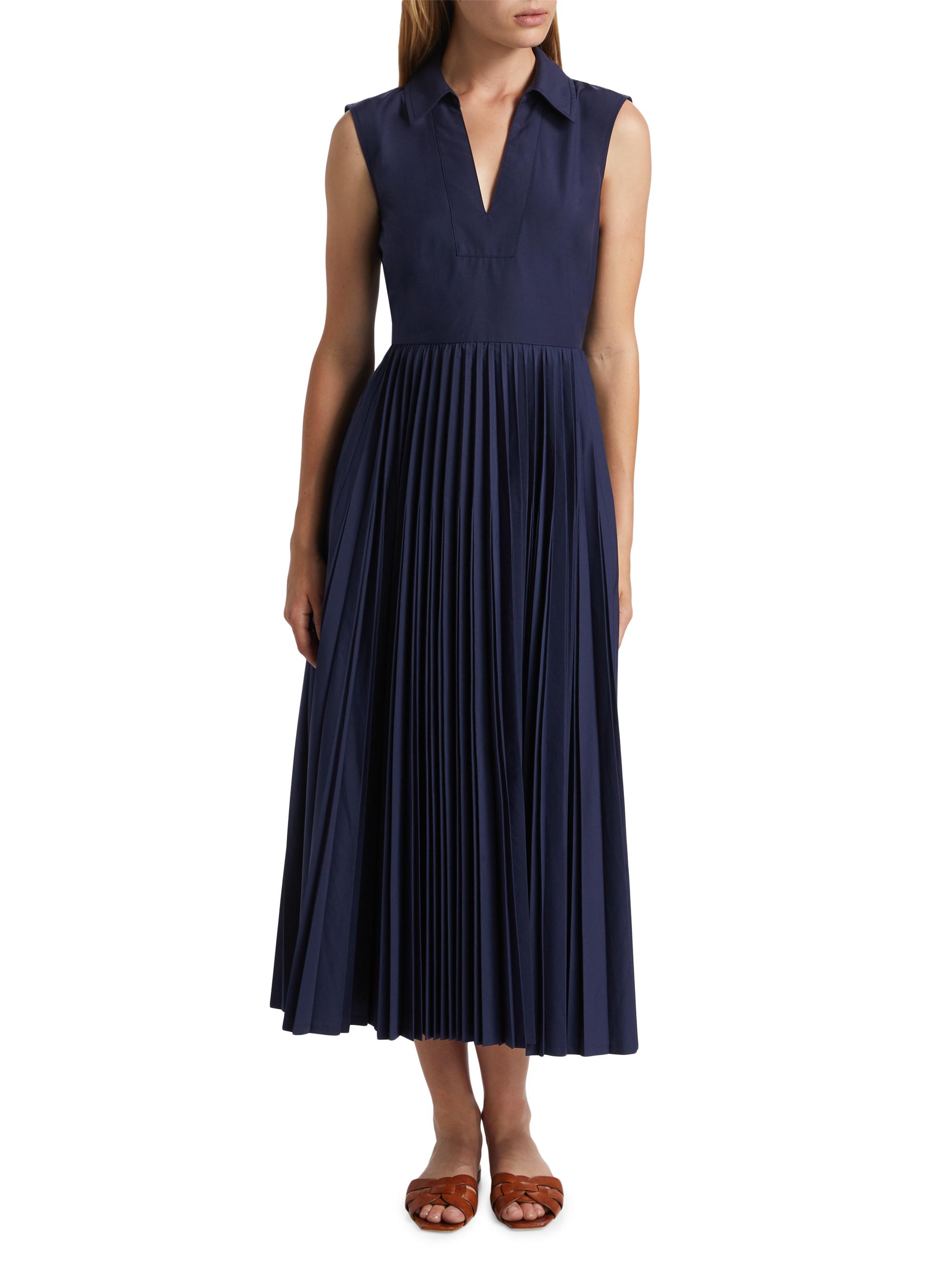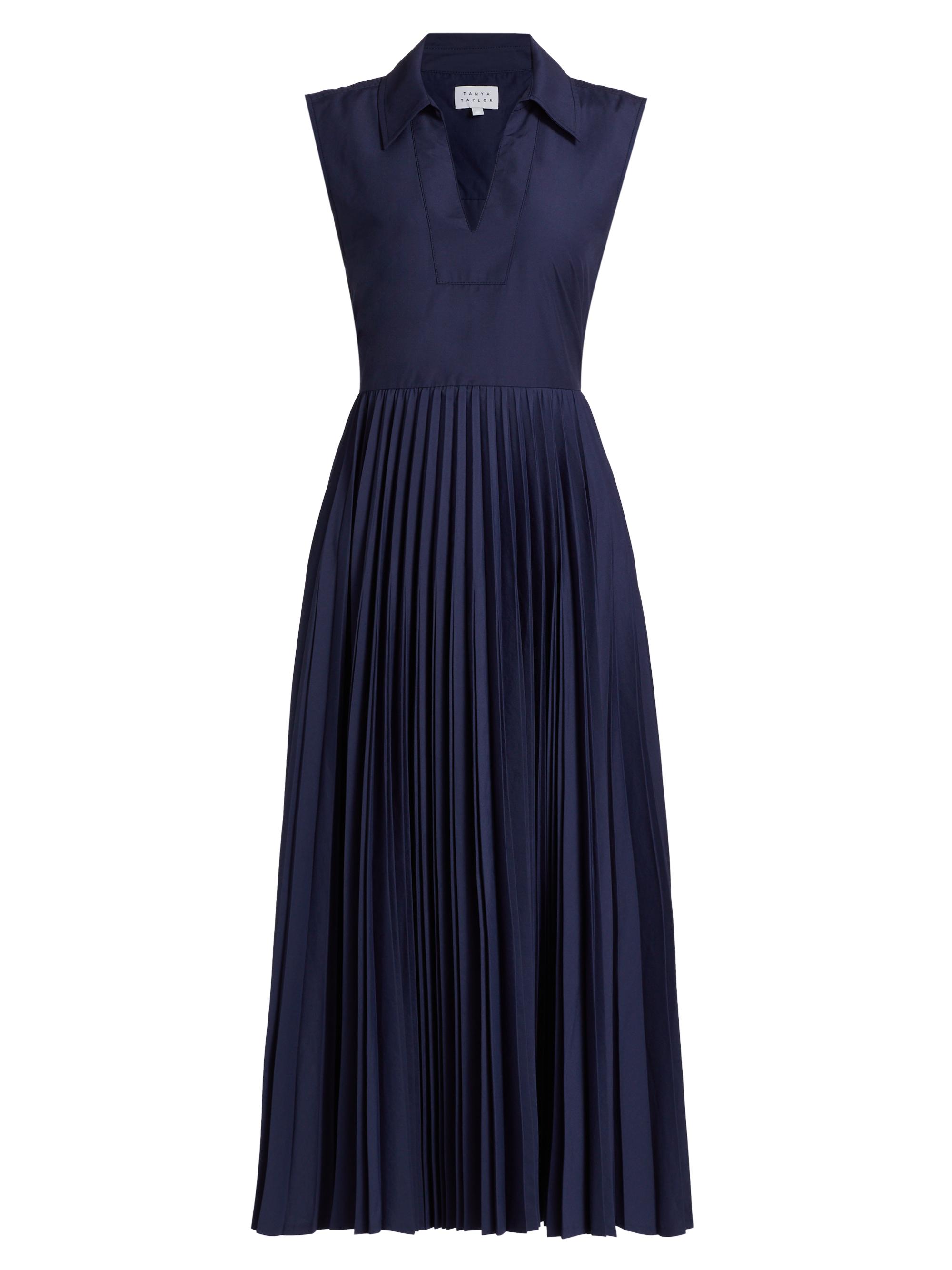 Tanya Taylor Carissa Poplin Fit & Flare Dress MARITIME BLUE