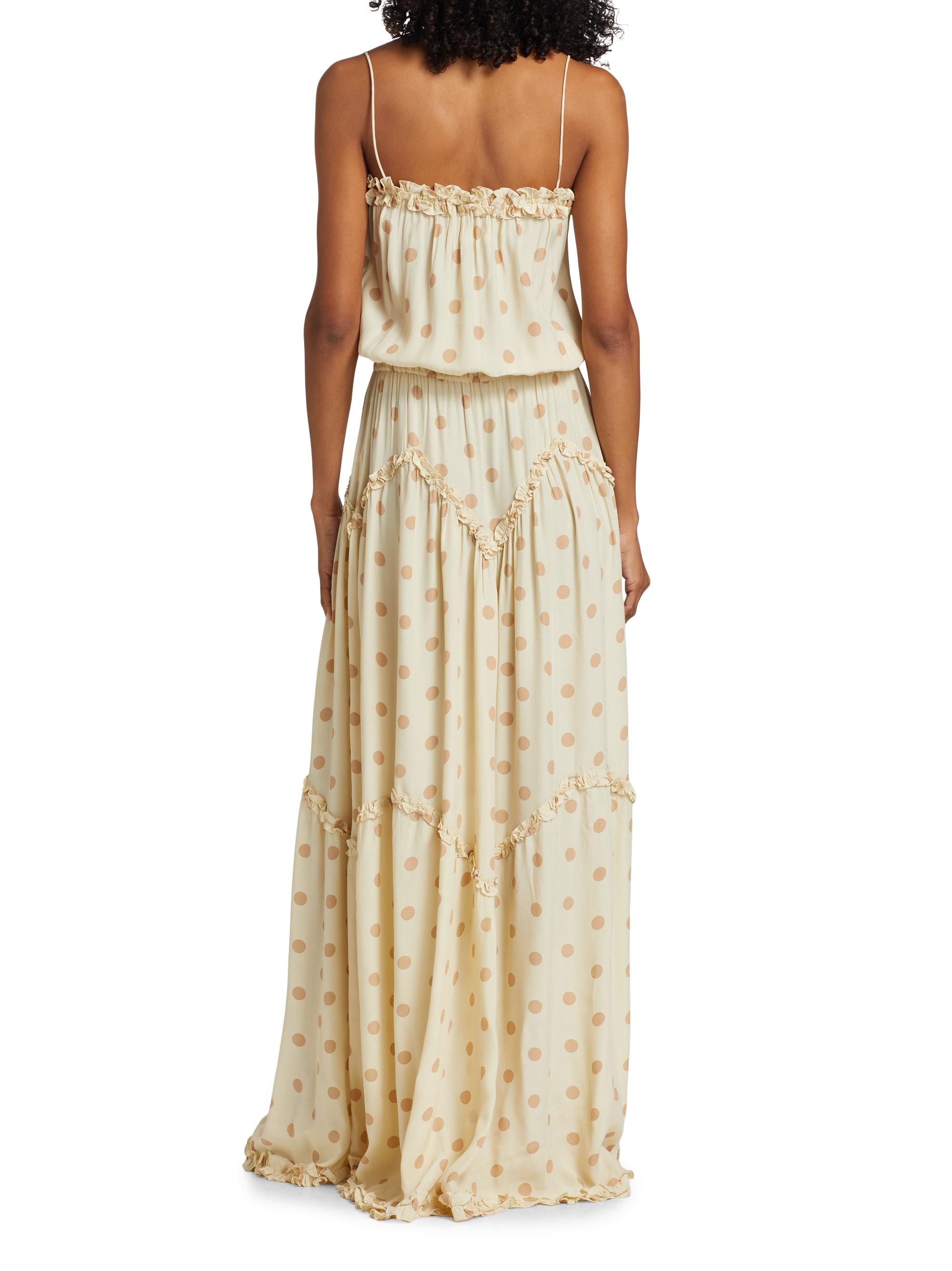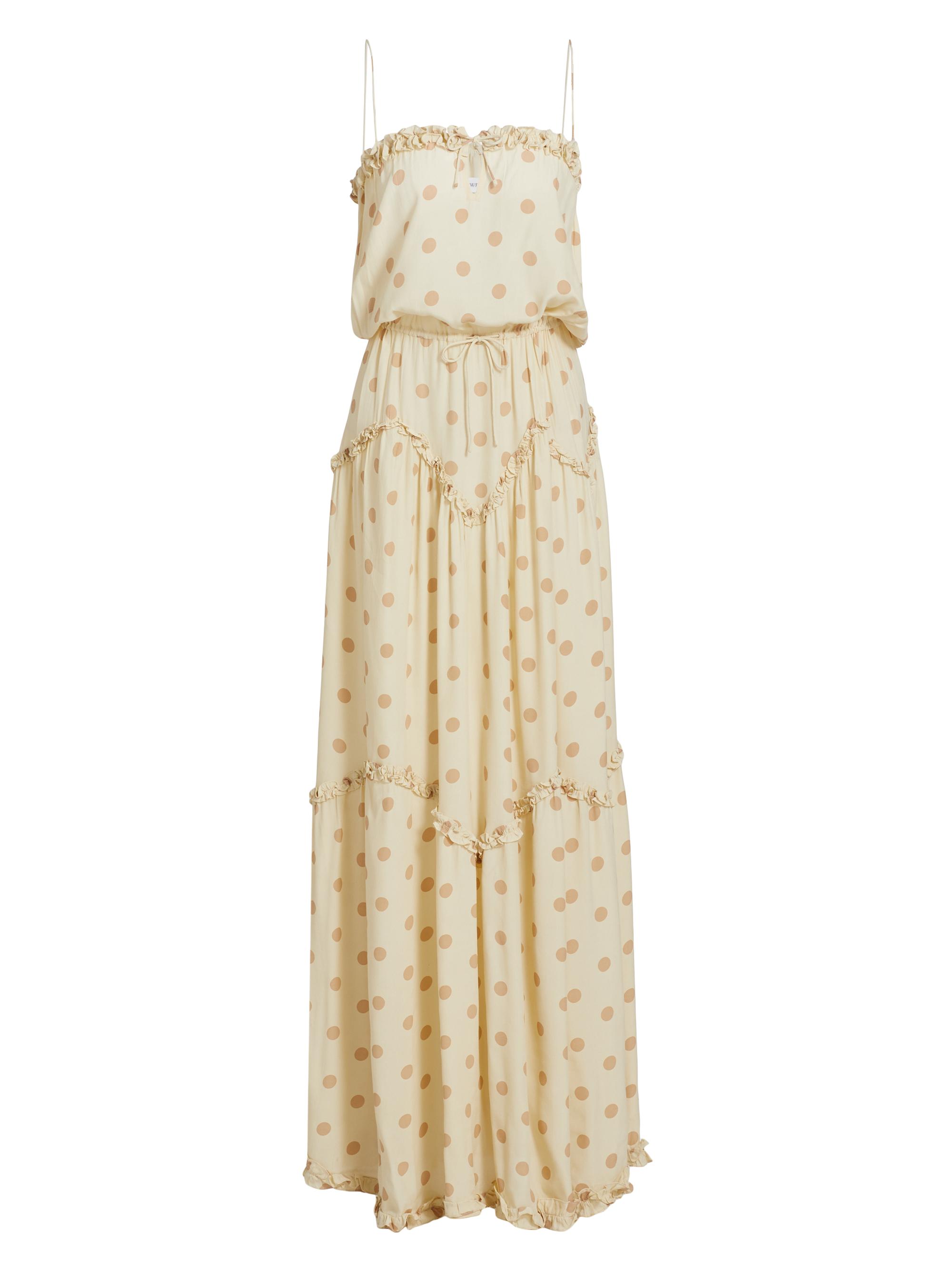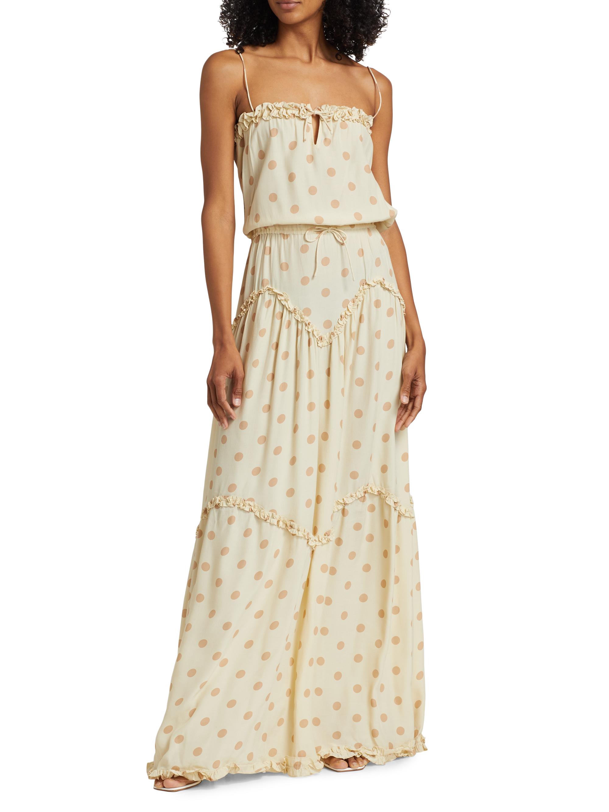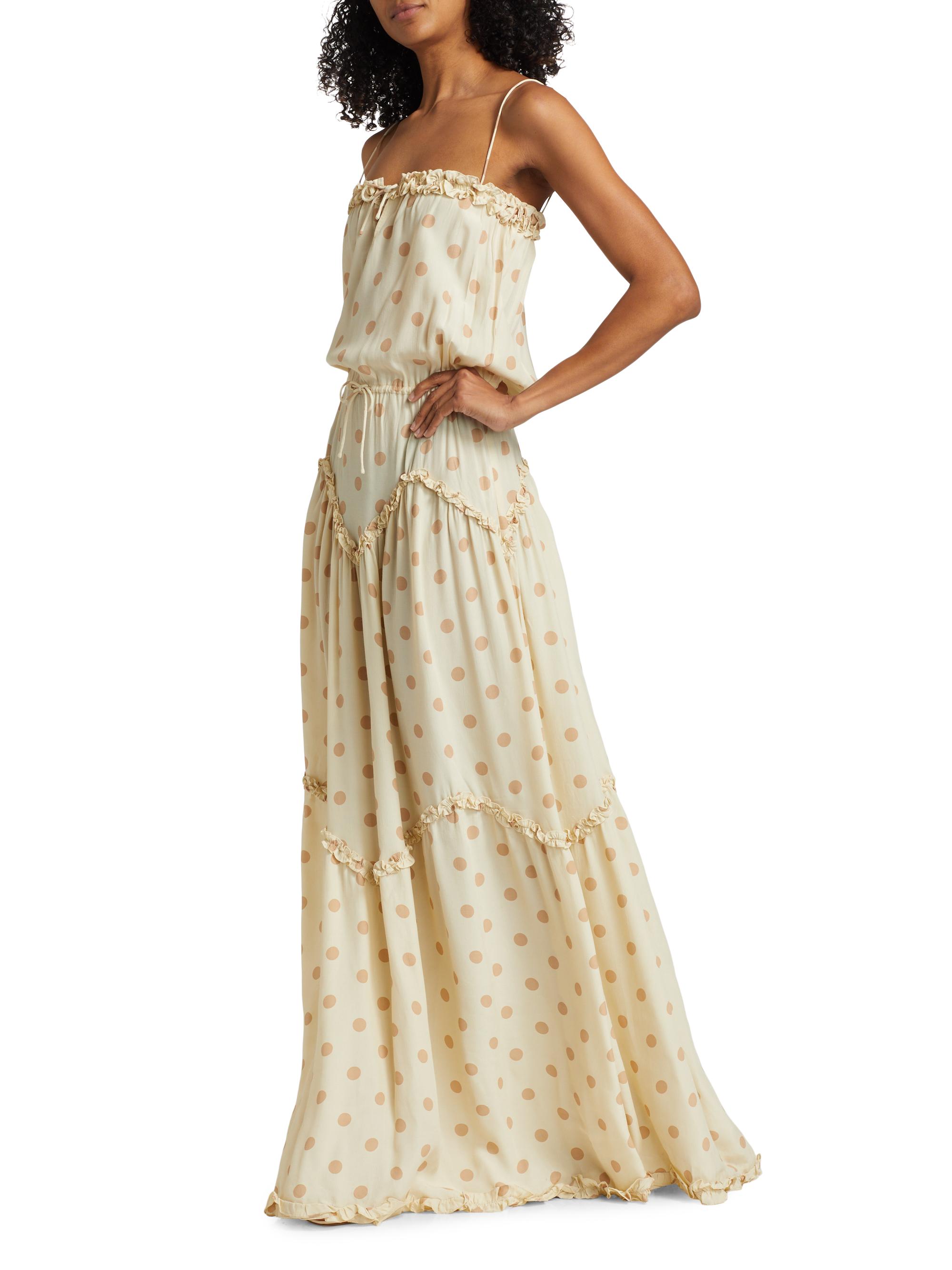 SWF Dynamic Polka-Dot Tiered Maxi Dress
