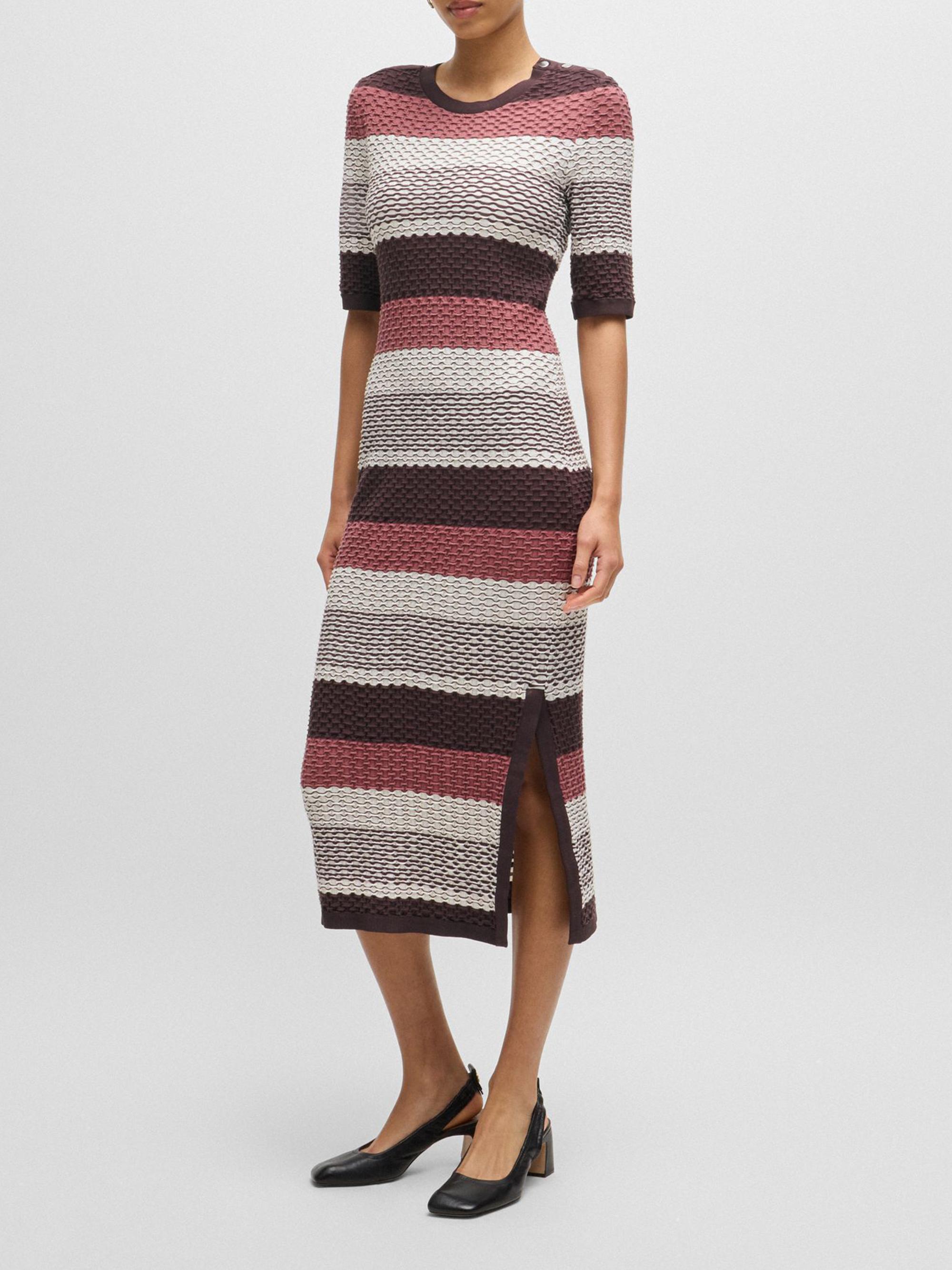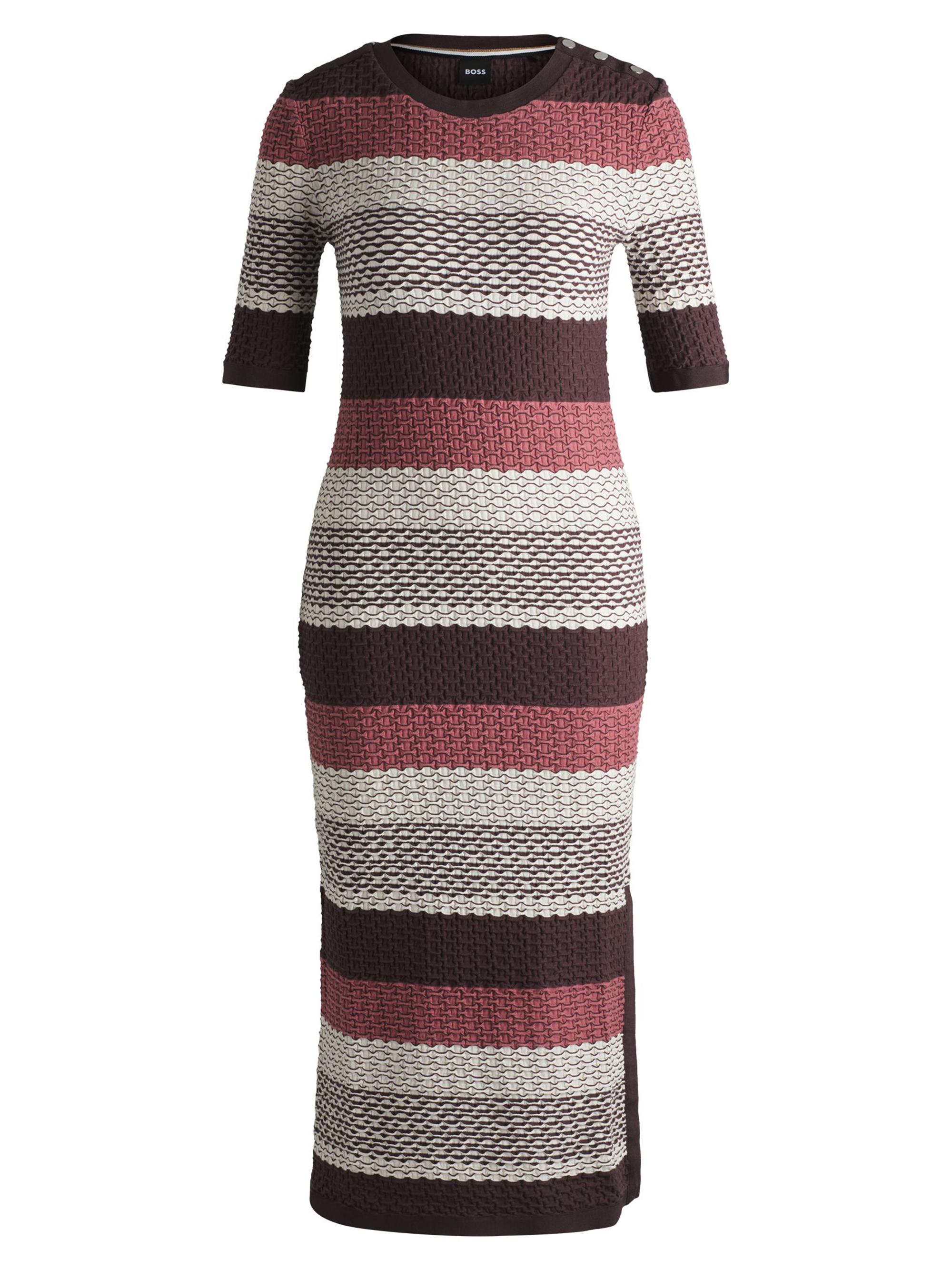 BOSS Structured-Stripe Dress in Stretch-Cotton Jersey