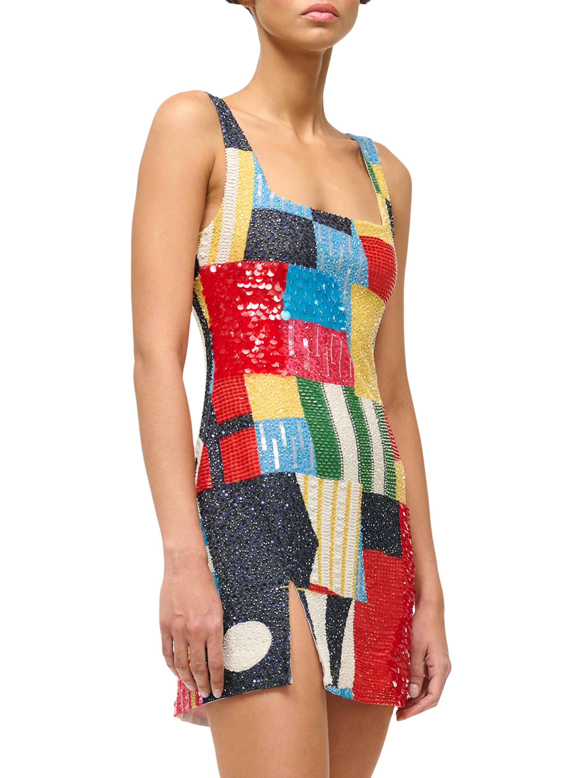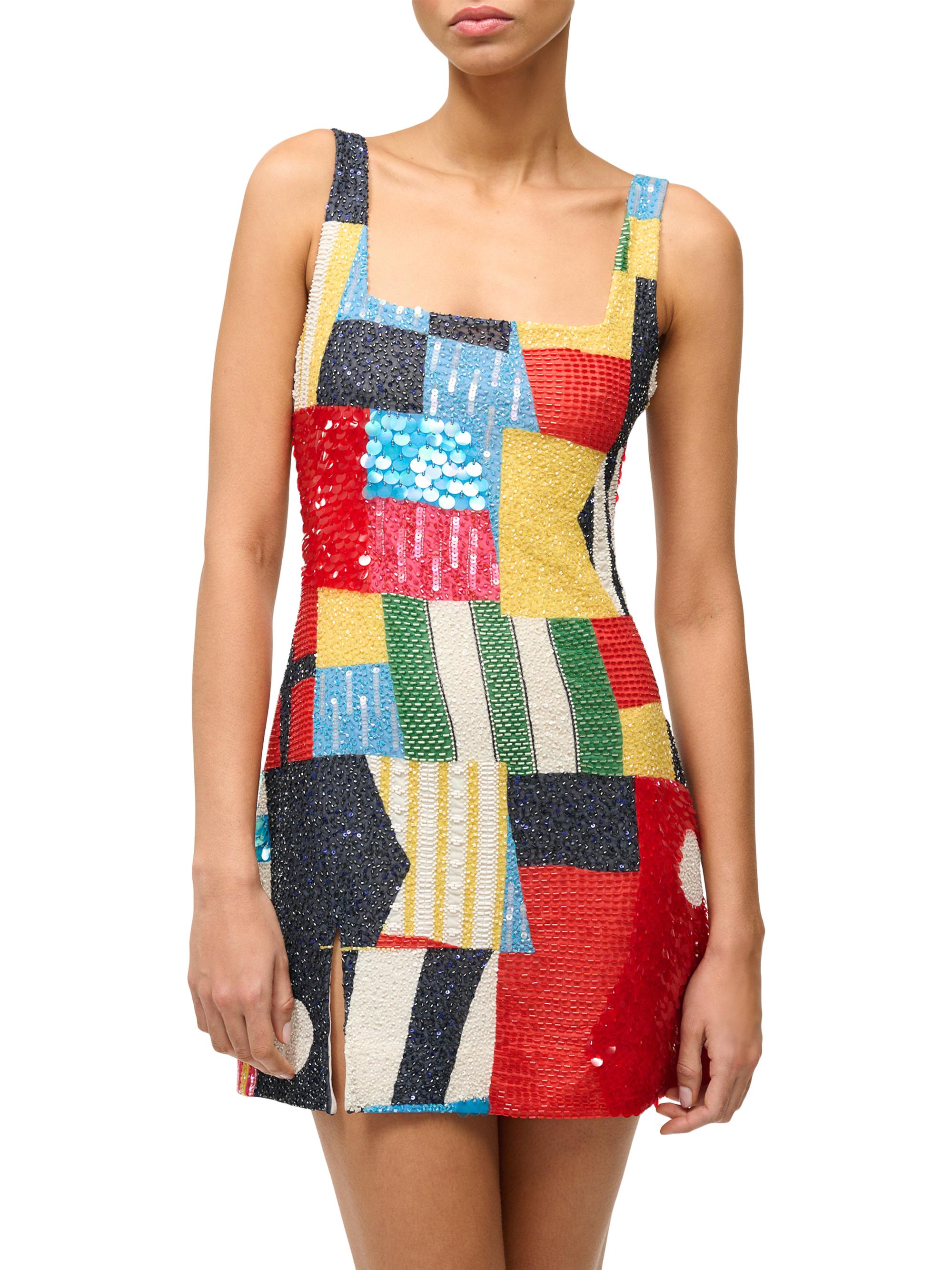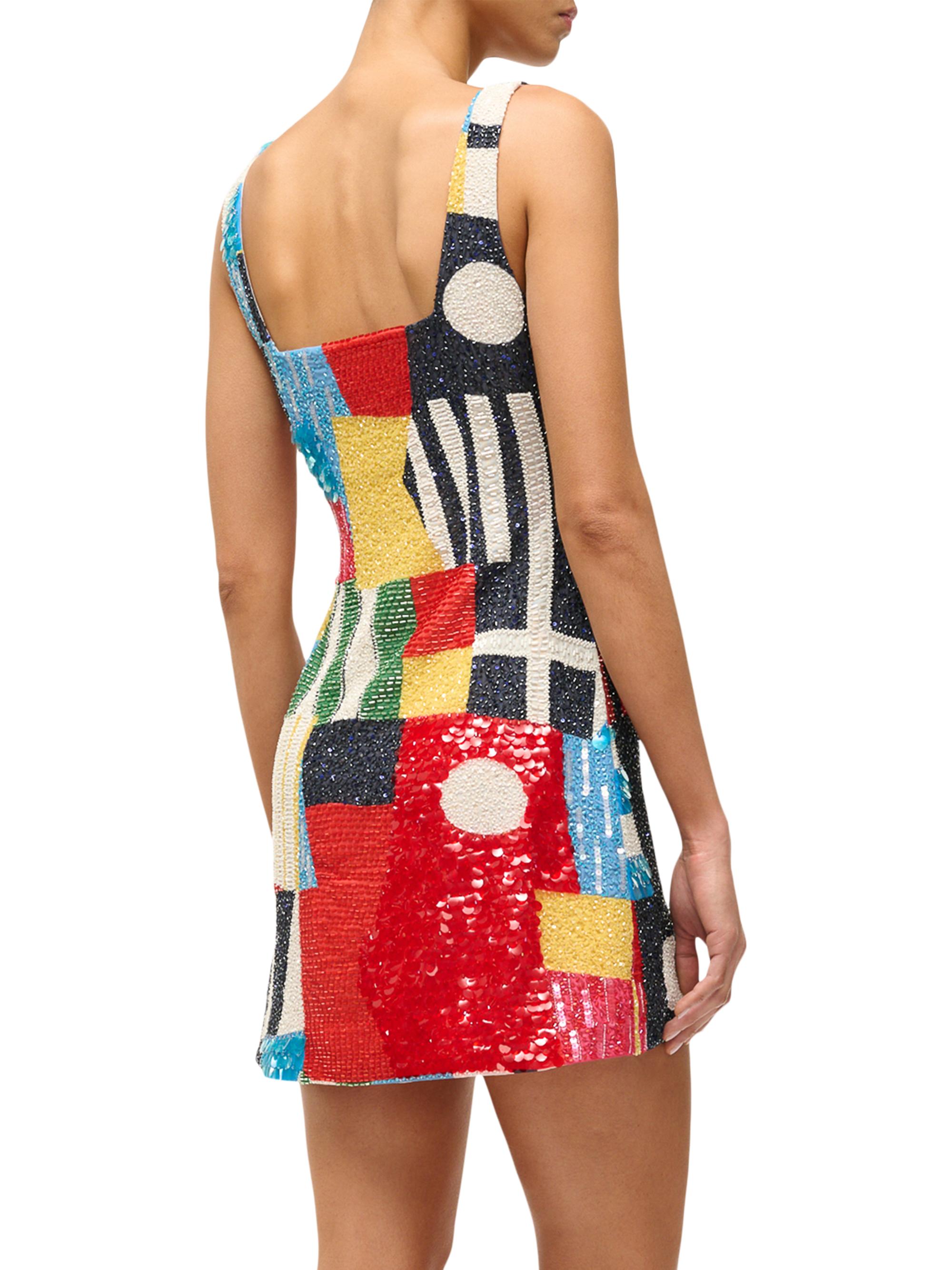 Staud Le Sable Embellished Patchwork Minidress