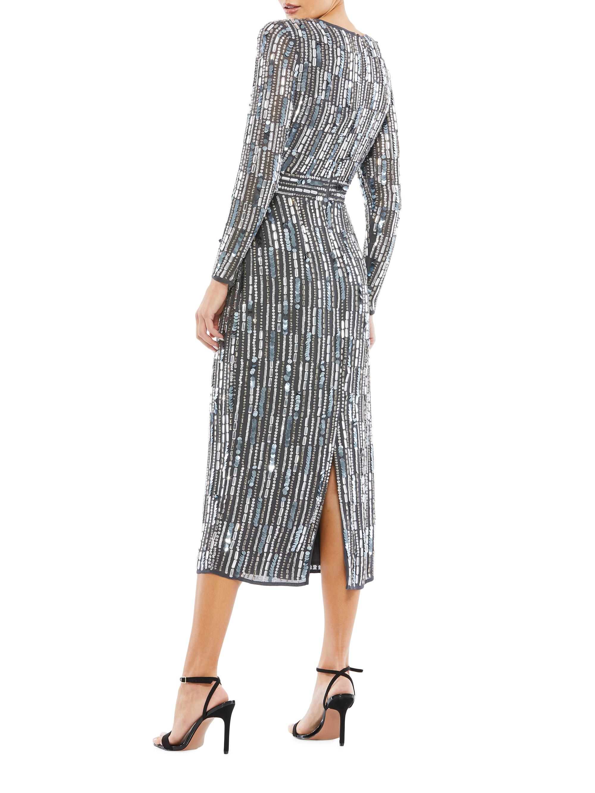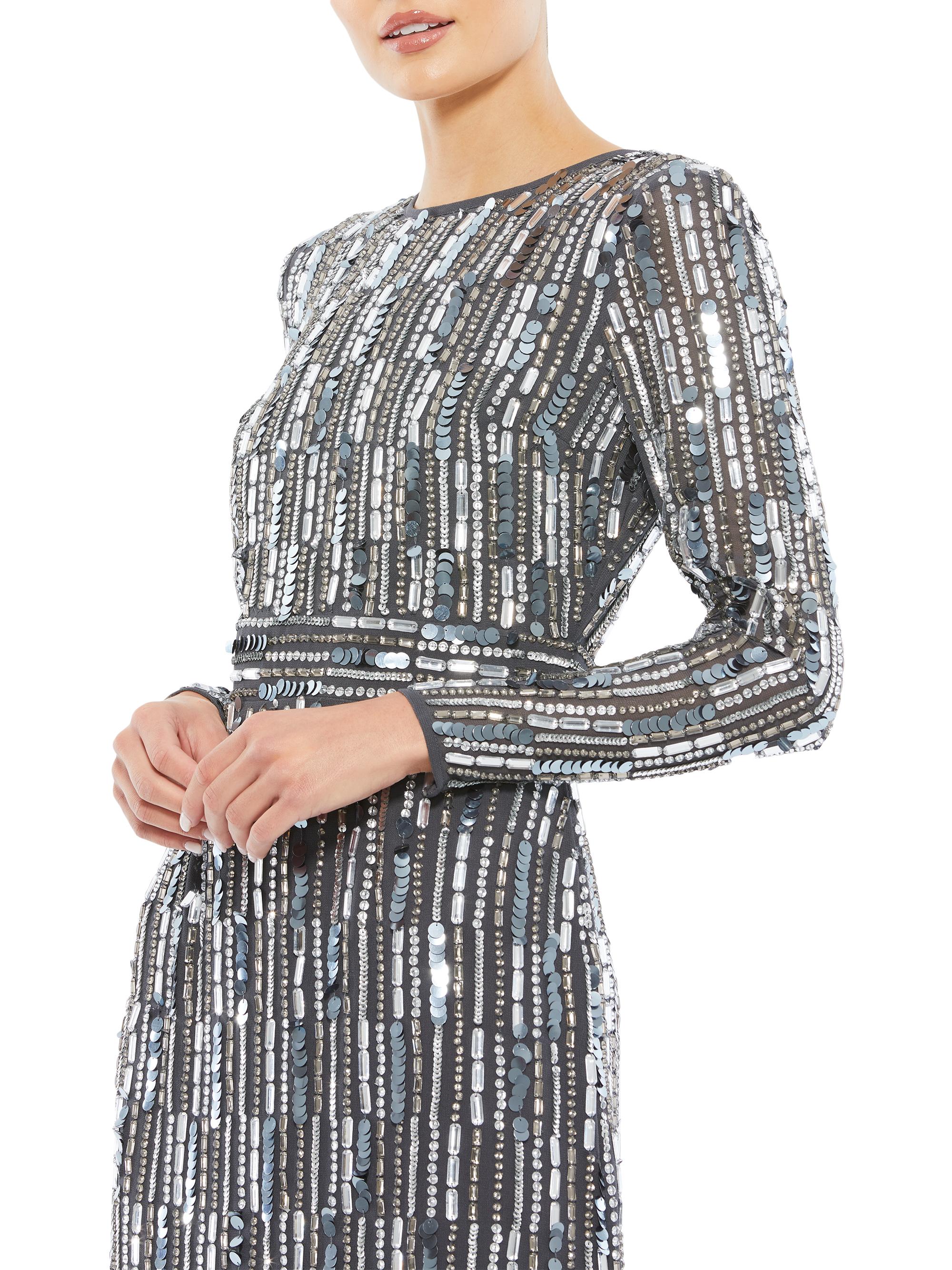 Mac Duggal Long-Sleeve Embellished Midi-Dress CHARCOAL