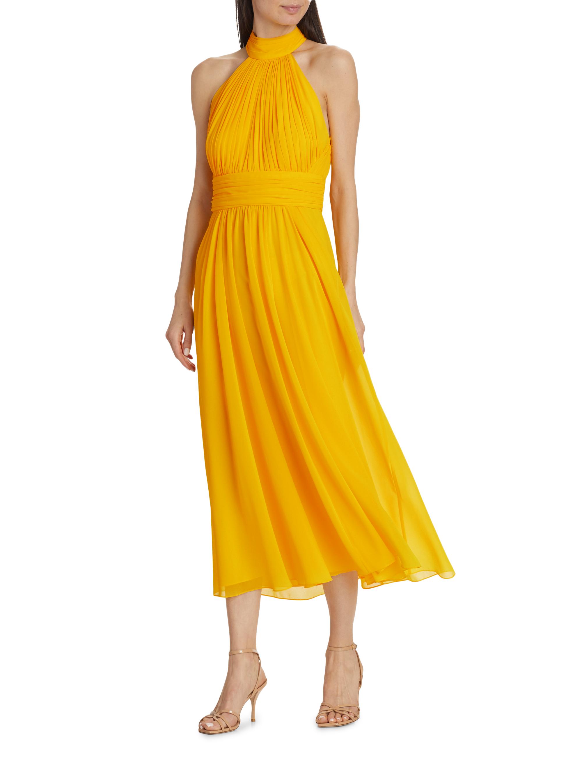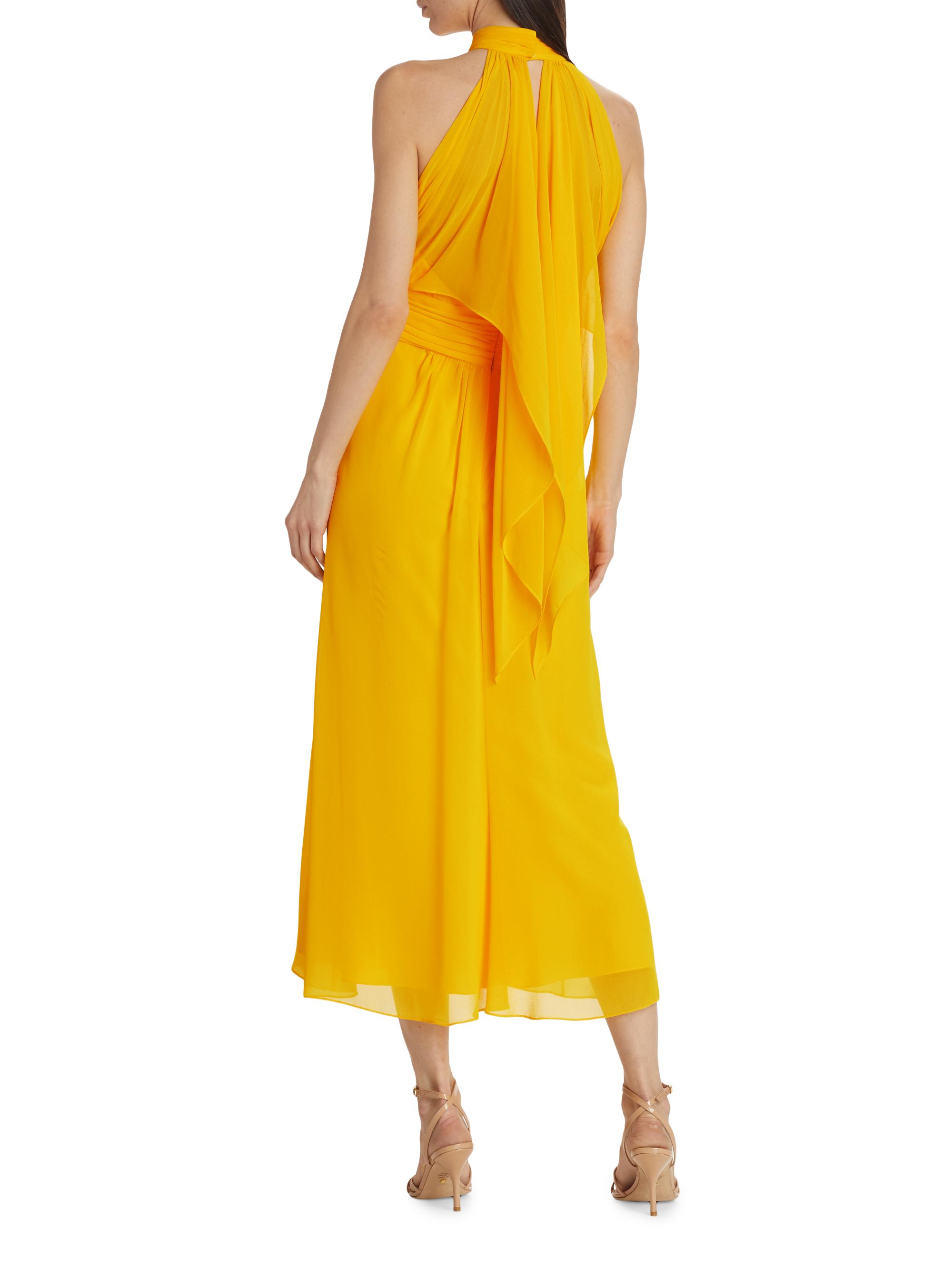 Badgley Mischka Sleeveless Halter Midi-Dress