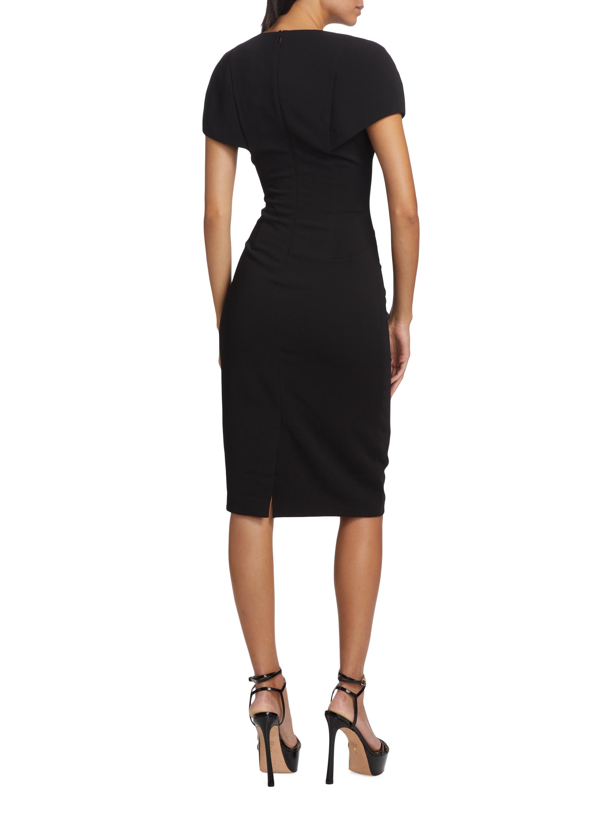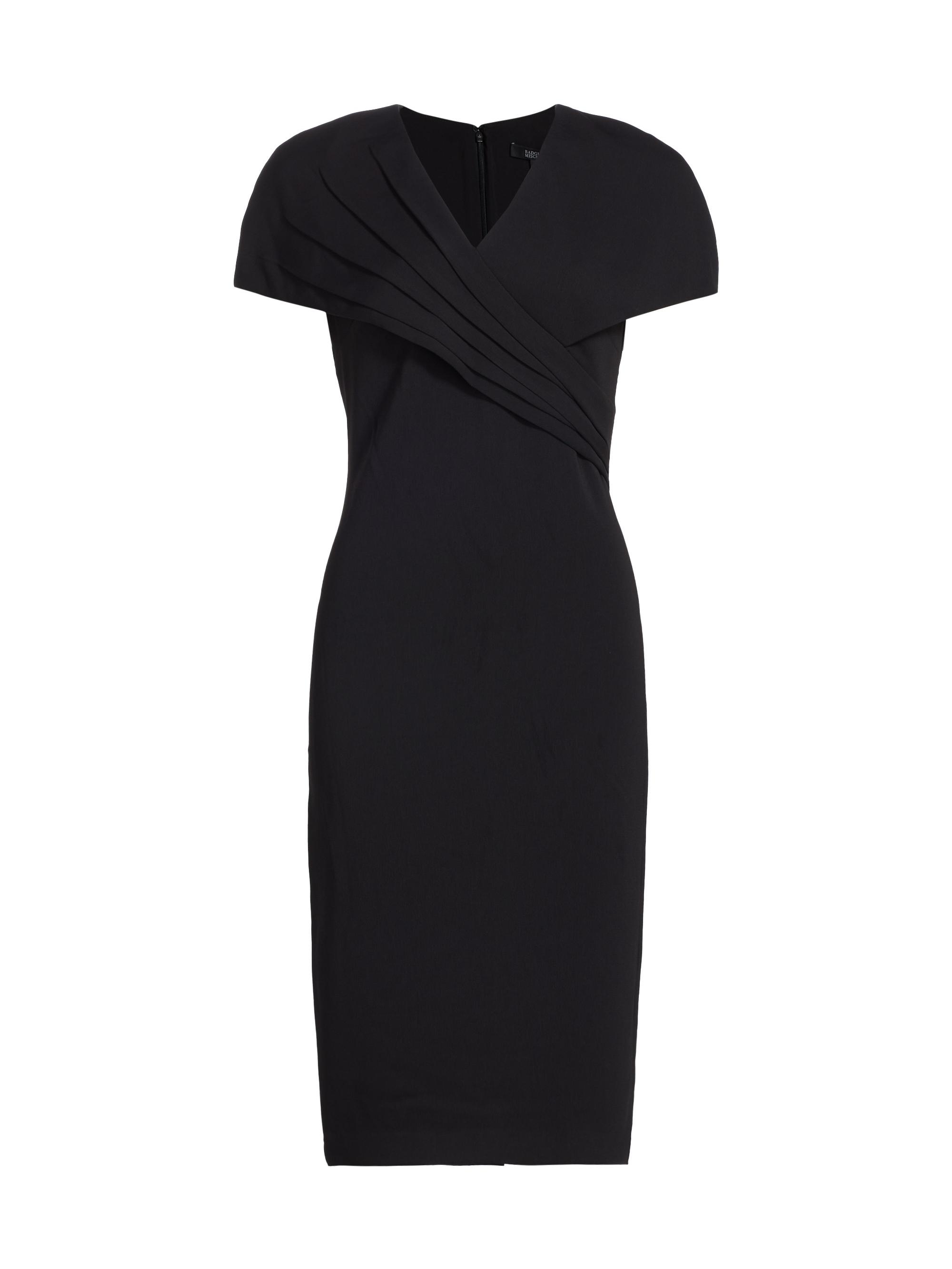 Badgley Mischka Pleated Stretch Crepe Wrap-Effect Dress BLACK