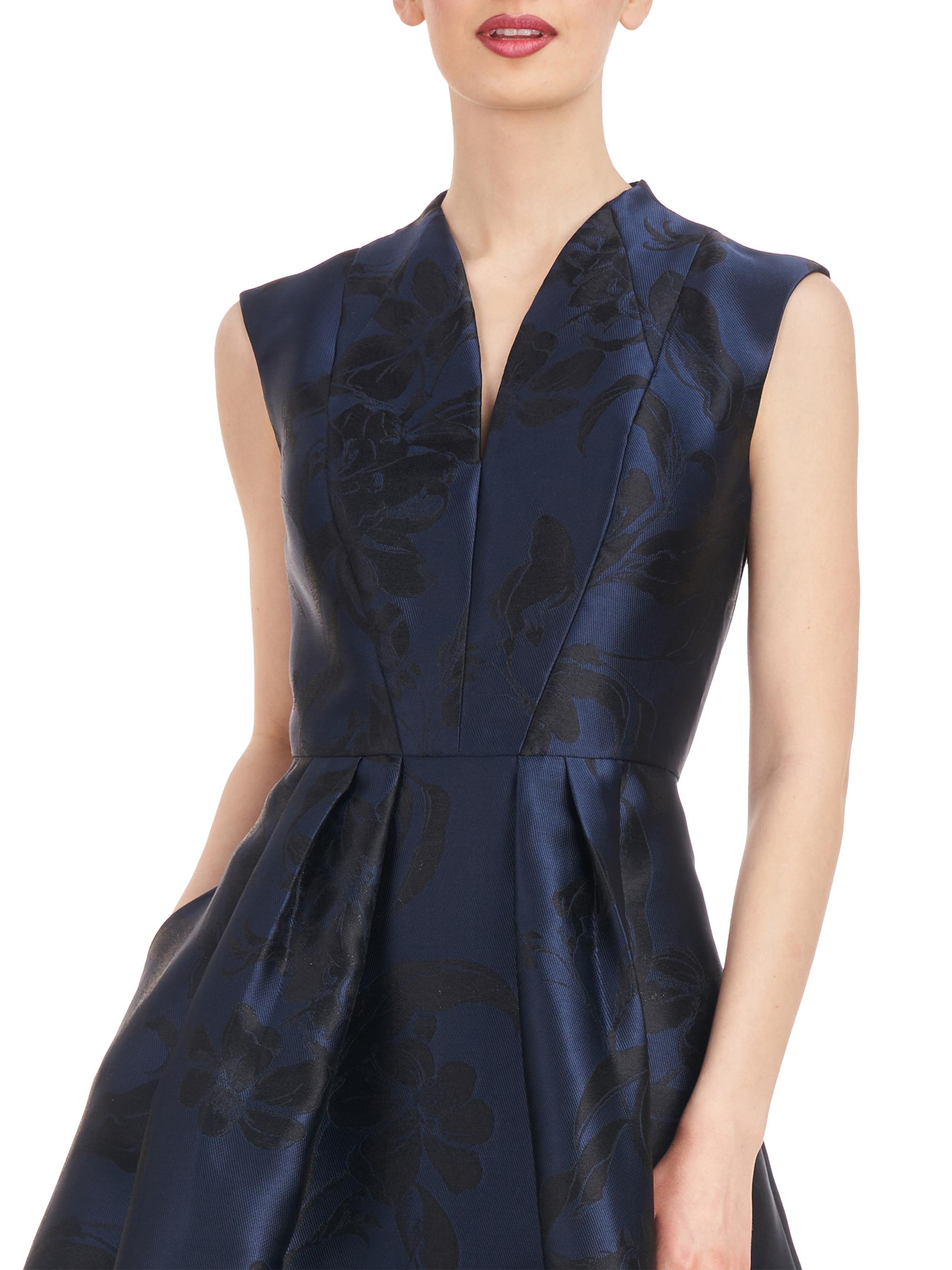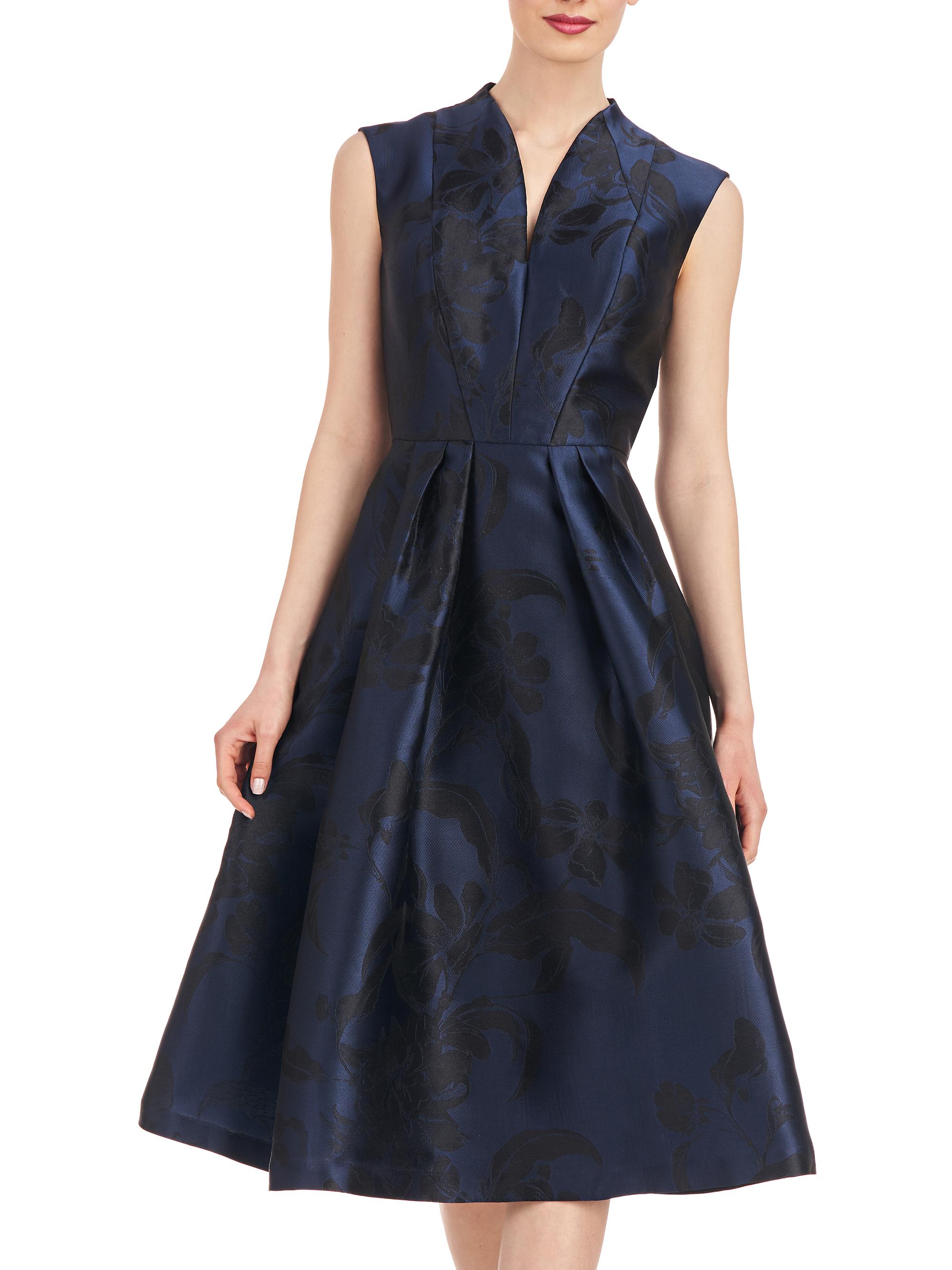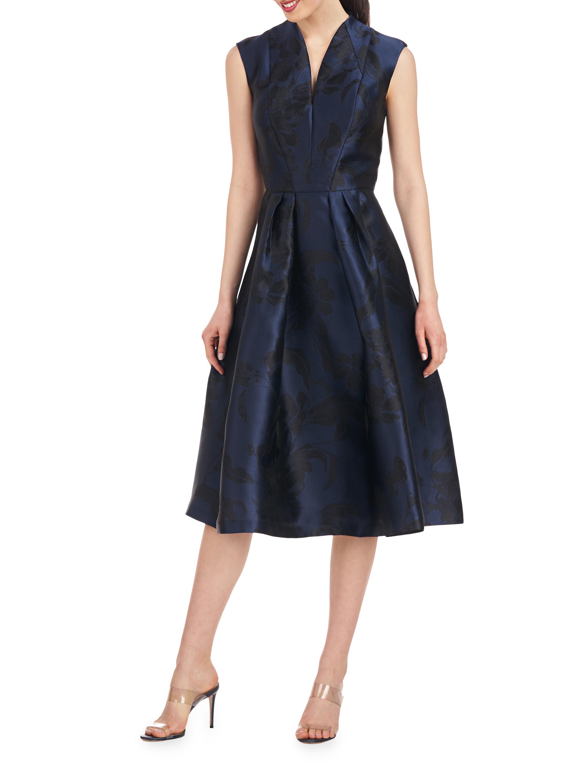 Kay Unger Hadley Metallic Floral Jacquard Midi-Dress