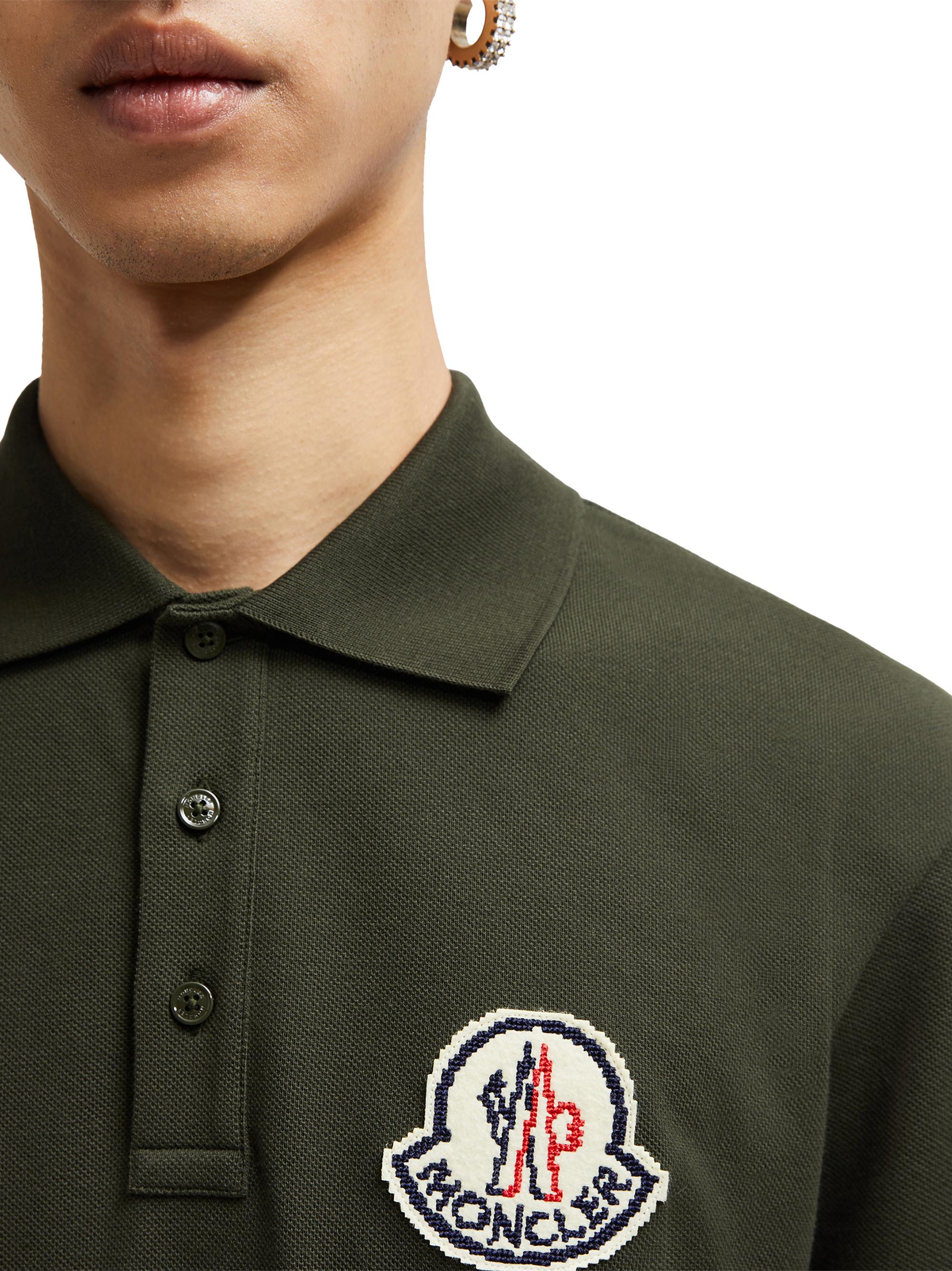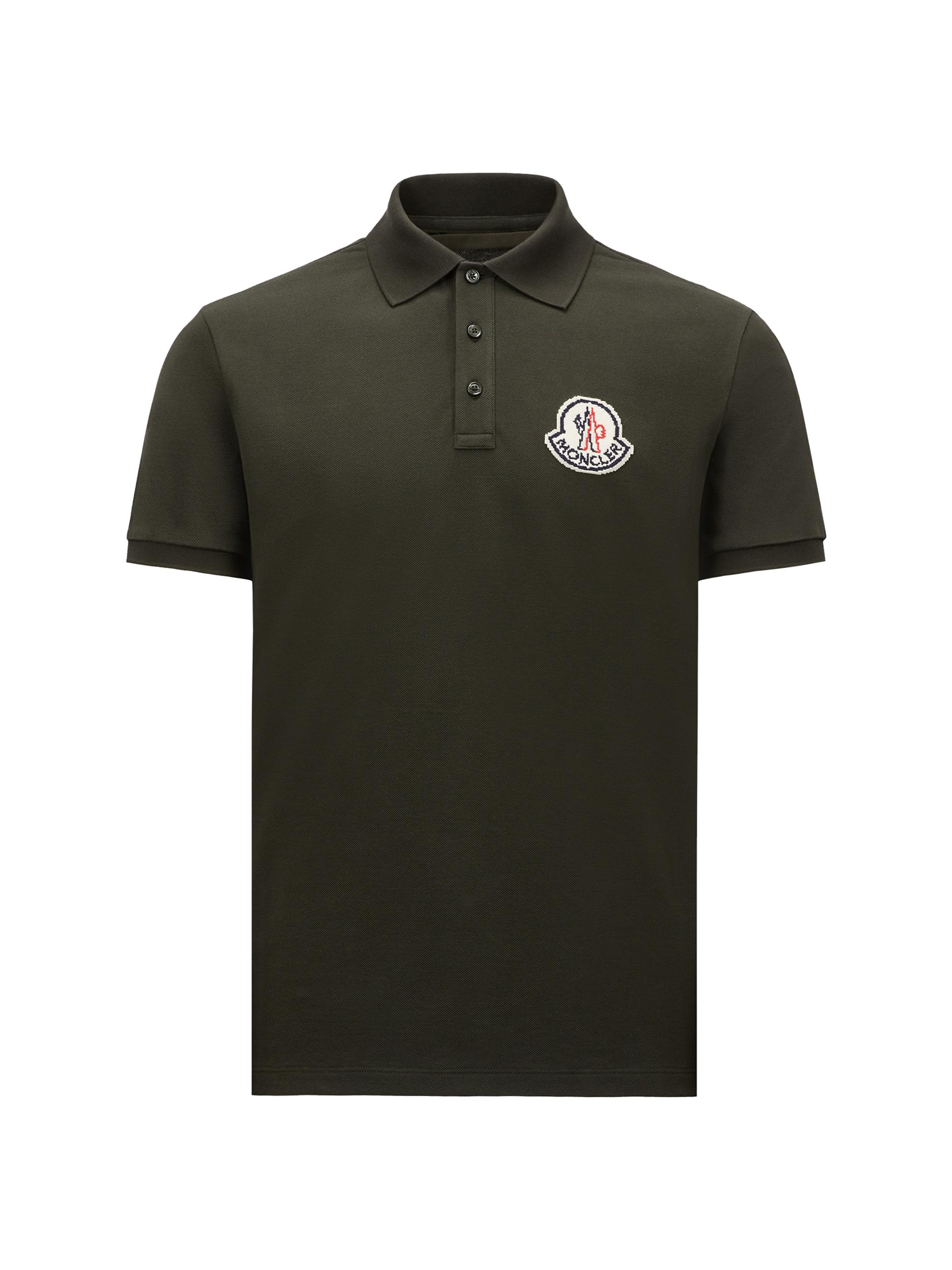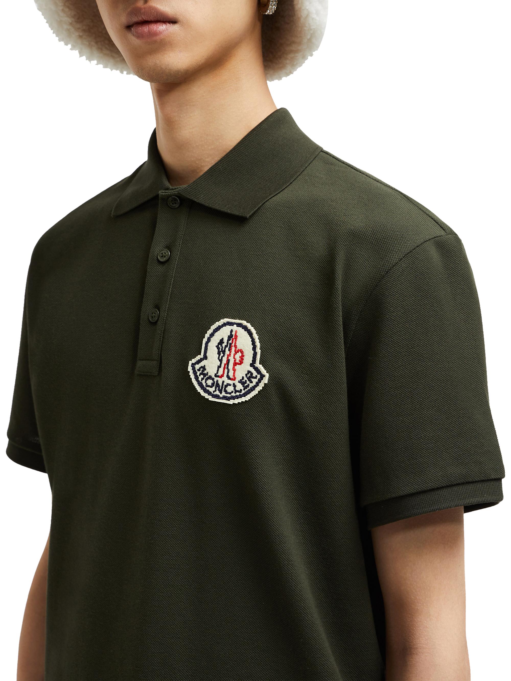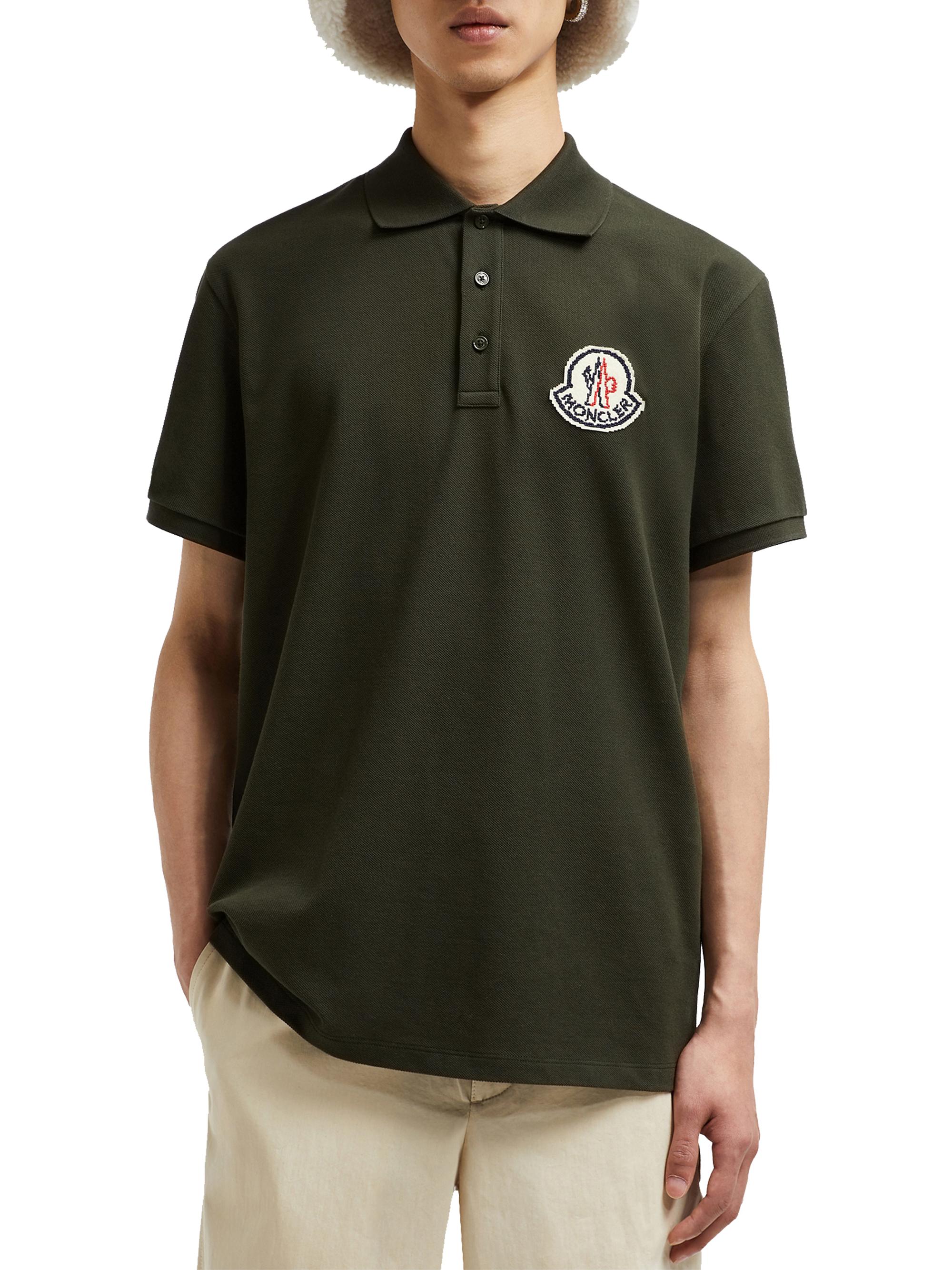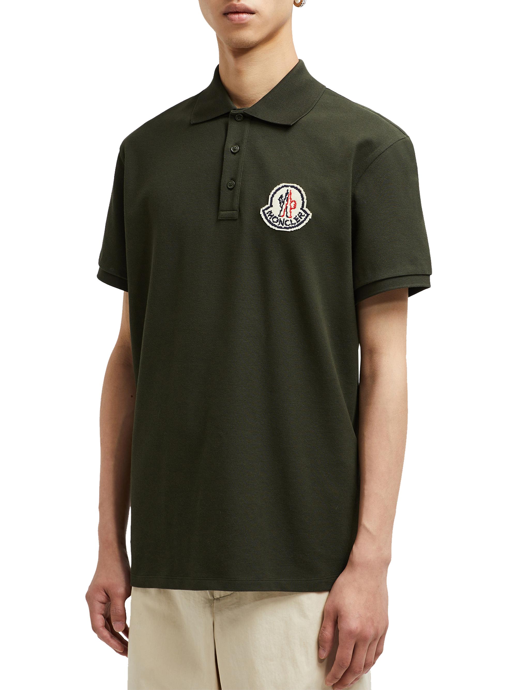 Moncler Short Sleeve Logo Patch Cotton Pique Polo Shirt DARK GREEN