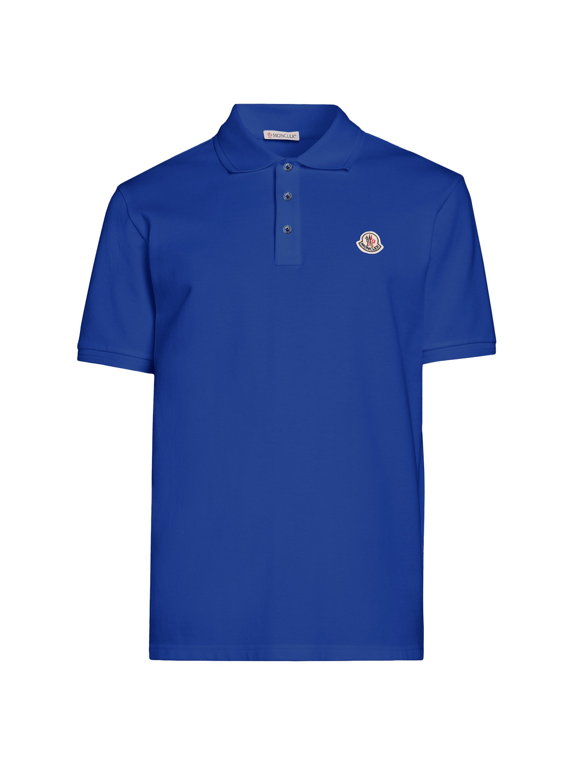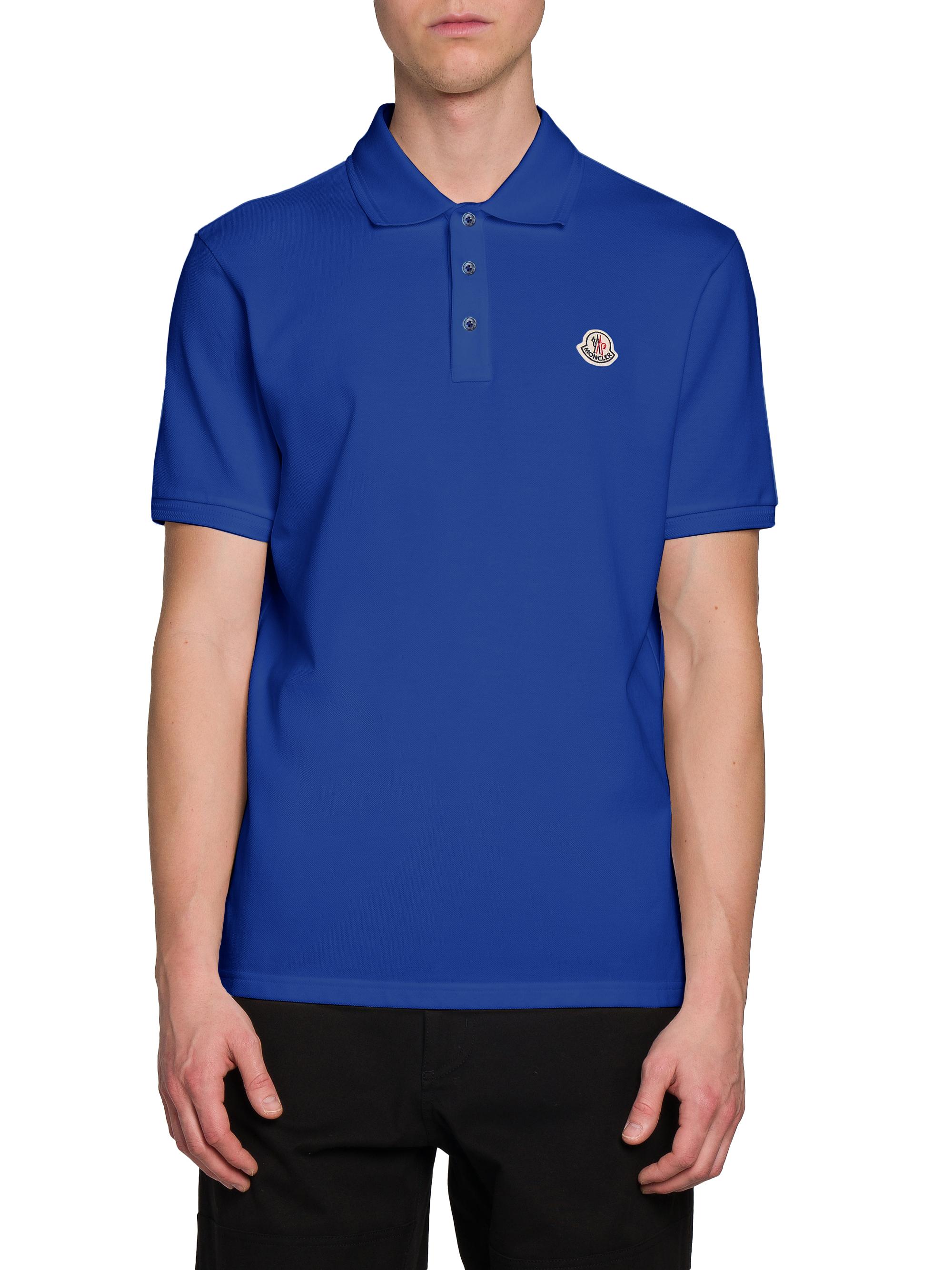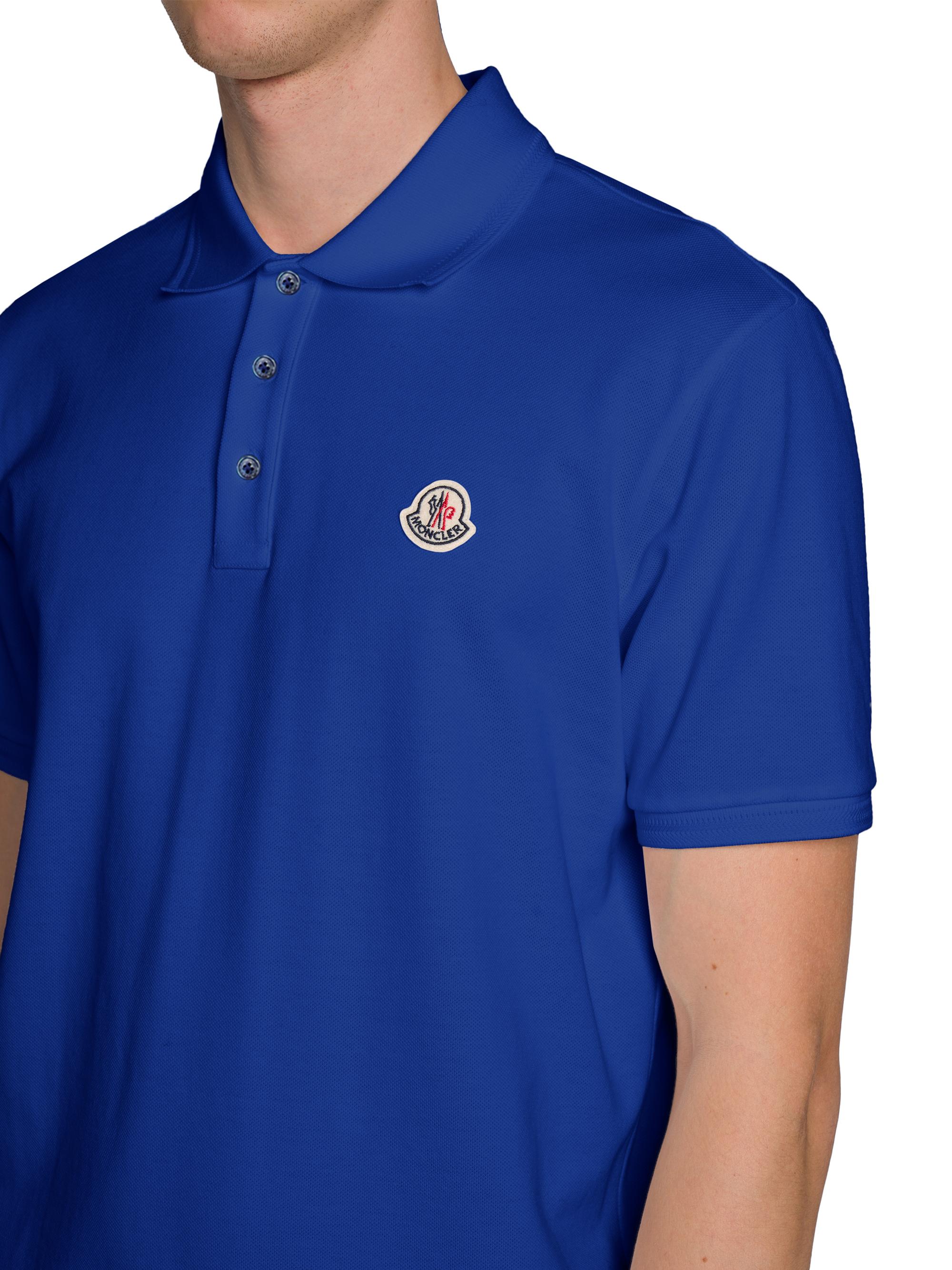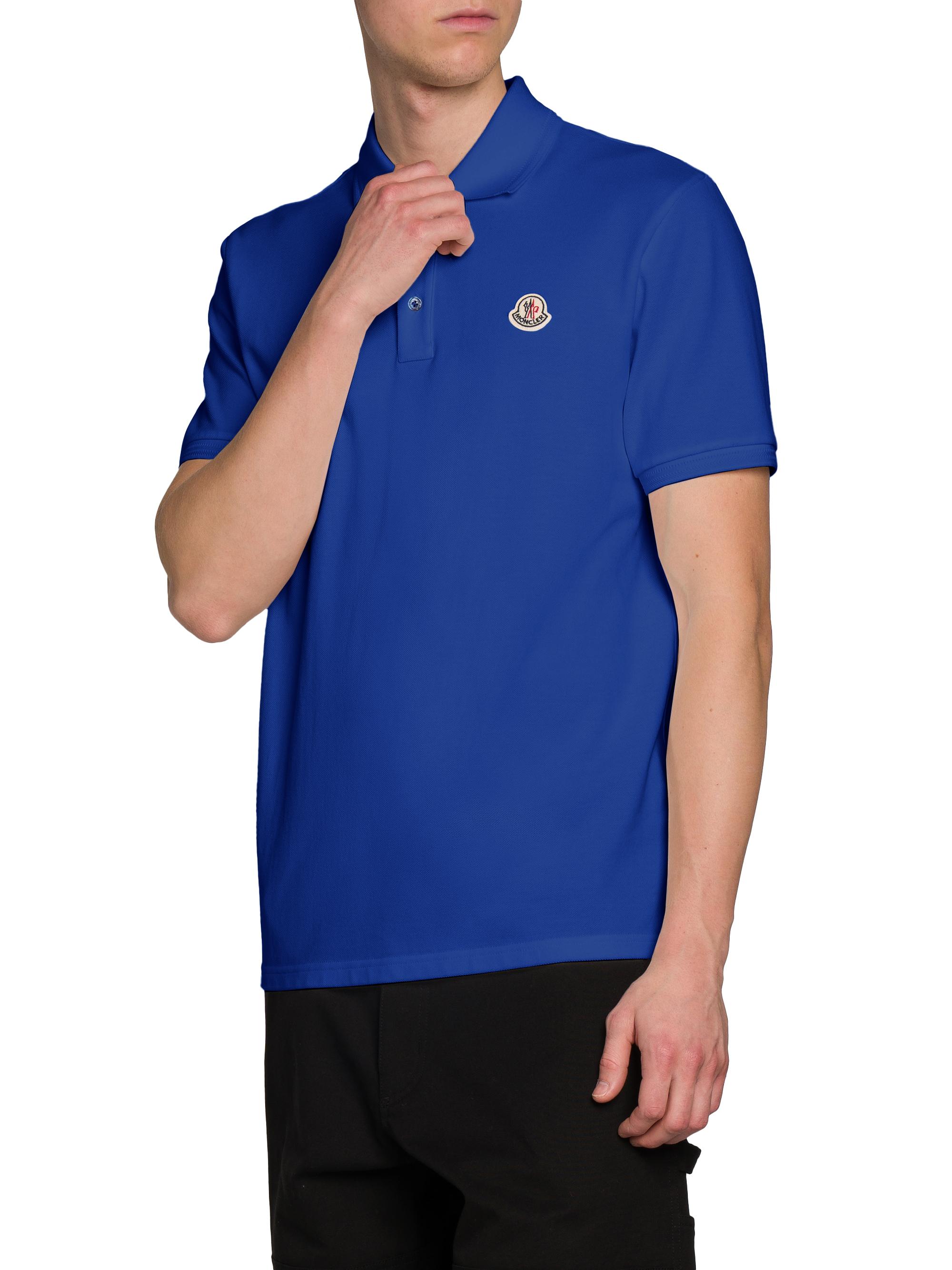 Moncler Short Sleeve Logo Patch Cotton Pique Polo Shirt BLUE