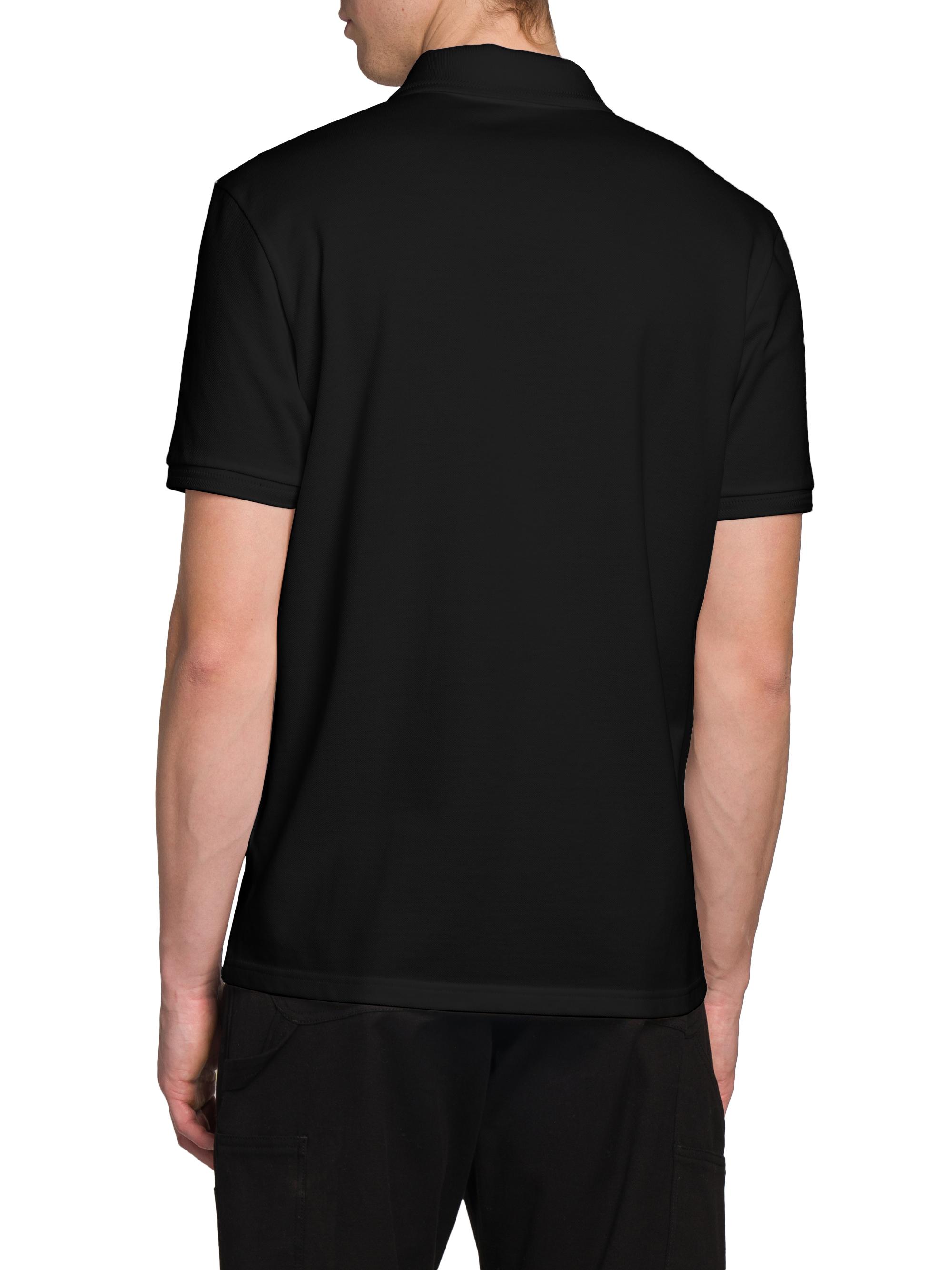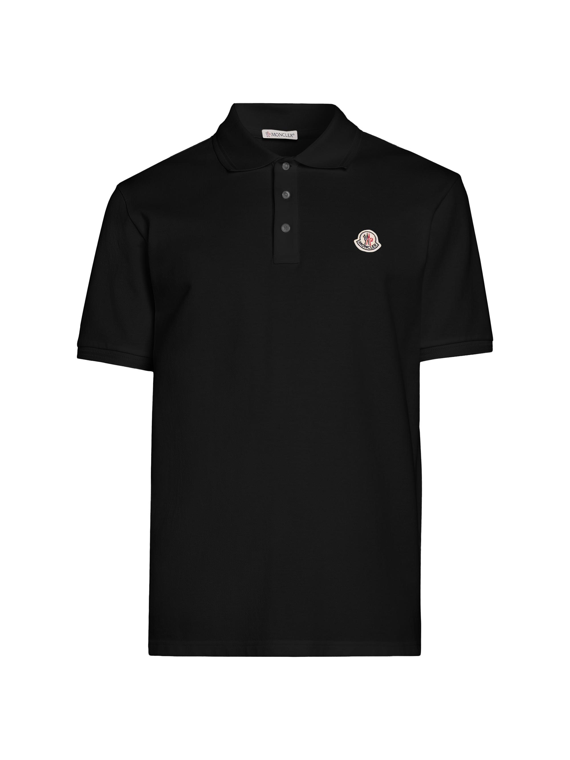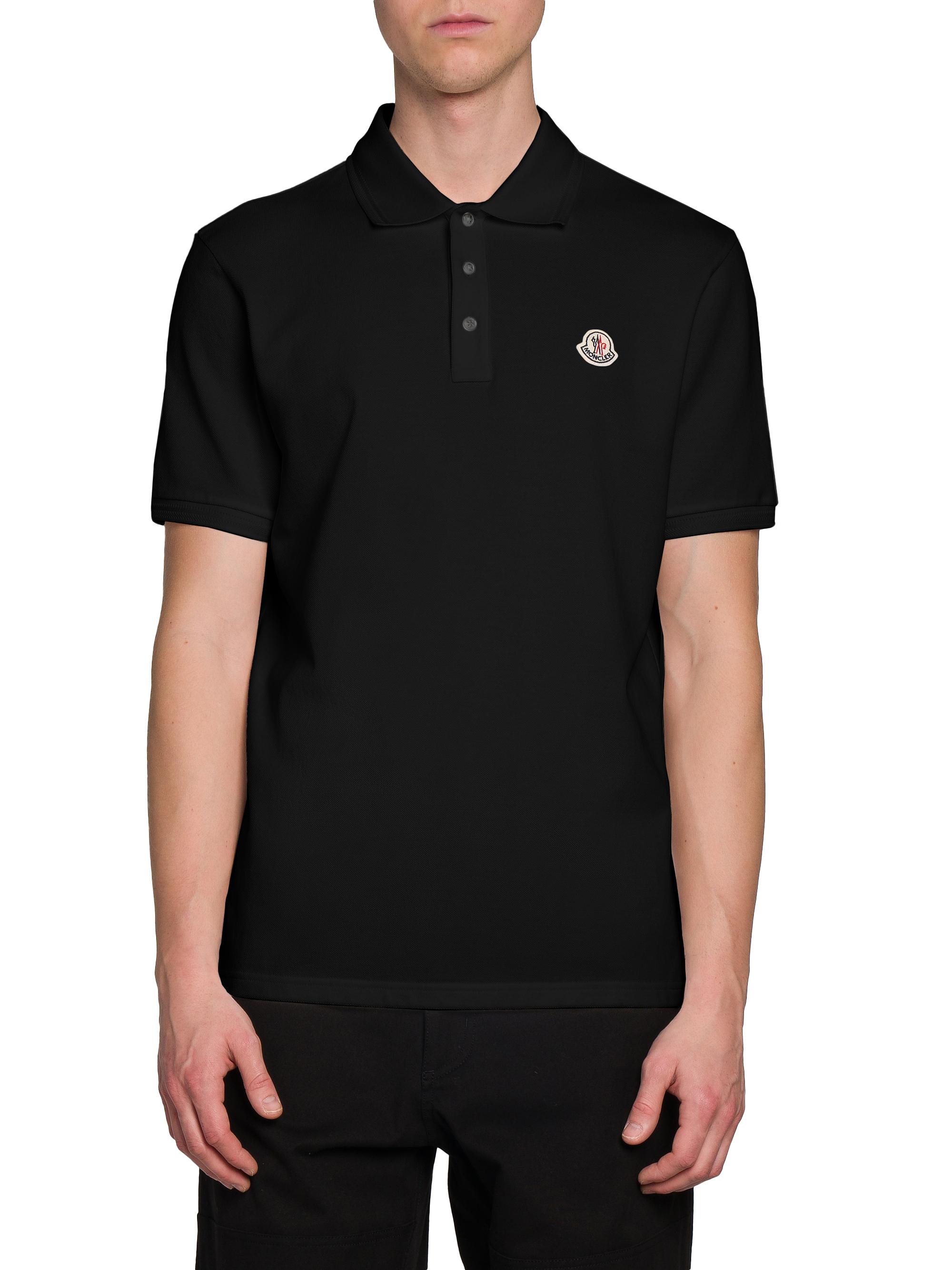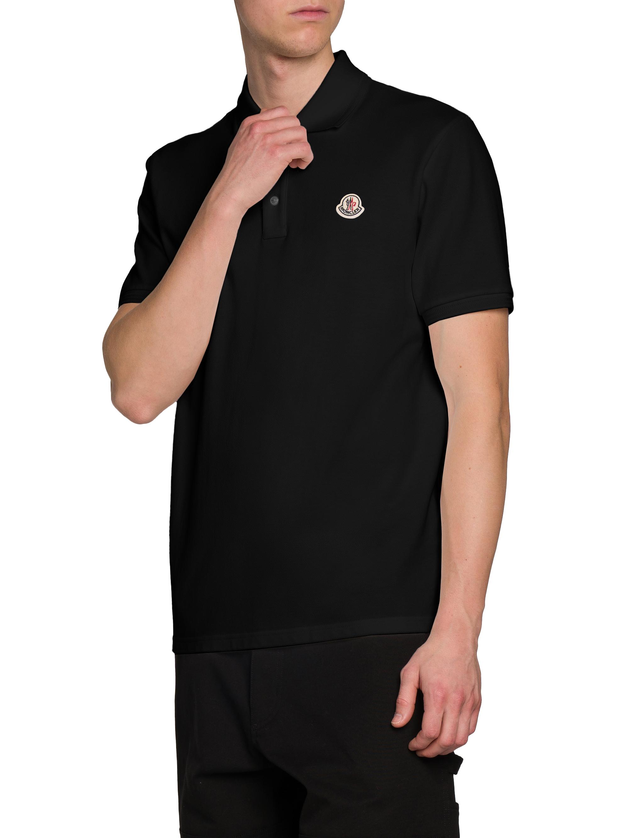 Moncler Short Sleeve Logo Patch Cotton Pique Polo Shirt BLACK