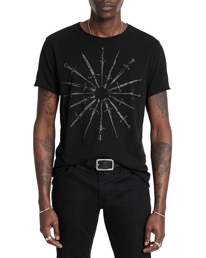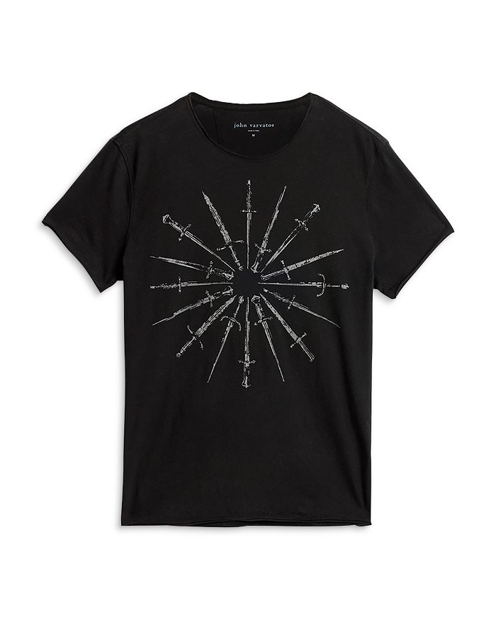 John Varvatos Cotton Raw Edge Daggers Circle Graphic Tee